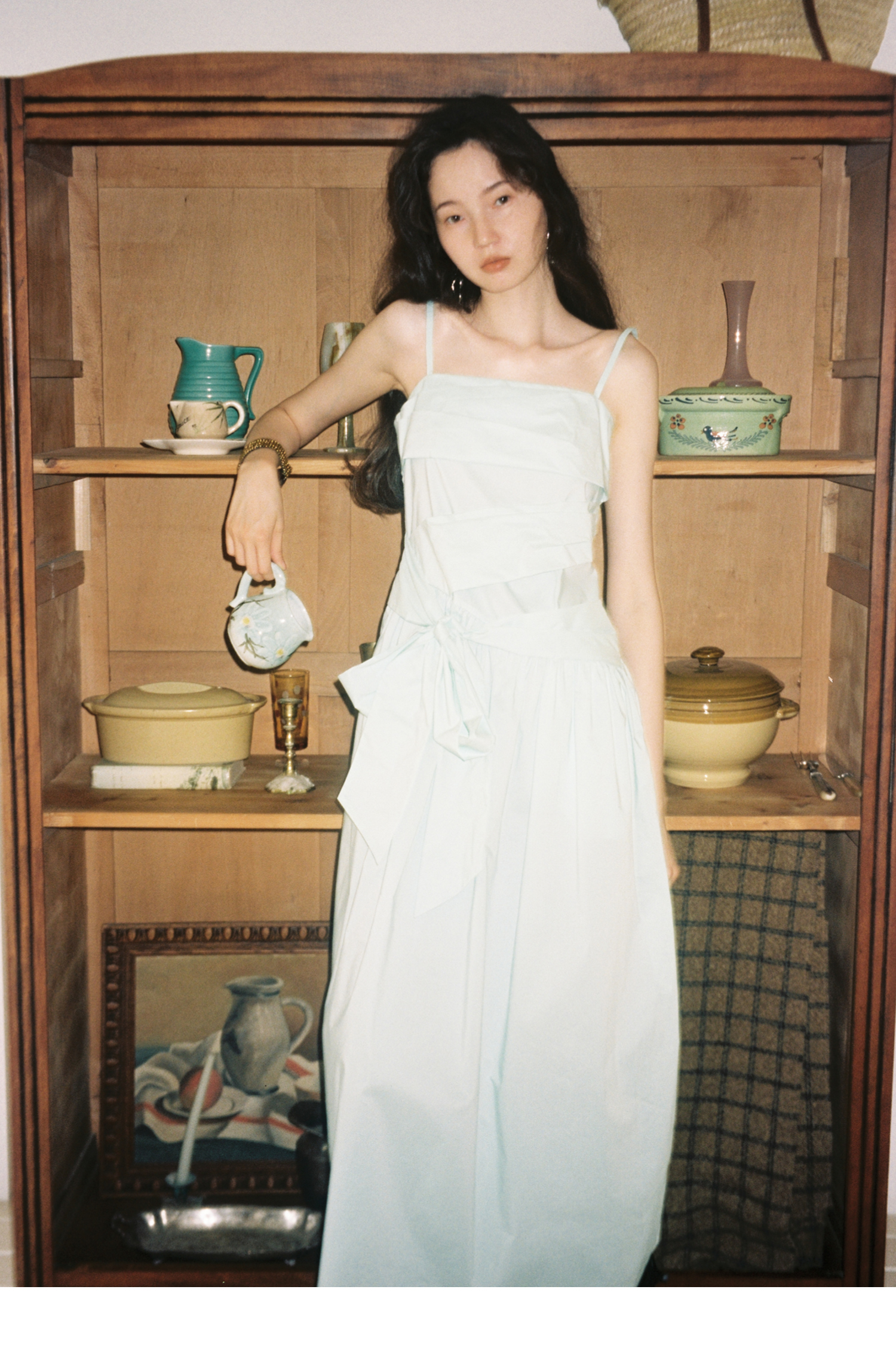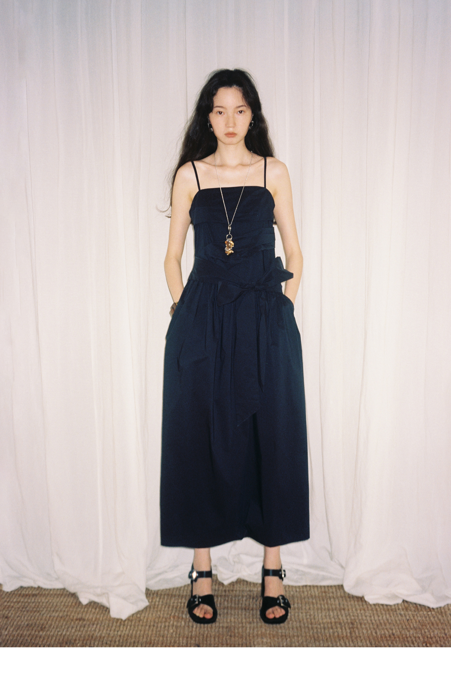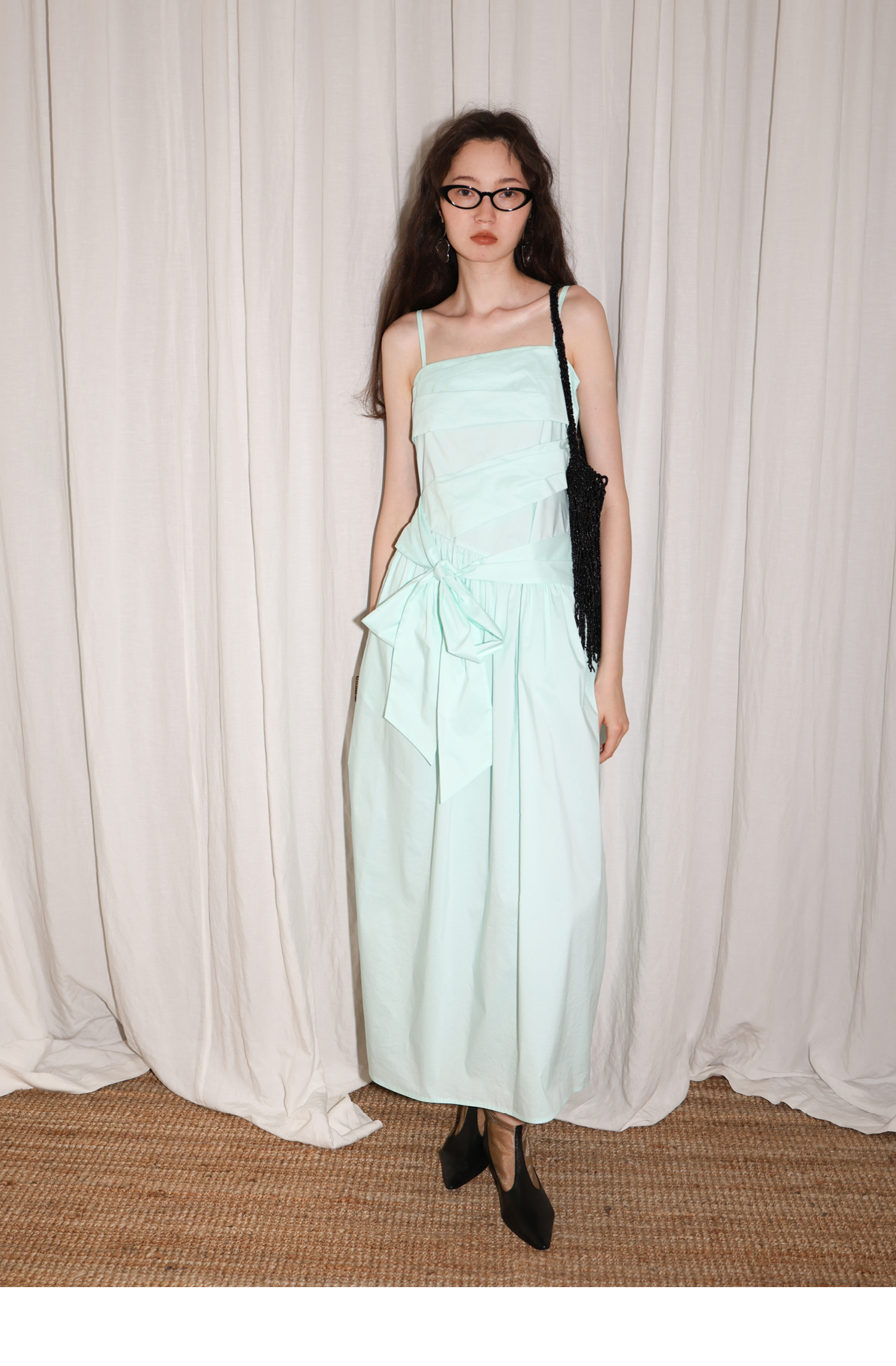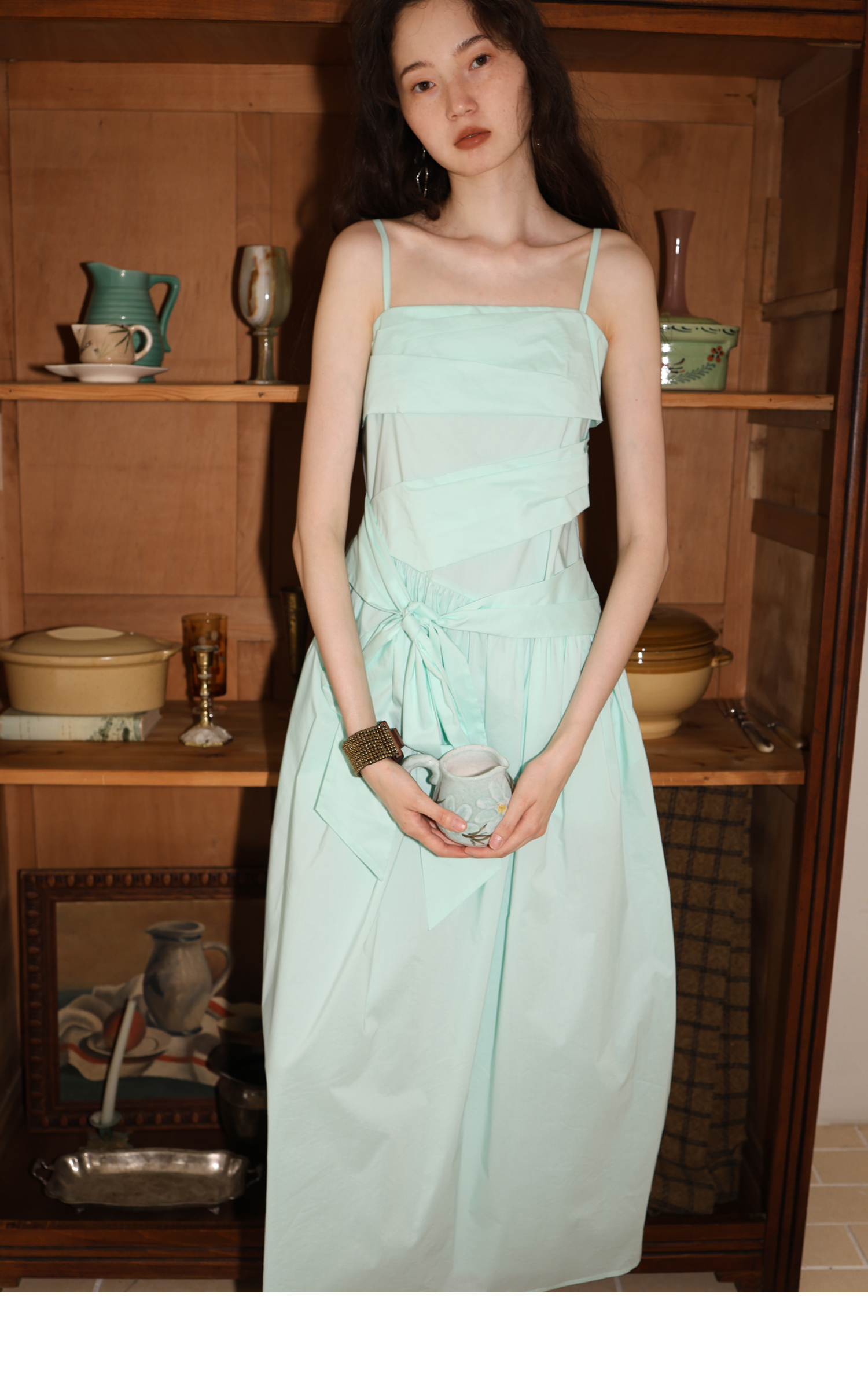 【6折不退换 买六免一】素舶 高支高密棉感不对称褶皱收腰花苞吊带连衣裙