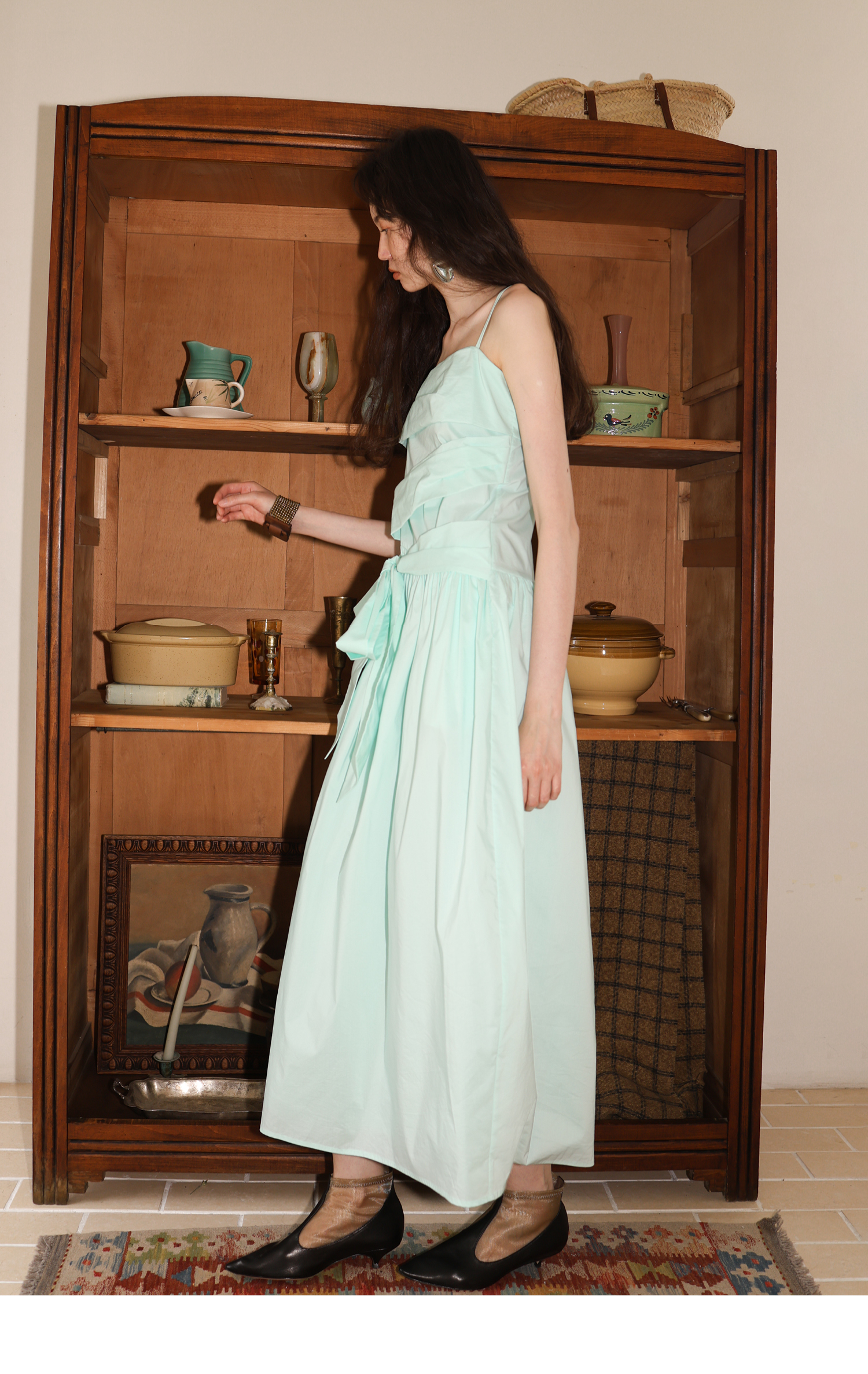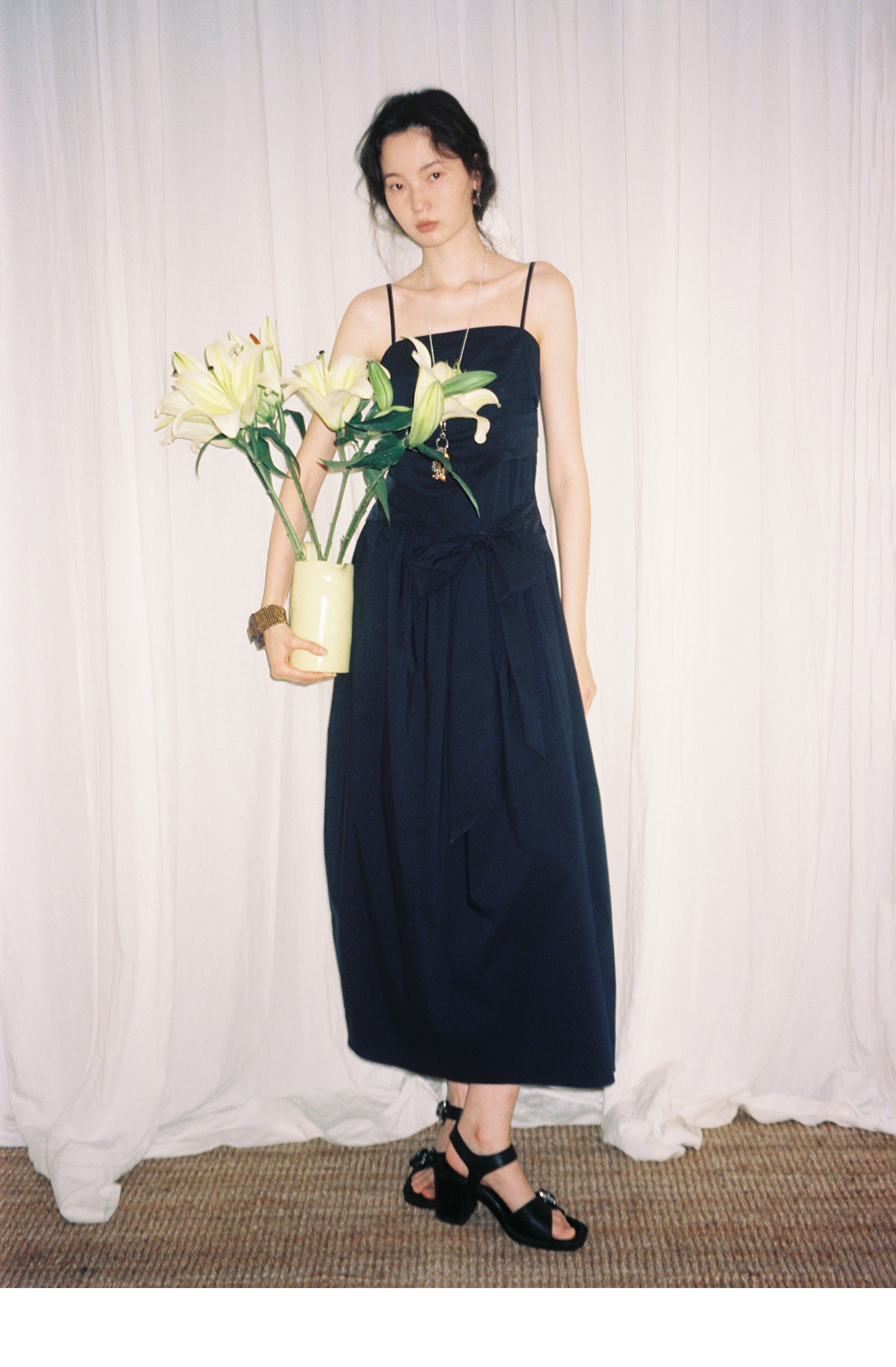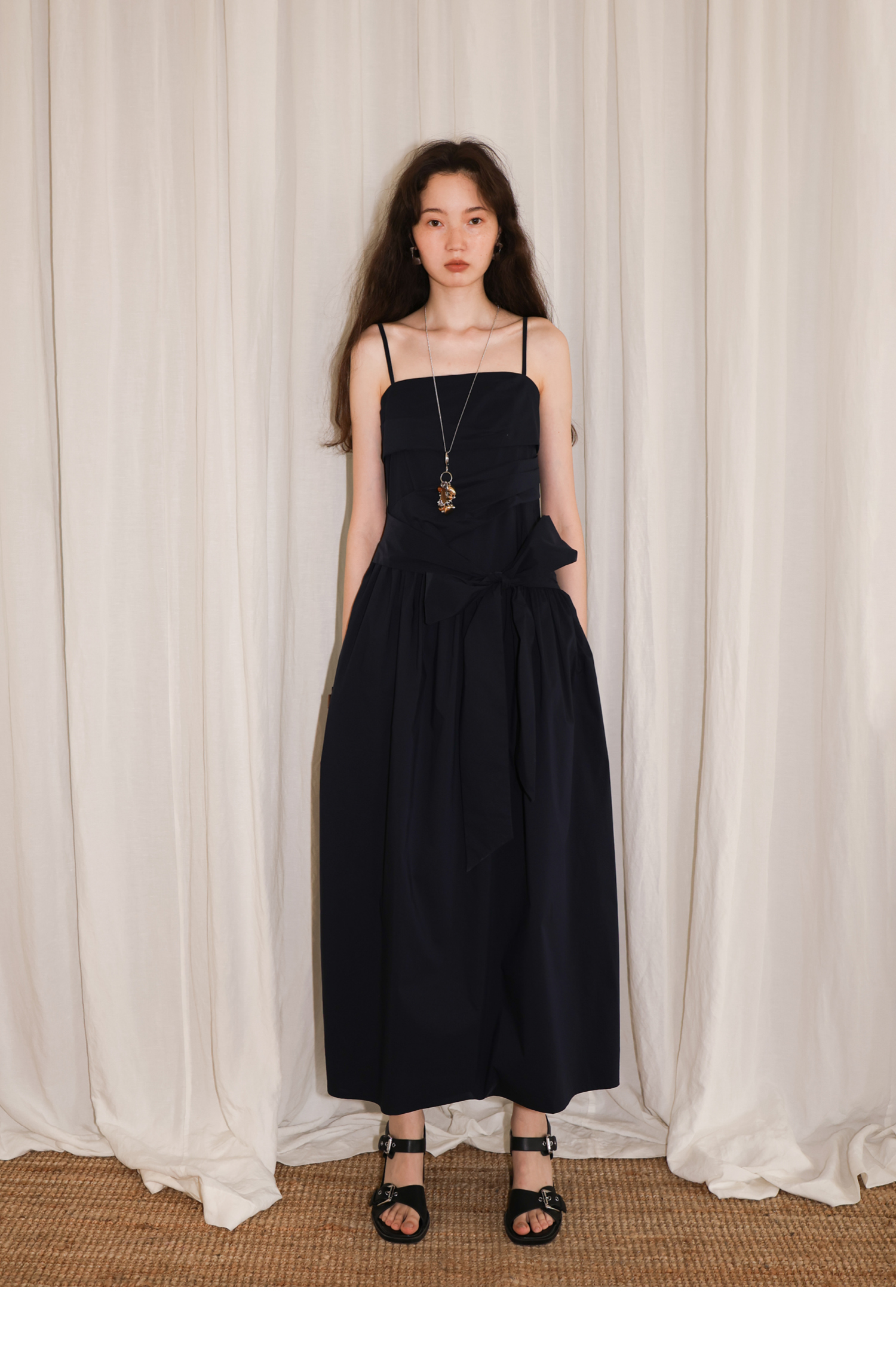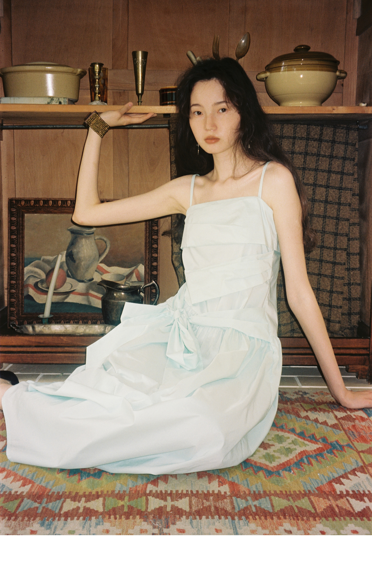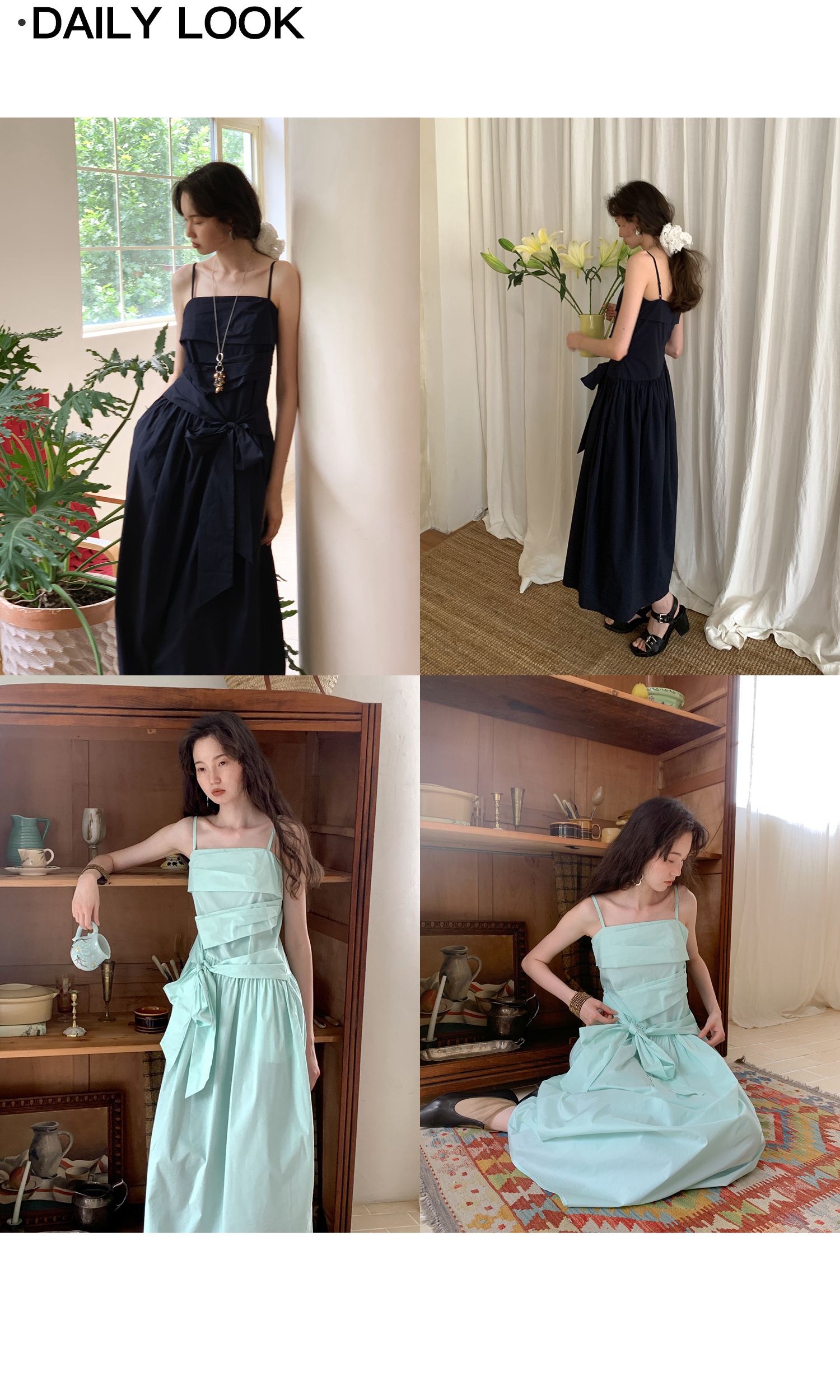 【6折不退换 买六免一】素舶 高支高密棉感不对称褶皱收腰花苞吊带连衣裙