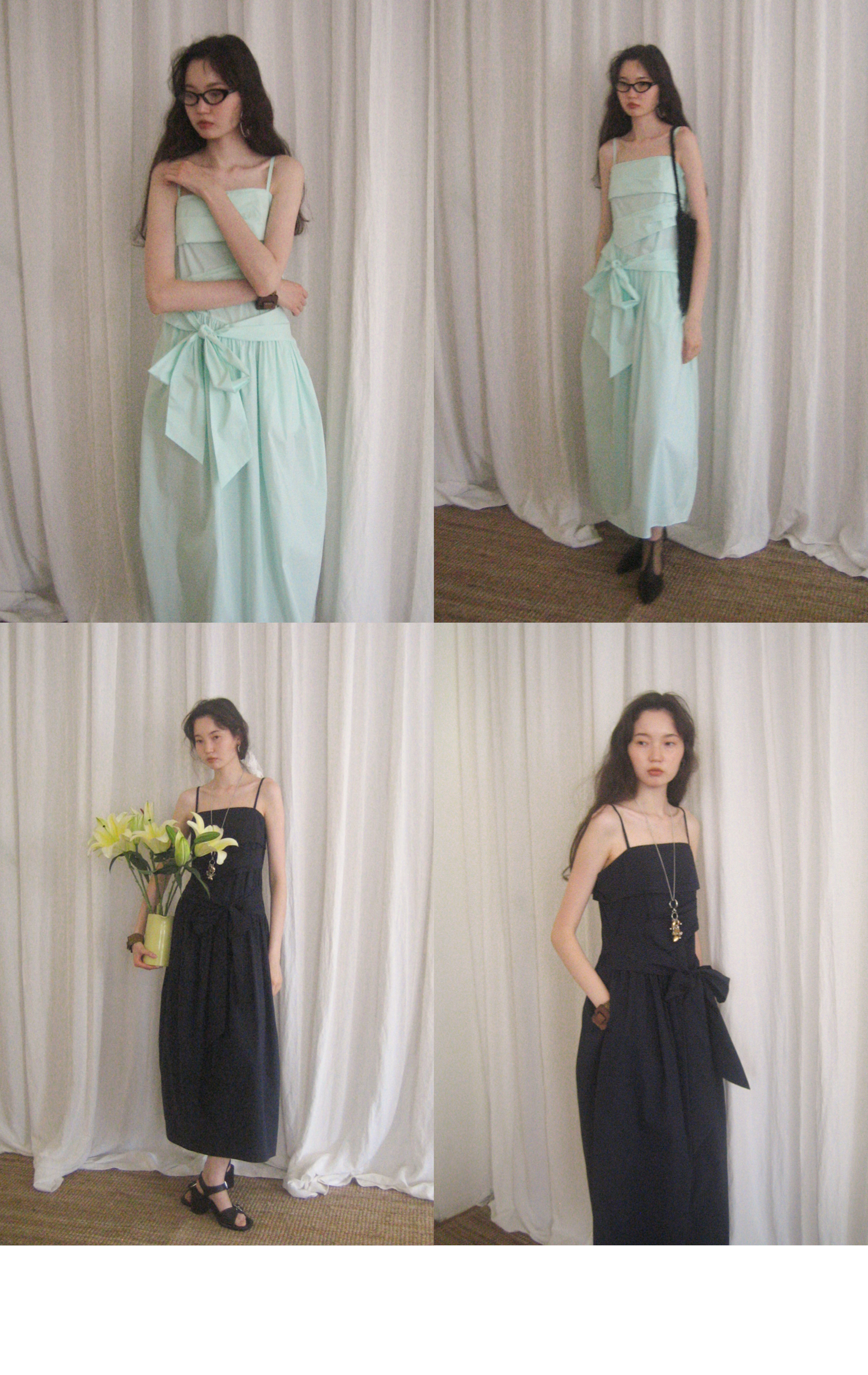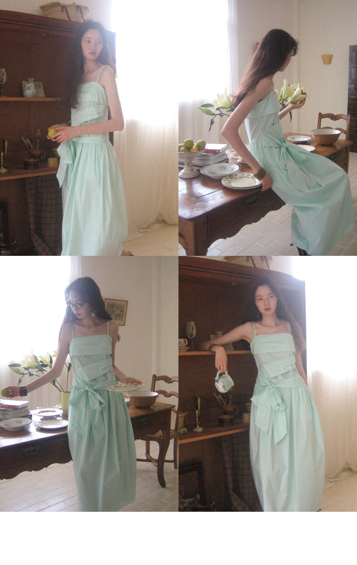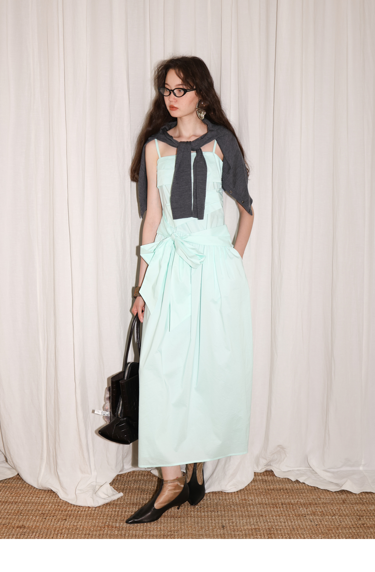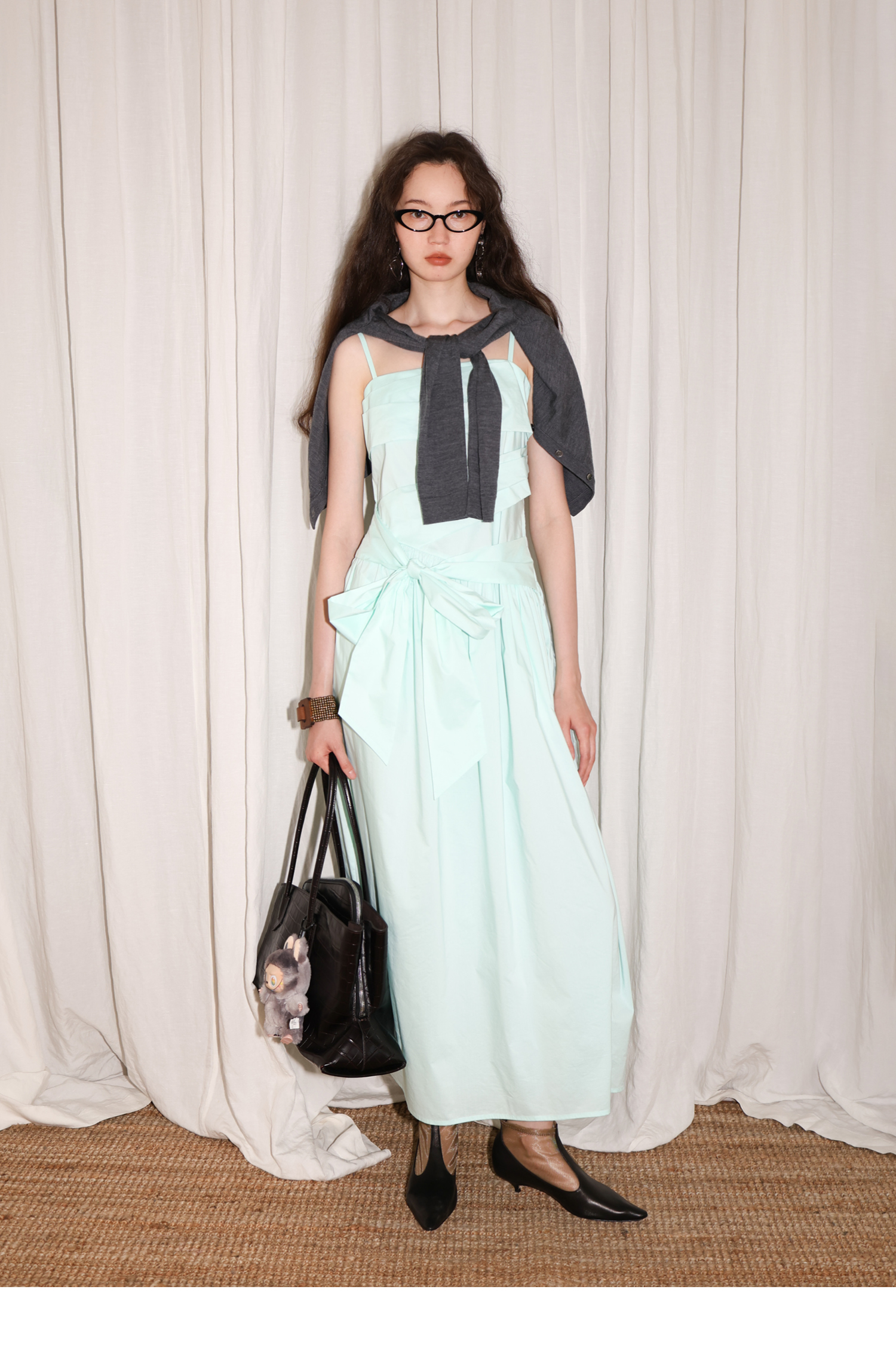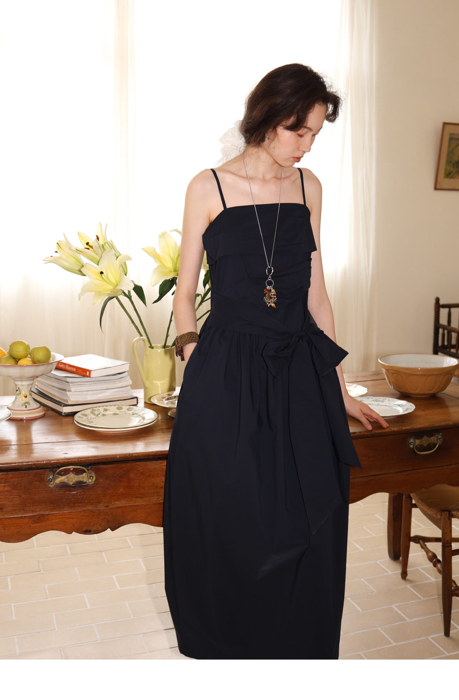 【6折不退换 买六免一】素舶 高支高密棉感不对称褶皱收腰花苞吊带连衣裙