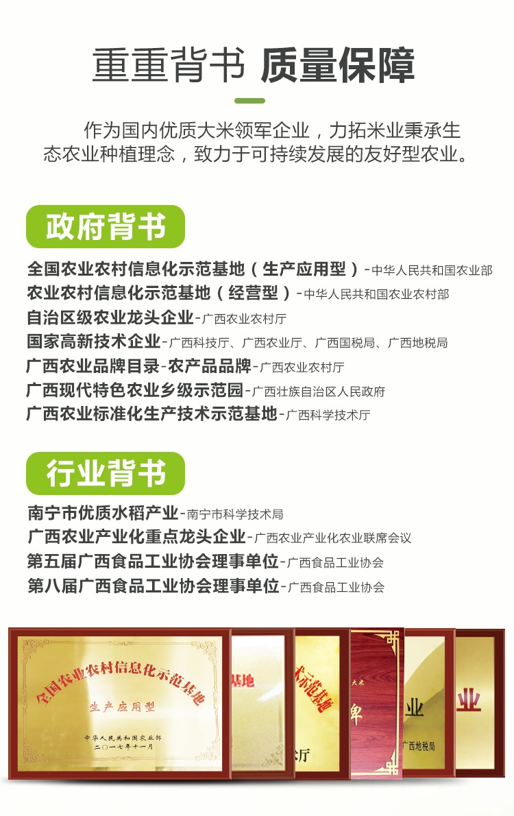 广西力拓米业集团有限公司是专注于安全优质稻米的全产业链新型农业企业。是国家高新技术企业、全国农村信息化建设示范基地、南宁市农业产业化重点龙头企业,广西有机水稻标准化生产示范基地。