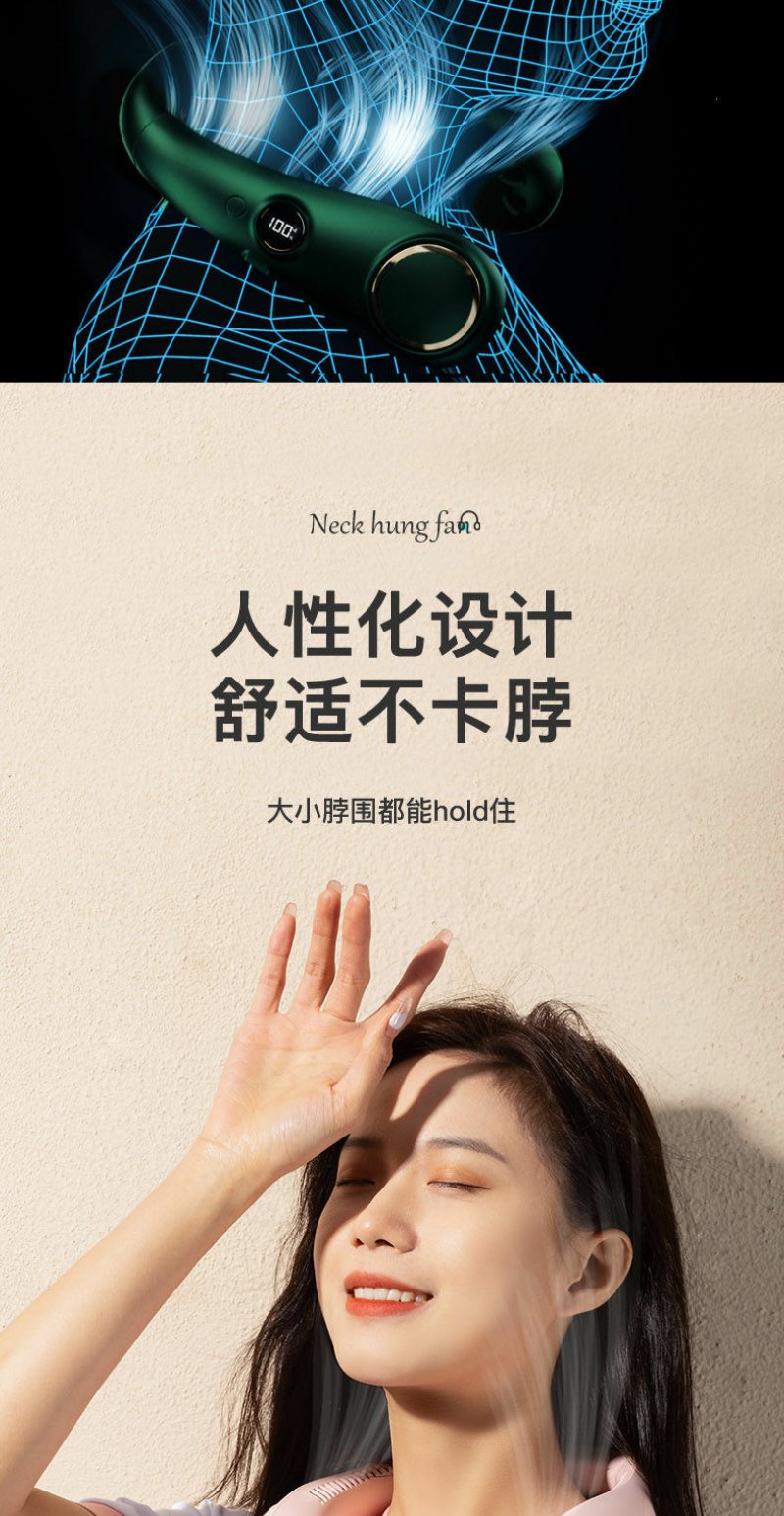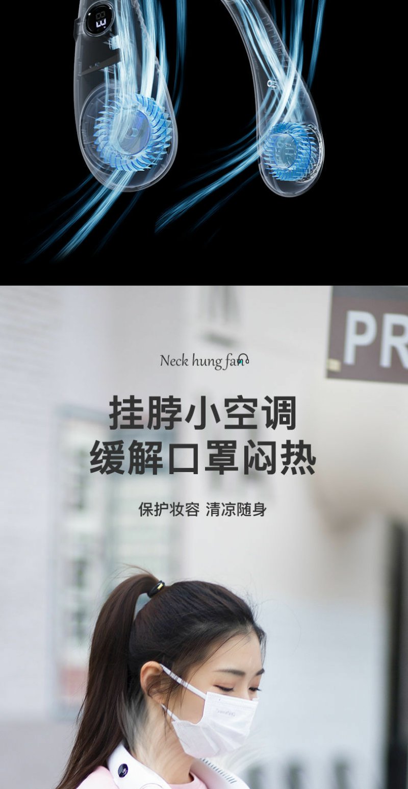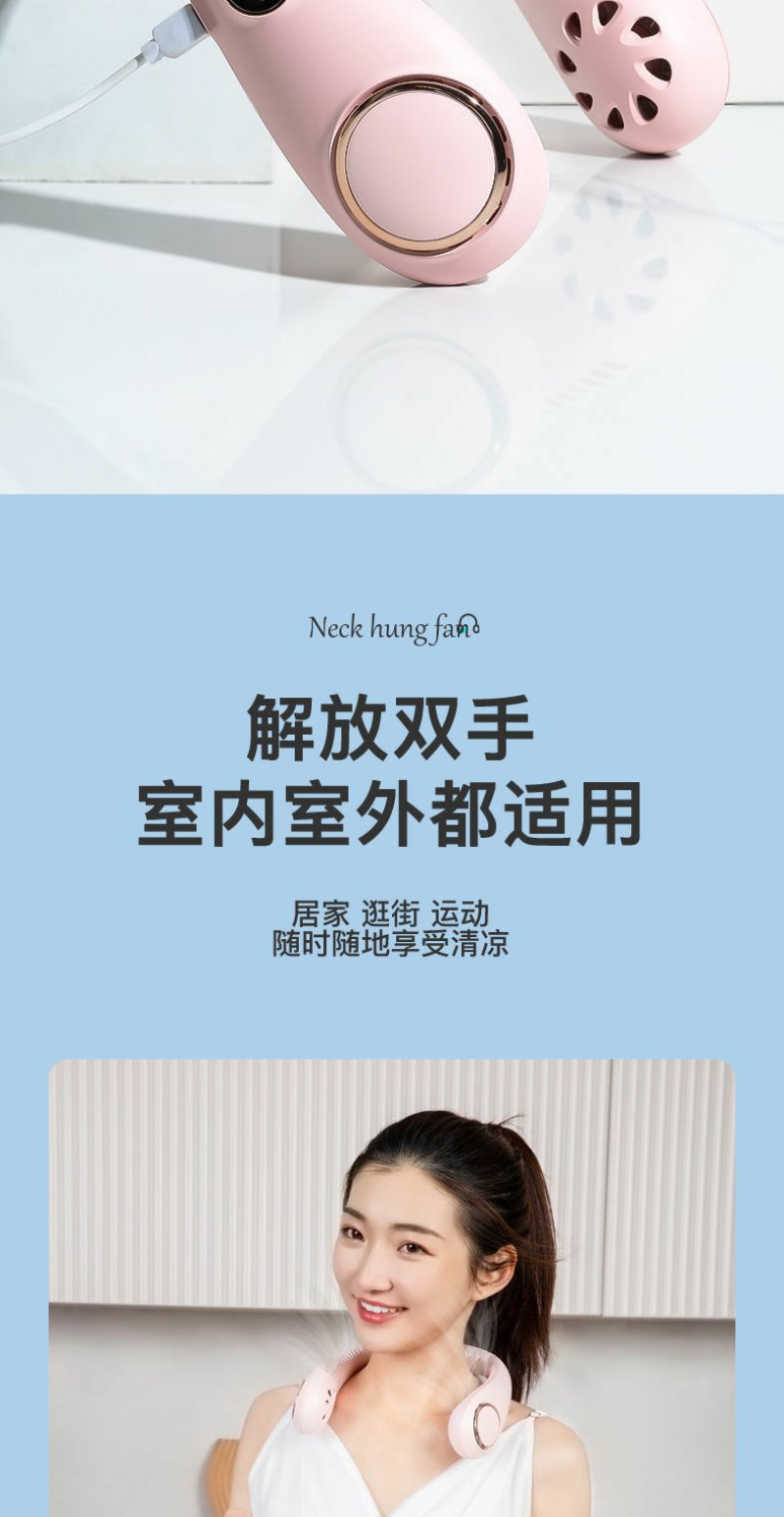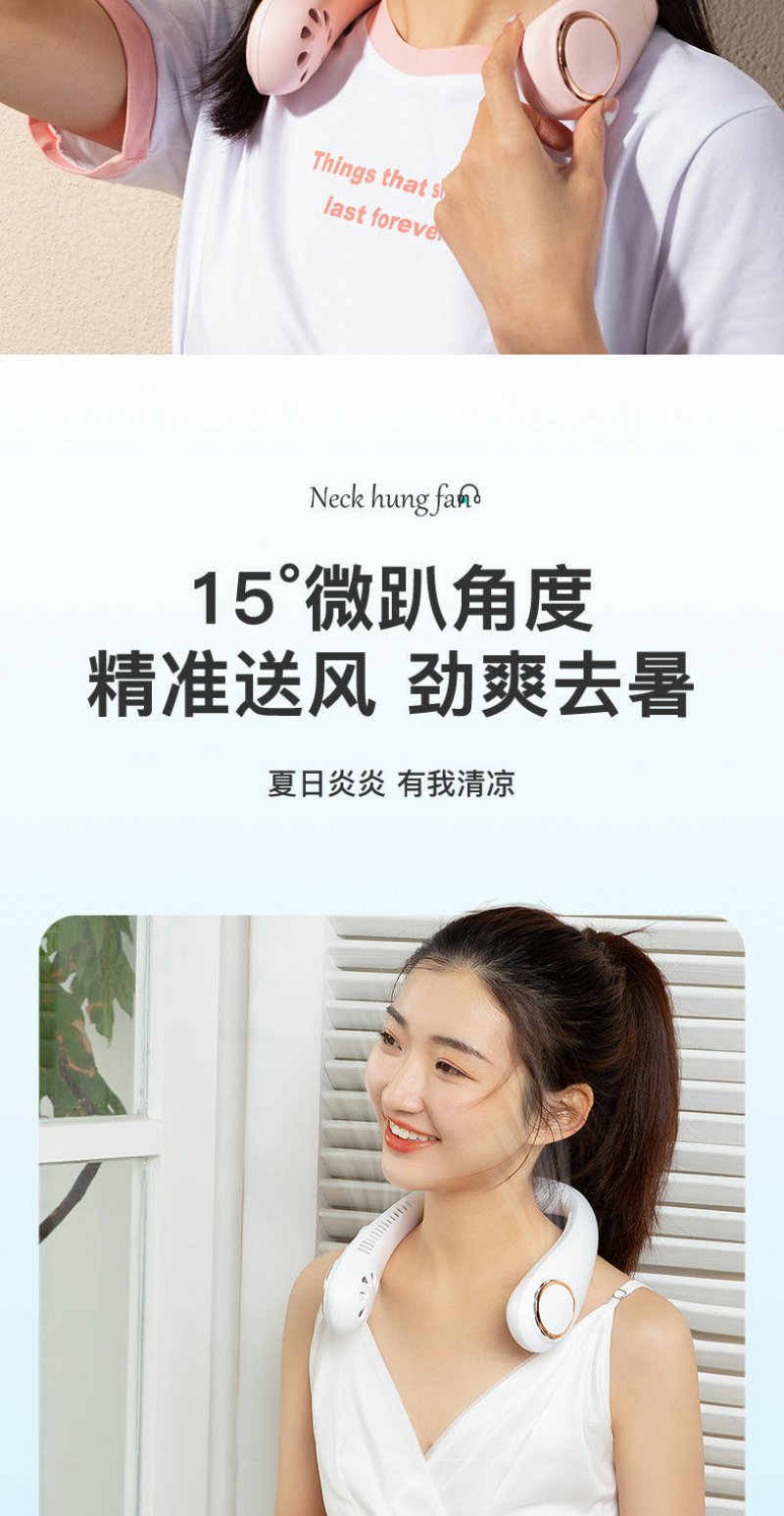 雅兰仕挂脖风扇便携式usb可充电迷你小风扇制冷大风力懒人随身挂