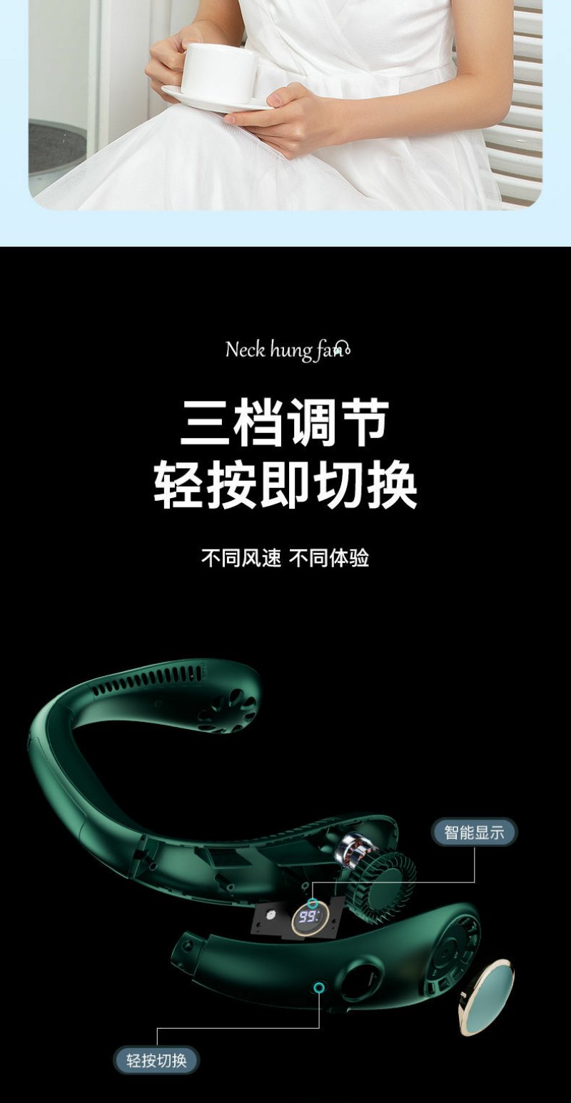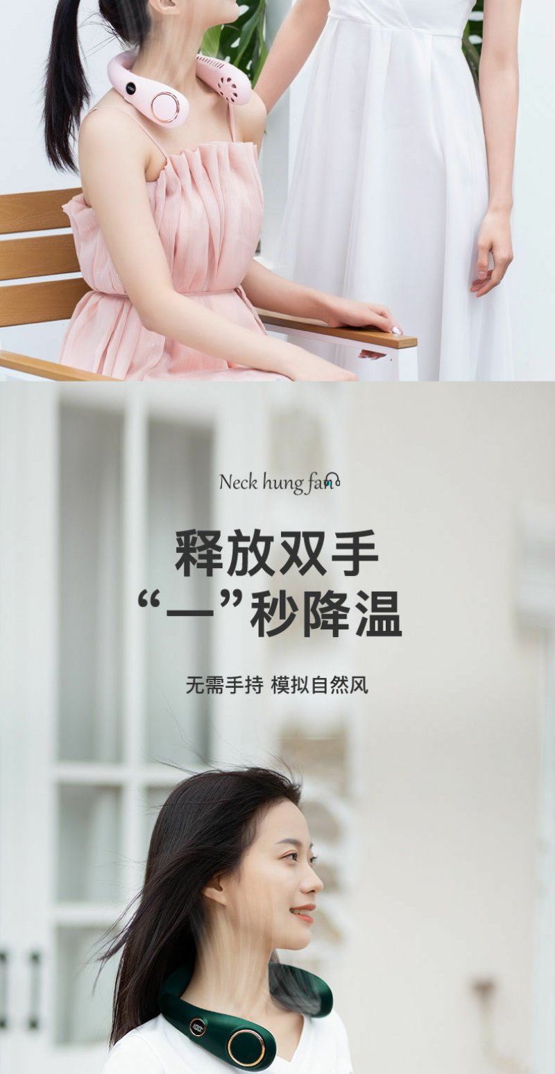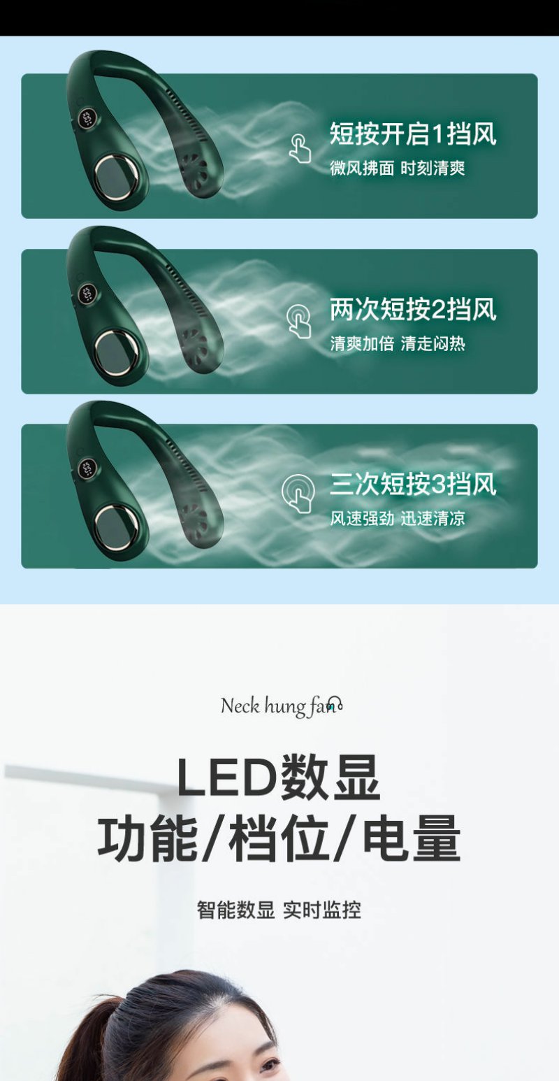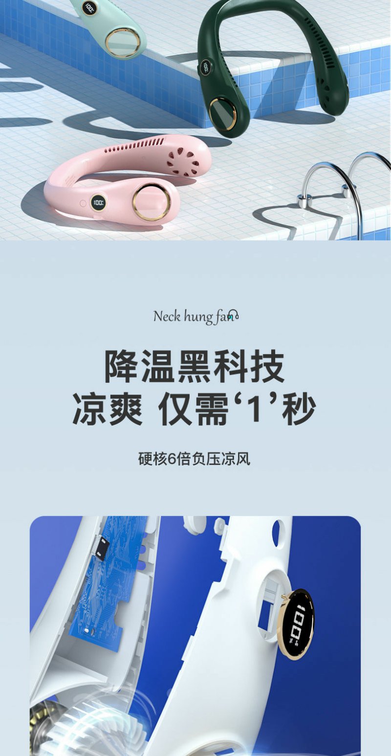 雅兰仕挂脖风扇便携式usb可充电迷你小风扇制冷大风力懒人随身挂