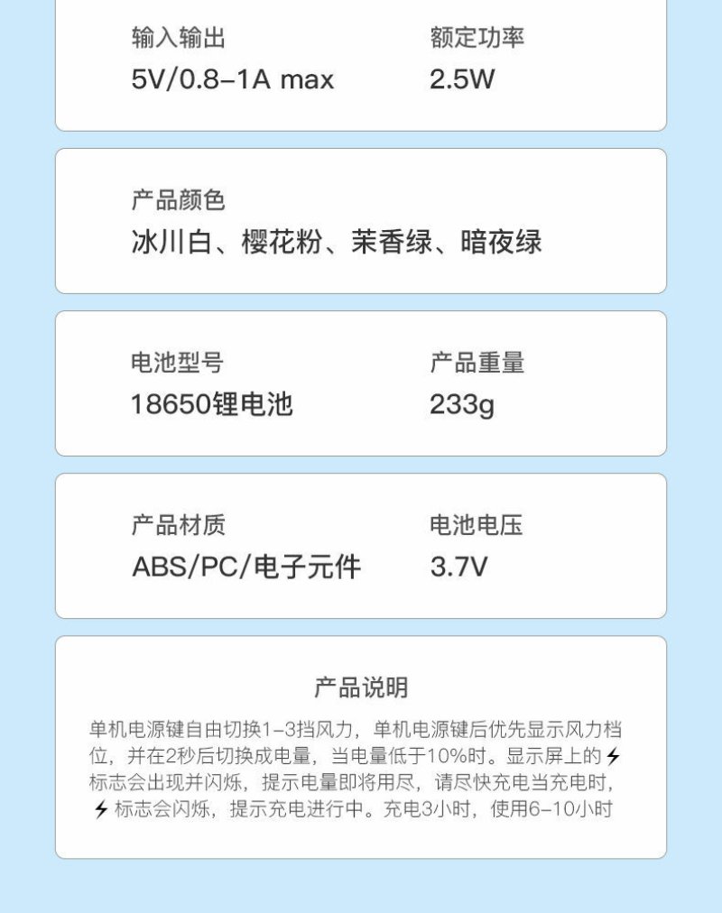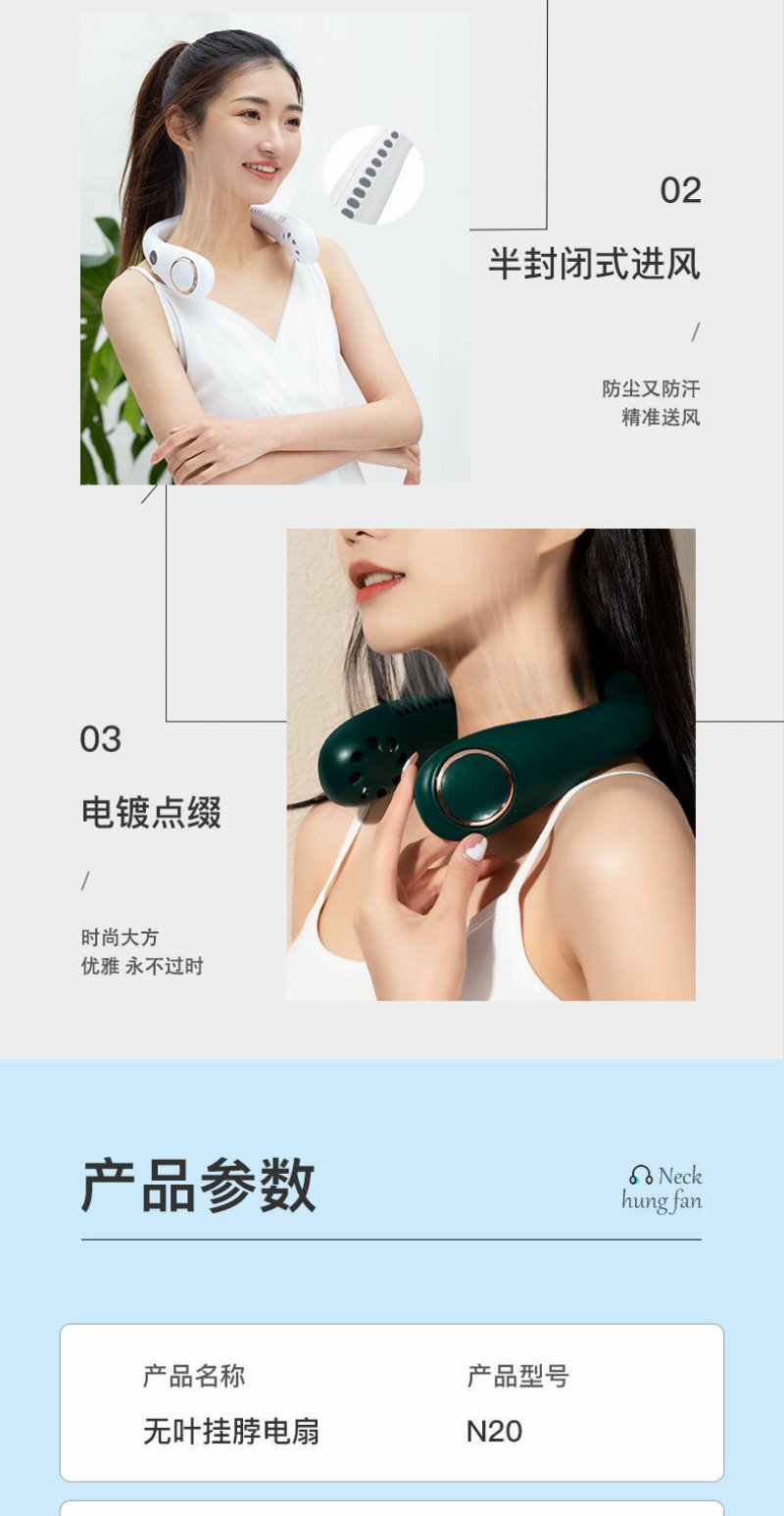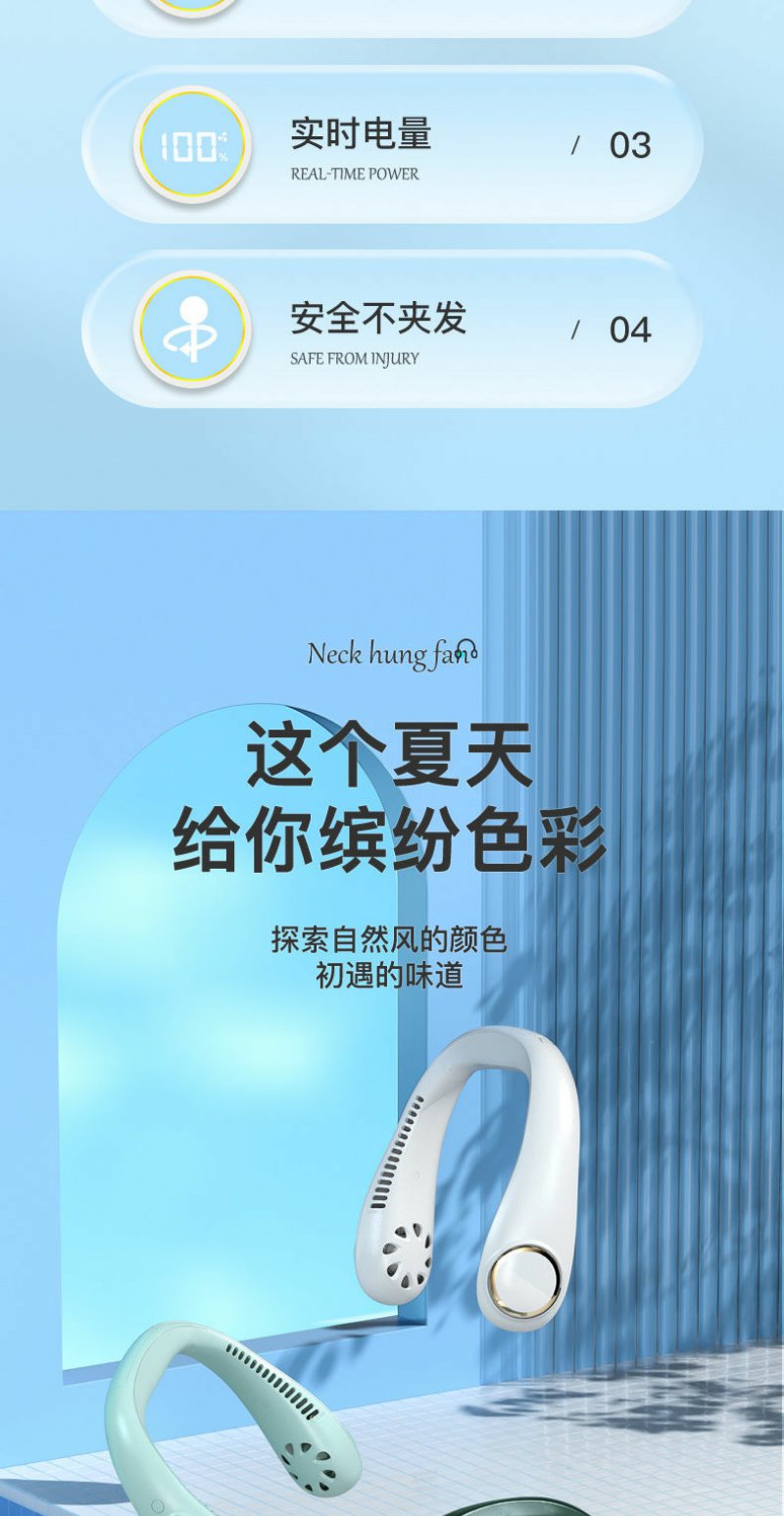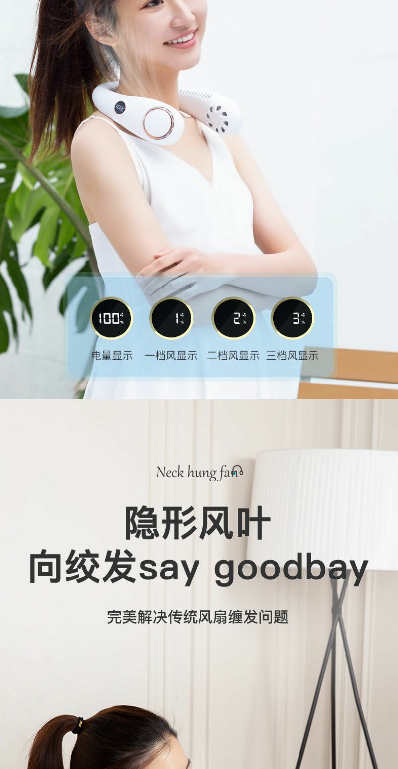 雅兰仕挂脖风扇便携式usb可充电迷你小风扇制冷大风力懒人随身挂