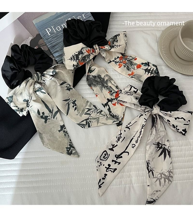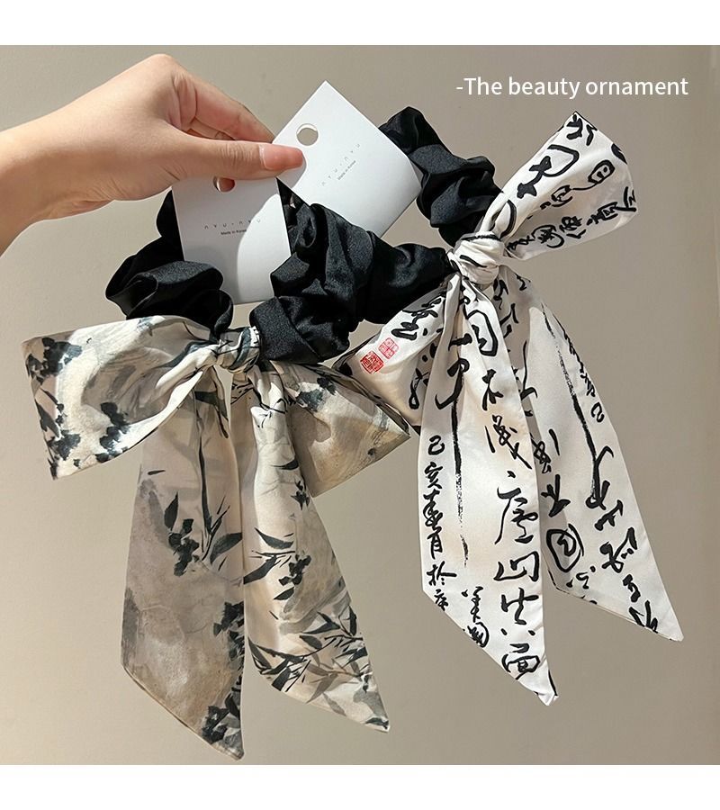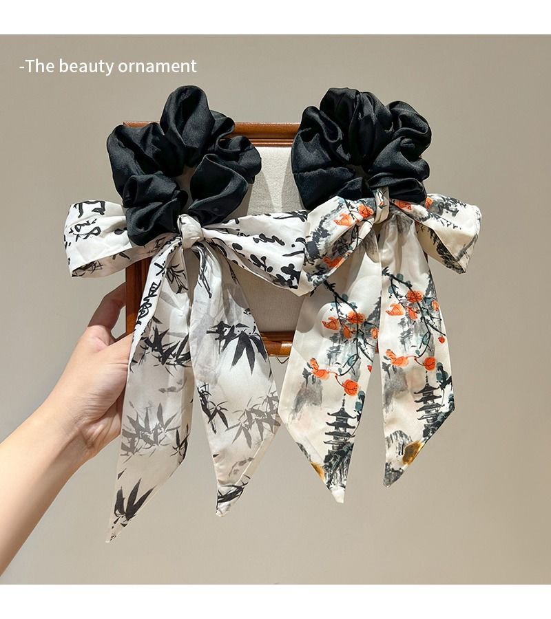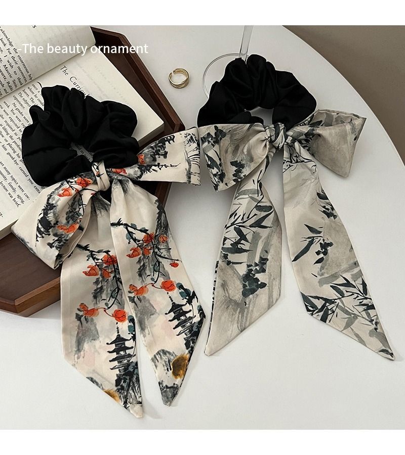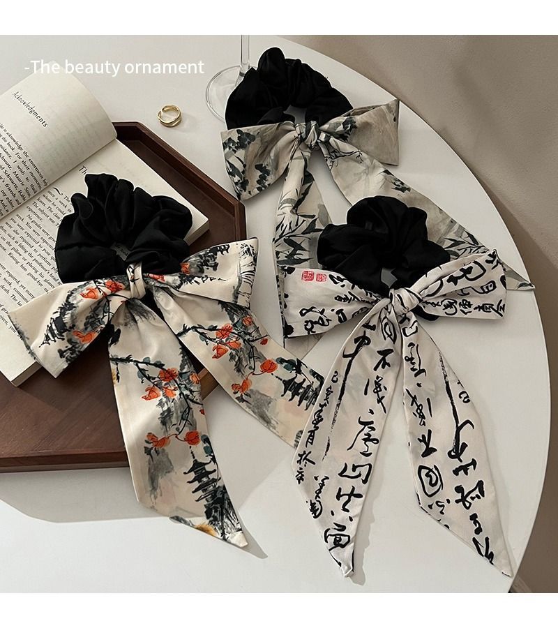 新中式国风蝴蝶结飘带大肠发圈气质书法发带皮筋女扎马尾头绳发饰