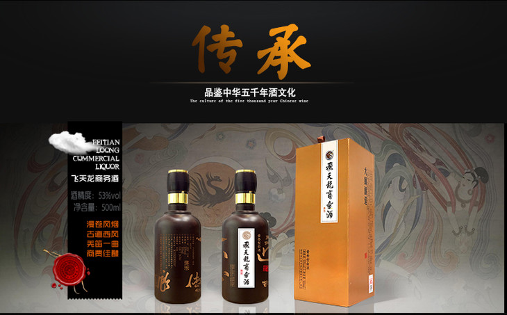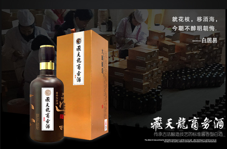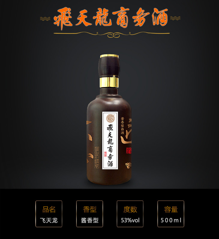 【包邮】贵州茅台镇飞天龙商务酒(传承)传承匠心 大师酿造 酱香型白酒500ml金色盒装 高端大气包装,商务聚会送礼多场合适用白酒