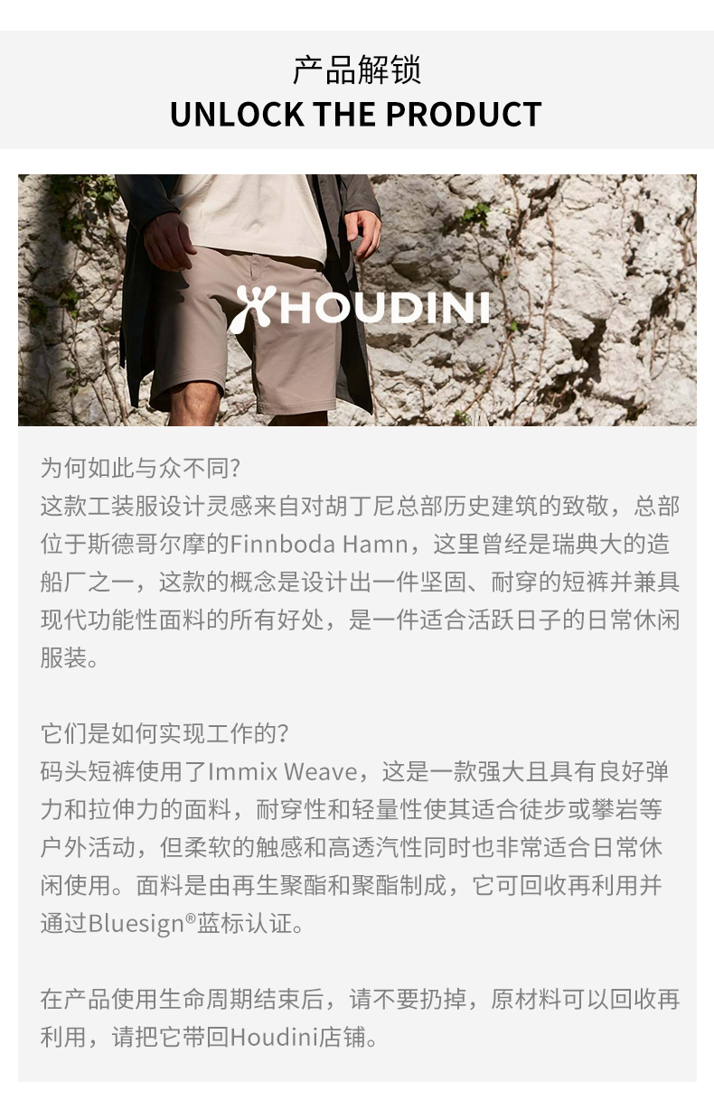 HOUDINI胡丁尼 Dock Shorts 码头 男款户外弹力透气速干短裤290864