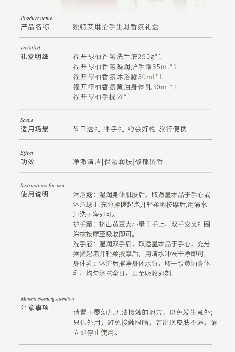 好运仪式感~独特艾琳福开禄柚秋冬护手霜礼盒沐浴露身体乳香氛礼物商务伴手礼品正品