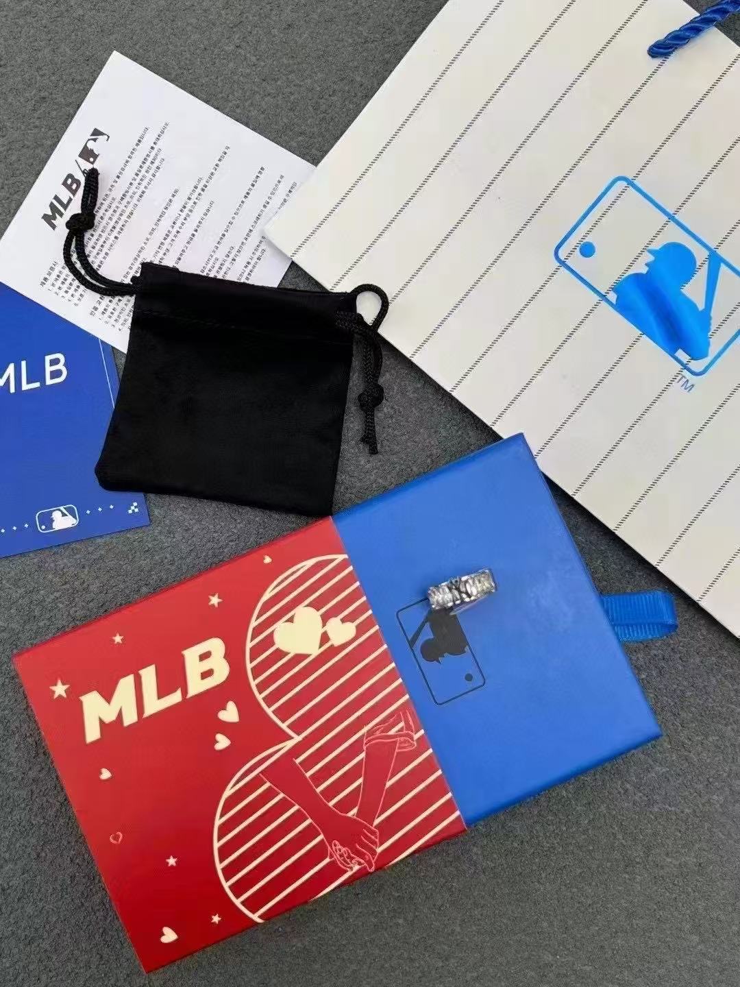 毒家!!贸易公司订单!!正品!正品!MLB戒指!全套包装,手提+礼盒圣诞送人最好的礼物!!!非常适合情侣带的戒指!!!钛钢材质不会掉色!!很有质感!!打磨清晰做工完美!!拿在手里沉甸甸的感觉,闪钻和金属搭配直接拉满高级感!!字母logo的立体感极强!!内壁佩戴超级舒服,戴上一整天都不想摘下来!!