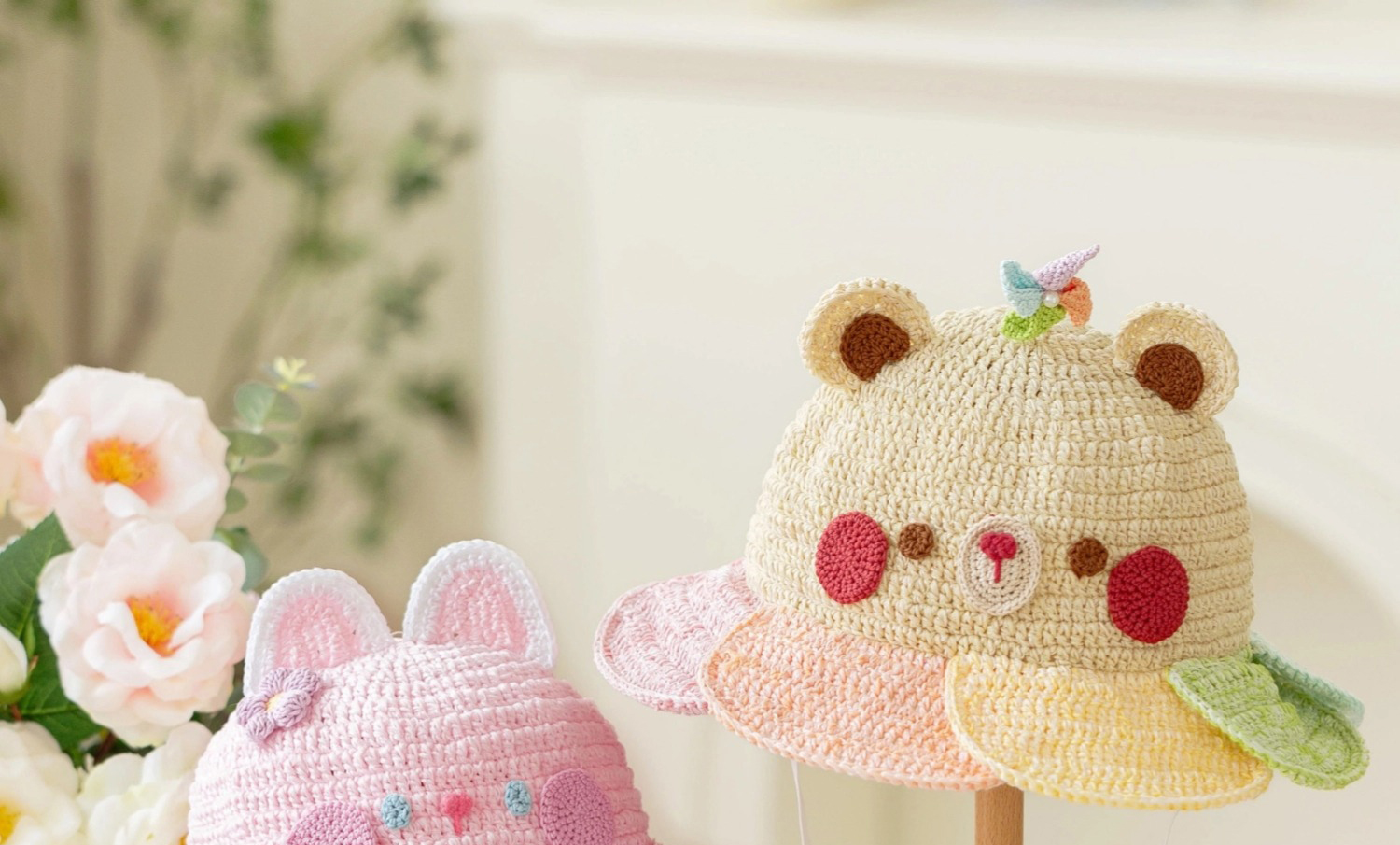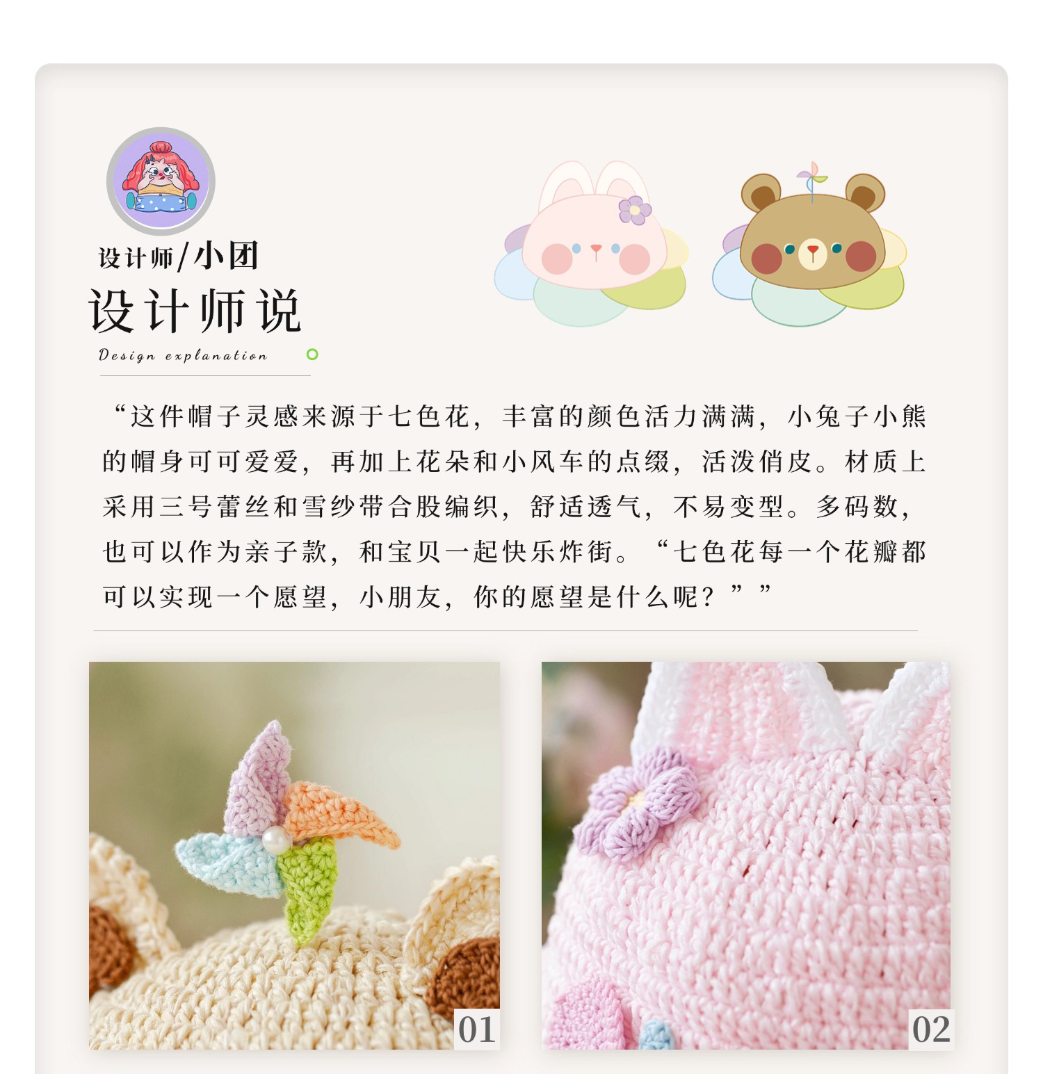 苏苏姐家七色花夏凉帽手工编织diy钩针雪纱带自制材料包
