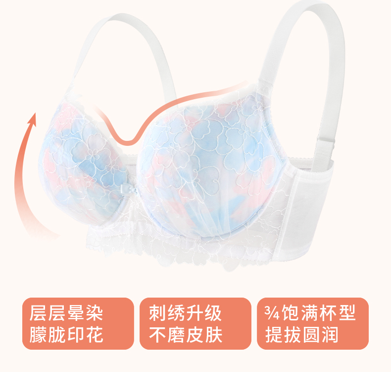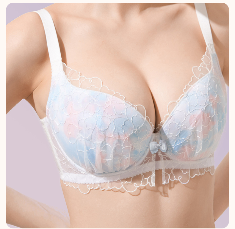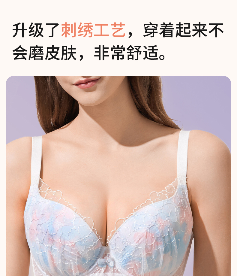 [花舞曲]软支撑无钢圈圆润大胸显小透气薄棉防凸蕾丝显瘦文胸内衣女送女友