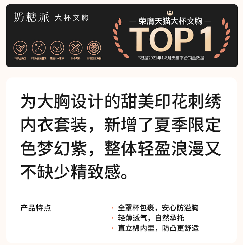奶糖派棉感薄款透气包容上托稳定豆蔻文胸大胸专属少女大罩杯内衣
