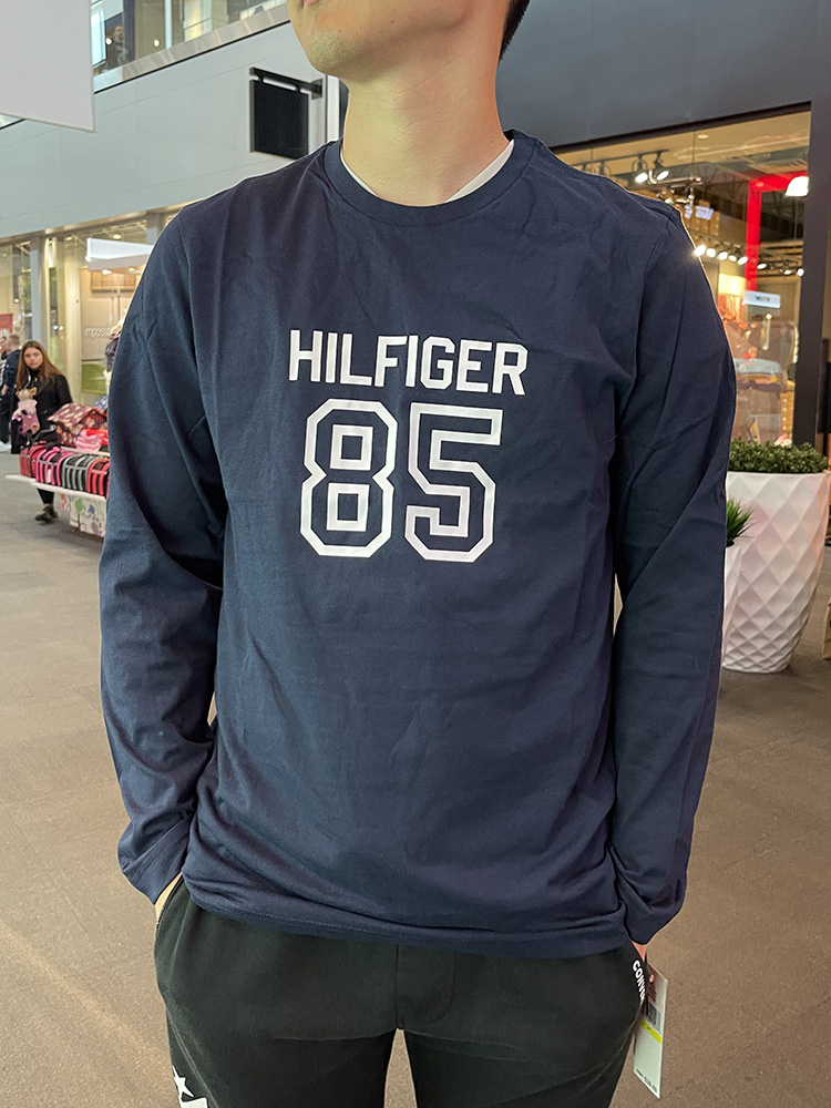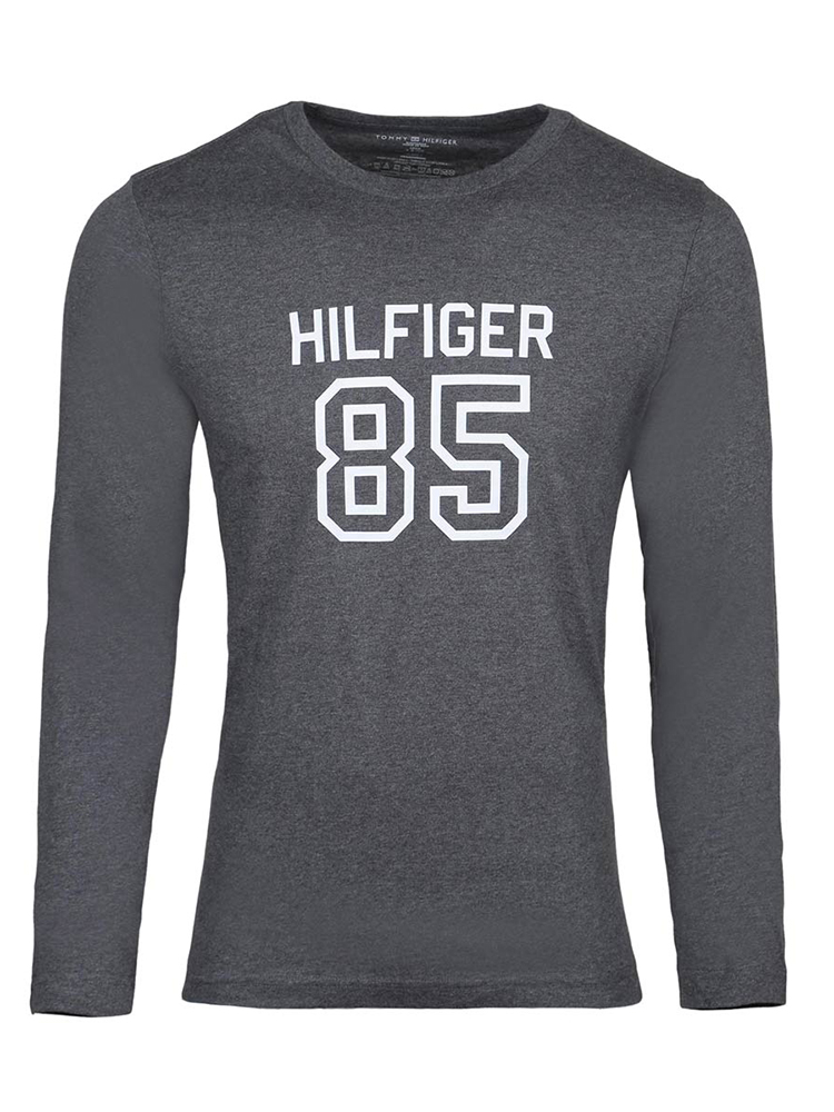 Tommy Hilfiger/汤米 男士春秋款数字英文印花圆领长袖T恤