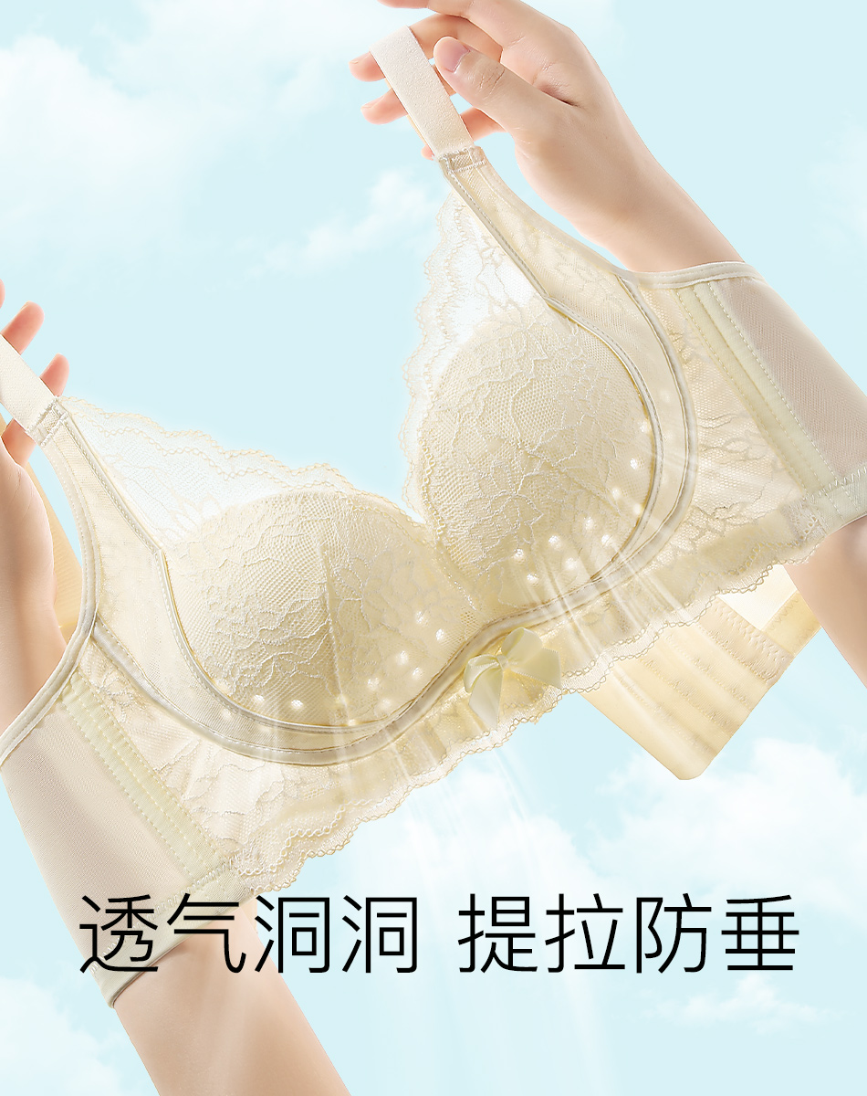 【透气洞洞】夏季双重提拉防垂薄杯内衣女侧收上托聚拢收副乳文胸彩霞浮云