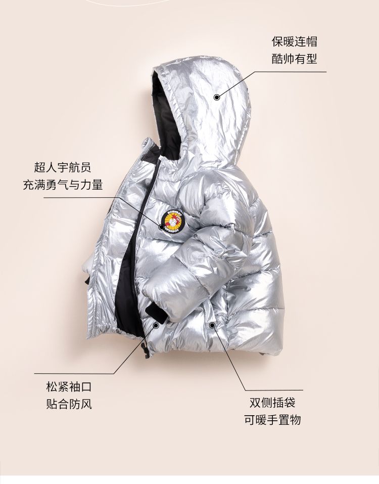 贝贝怡官方儿童羽绒服冬季宝宝外套男童短款连帽外套帅气214S2802