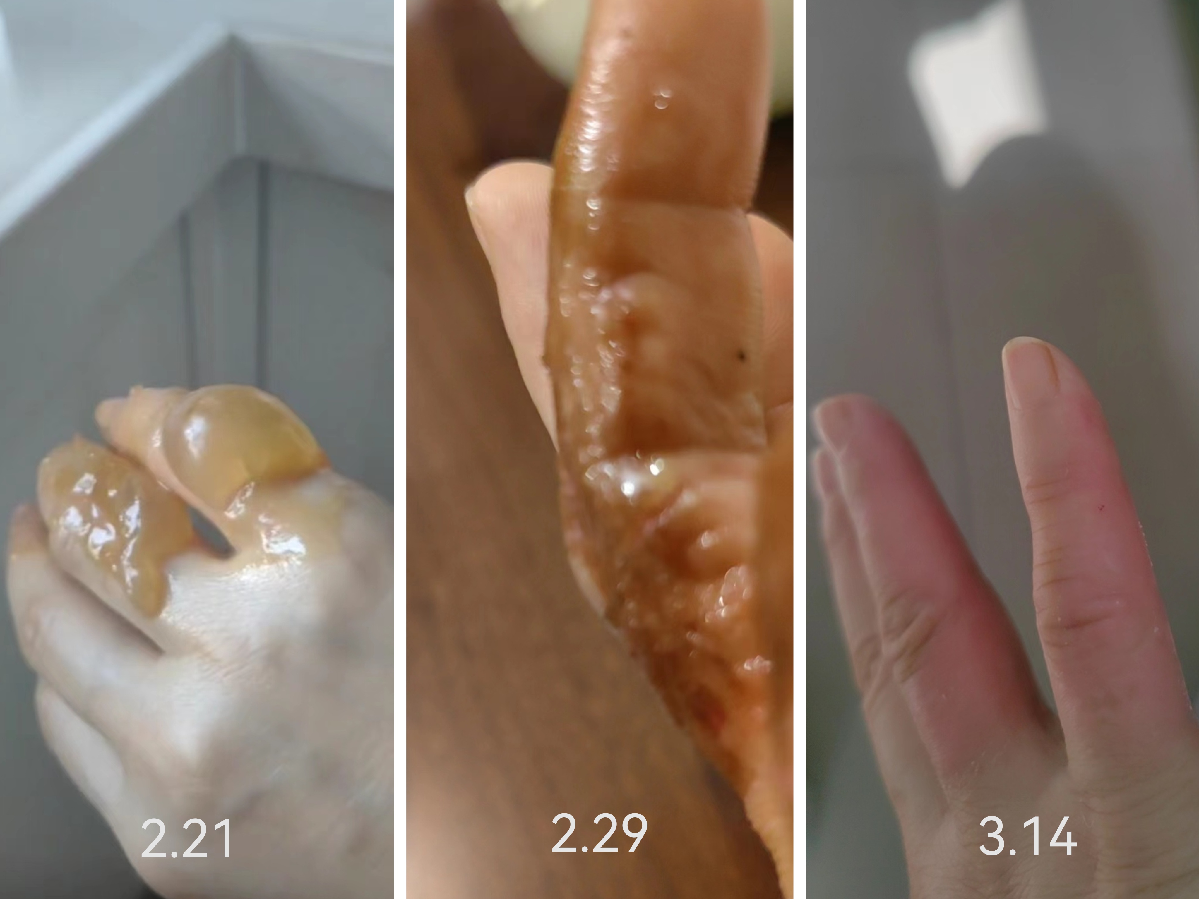 3.等拆线或结痂脱落后,用祛疤精油,每日多次。