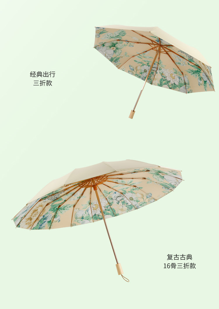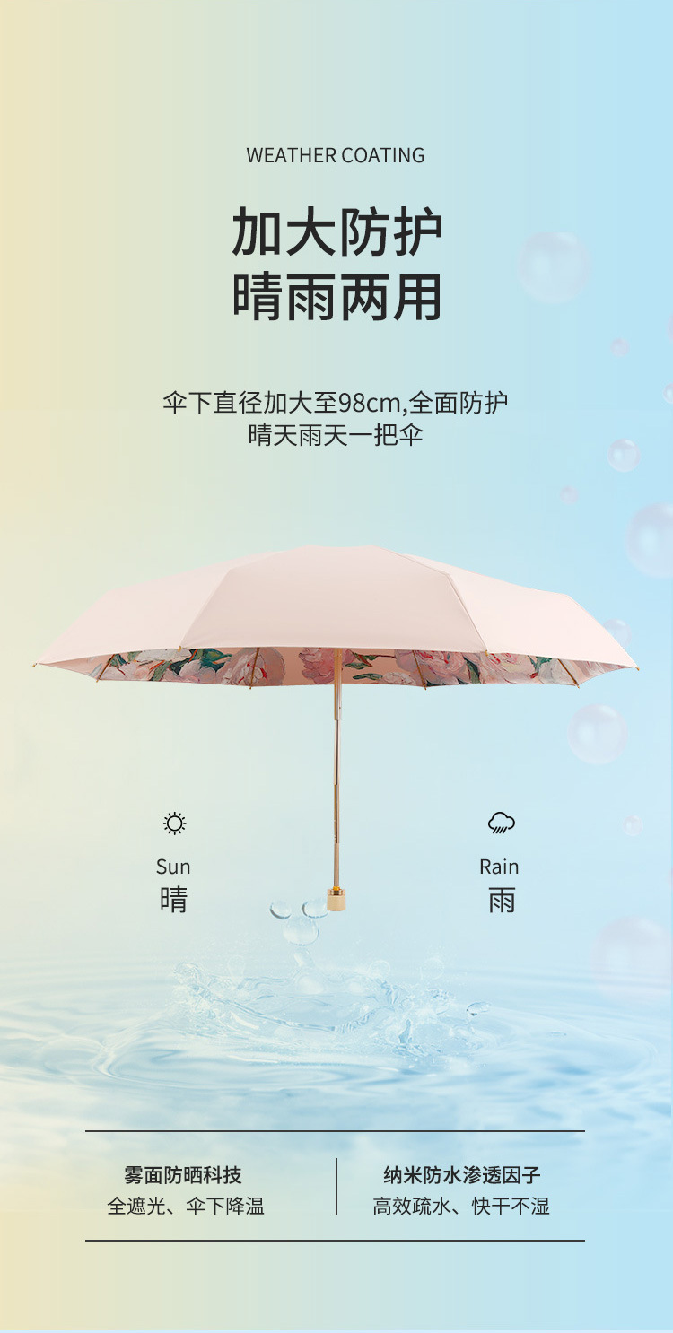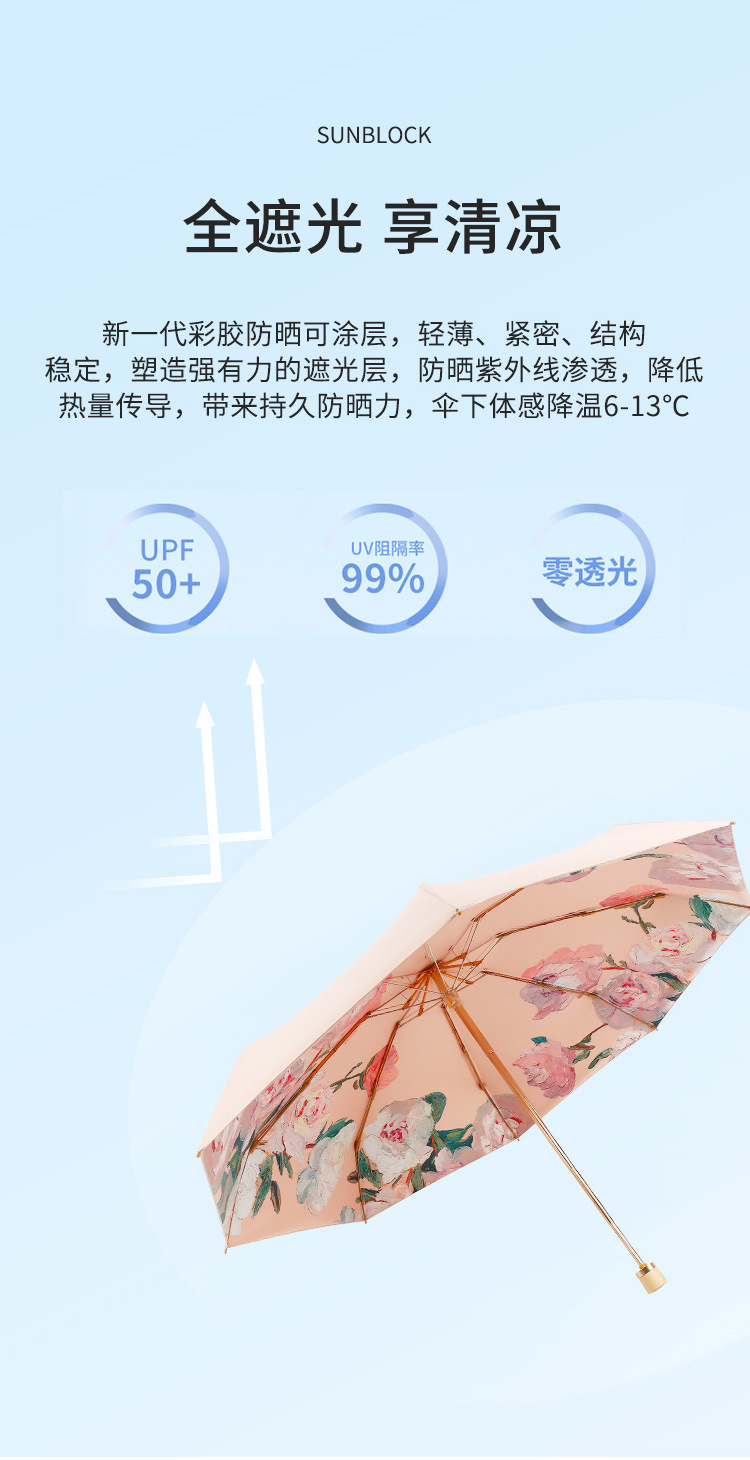 【三折木柄金杆铝合金】晴雨两用遮阳伞防晒防紫外线彩胶折叠女太阳伞