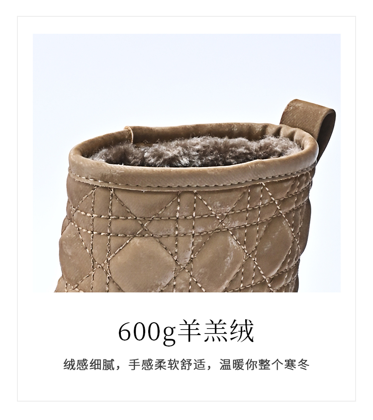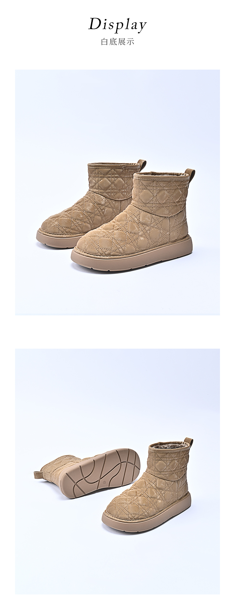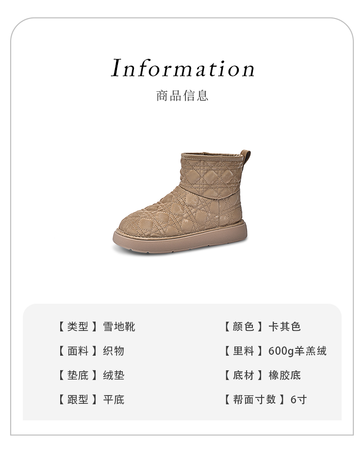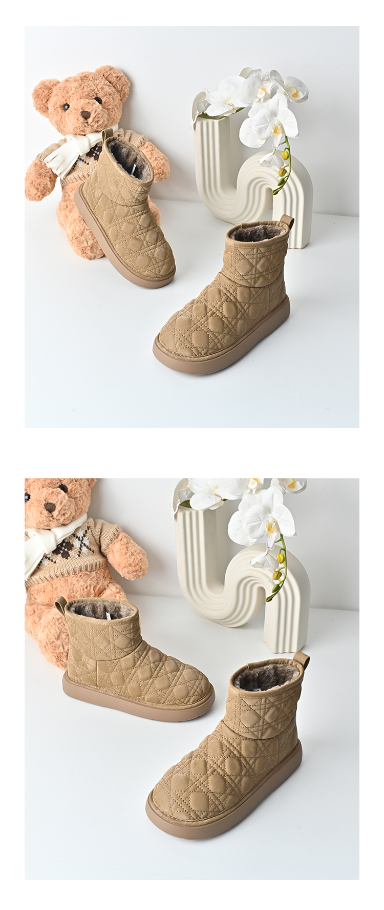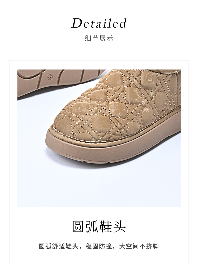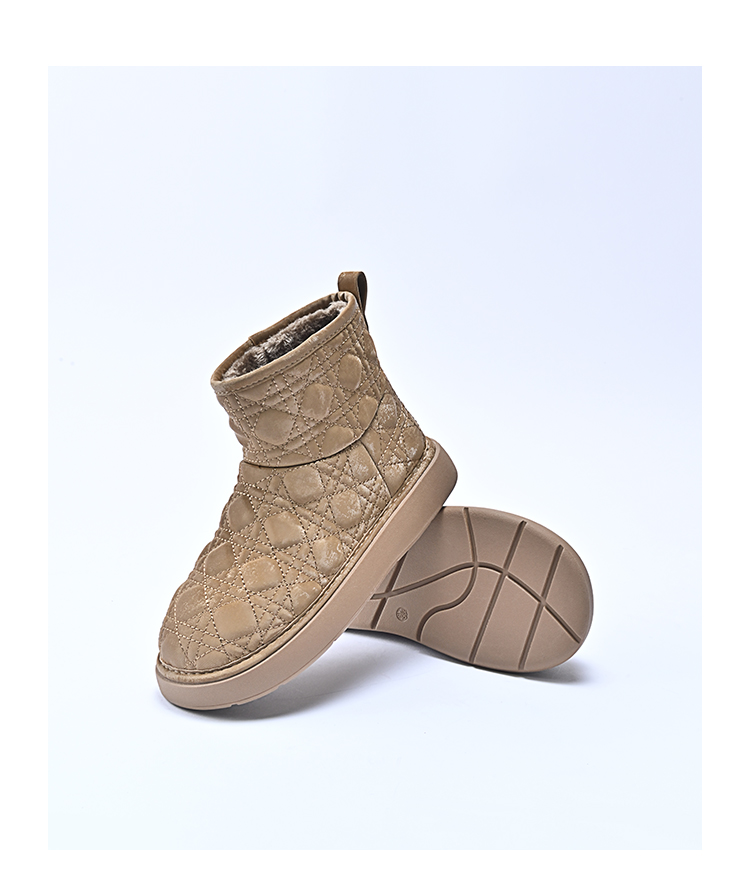 经典鲨2025冬季专柜新款时尚菱格圆头加绒加厚平底雪地靴女KW322-558011
