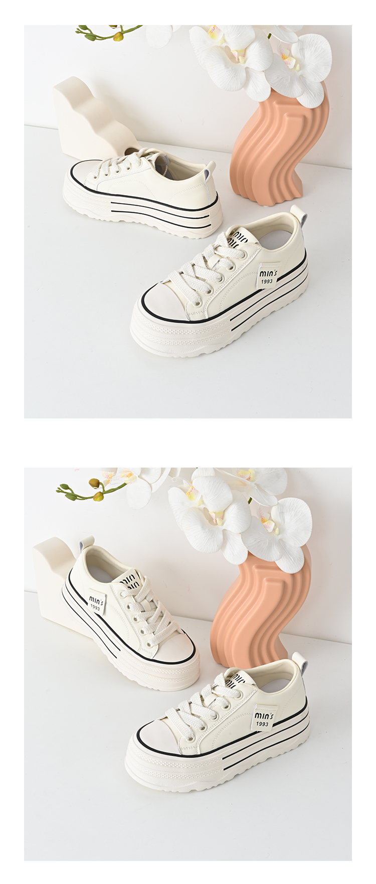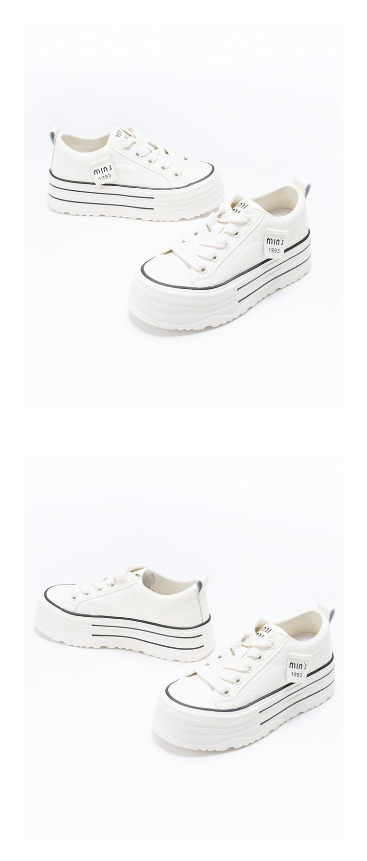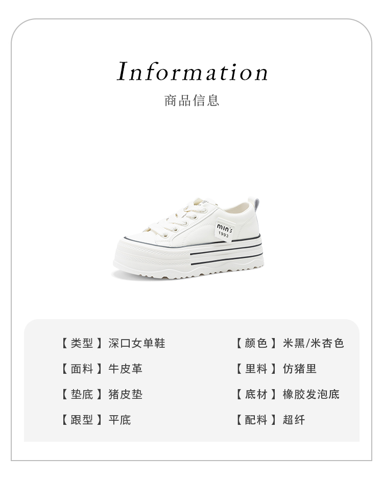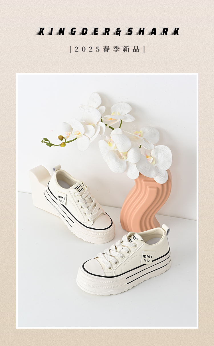 经典鲨2025年春新品韩版百搭厚底休闲平底系带小白鞋板鞋女KW389-517011