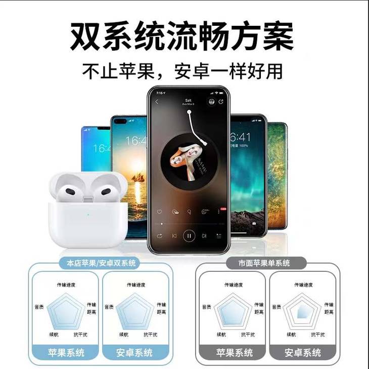 新晋登场,精妙体验,开盖即连,光感入耳检测,双耳智能触控,兼容苹果安卓,游戏0延迟,HIFI无损音质,AAC音频解码,蓝牙5.1连接稳定,不断连,不卡顿!升级款芯片+石墨烯全景振膜杜比音效,音质史上最棒的一款,清澈全景震撼音质保真99%,如亲临现场!真的震撼!苹果这款真的太多高科技了,介绍不完!
