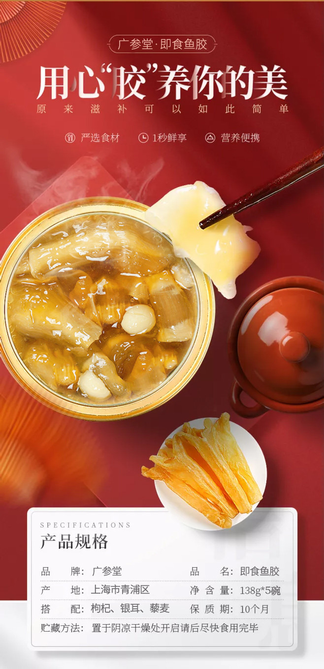 【严选系列】即食鱼胶礼盒138g*5碗