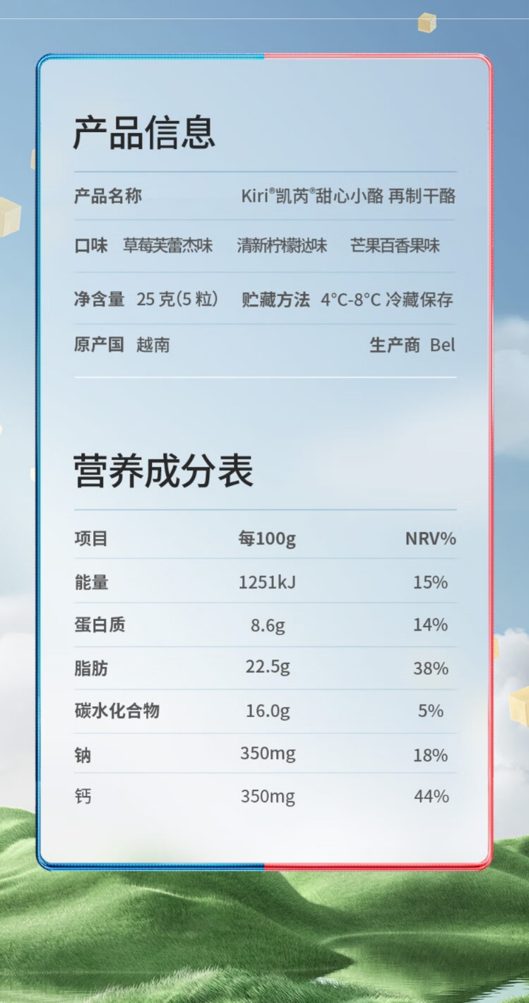 凯芮Kiri甜心小酪草莓芙蕾杰味再制干酪 25g,保质期273天