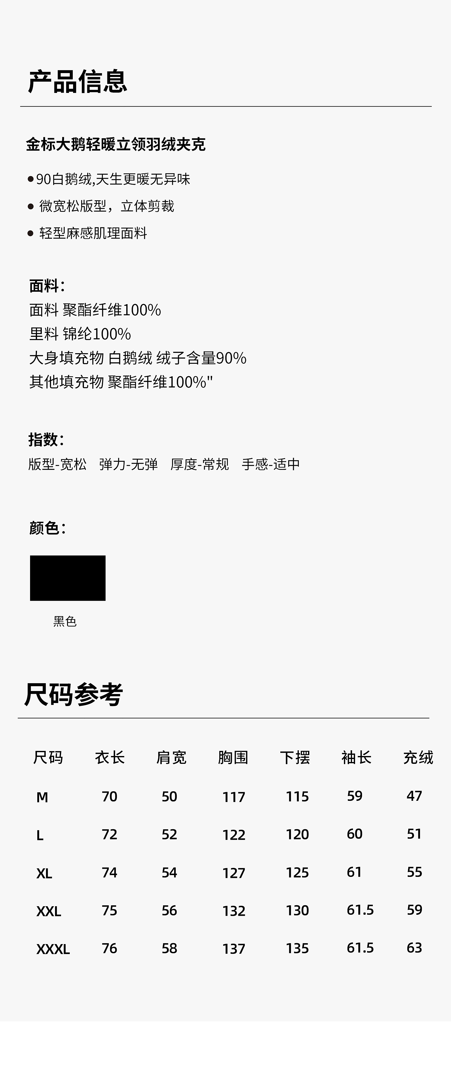 棉仓357815026-金标大鹅轻暖立领羽绒夹克
