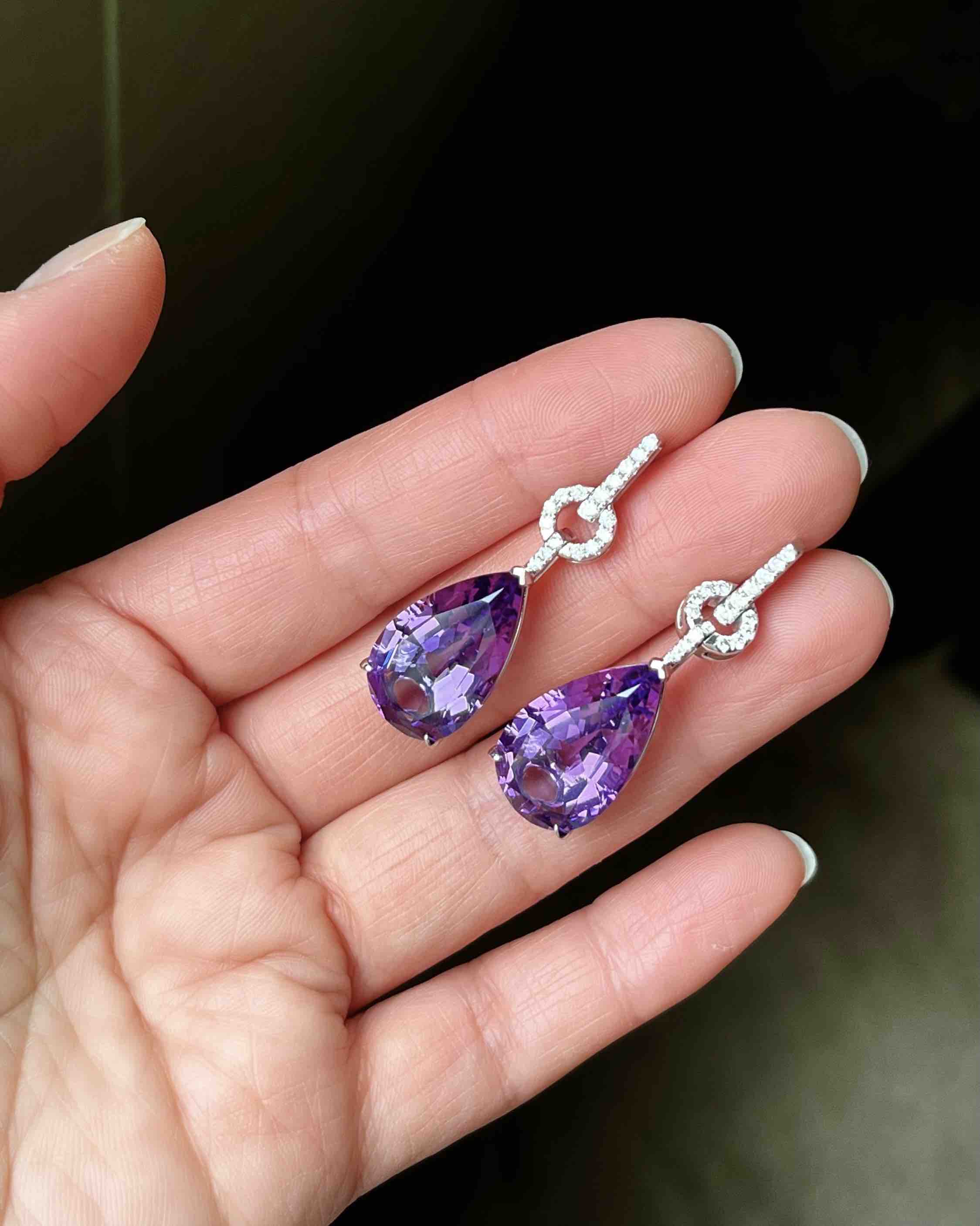 作品名称:18K镶钻石和天然紫晶耳坠