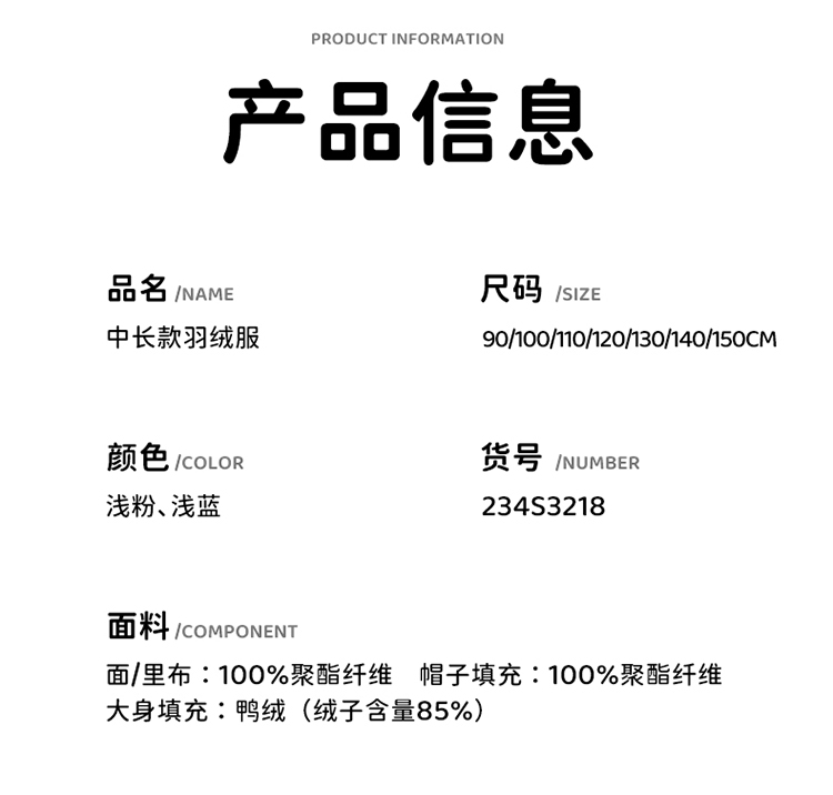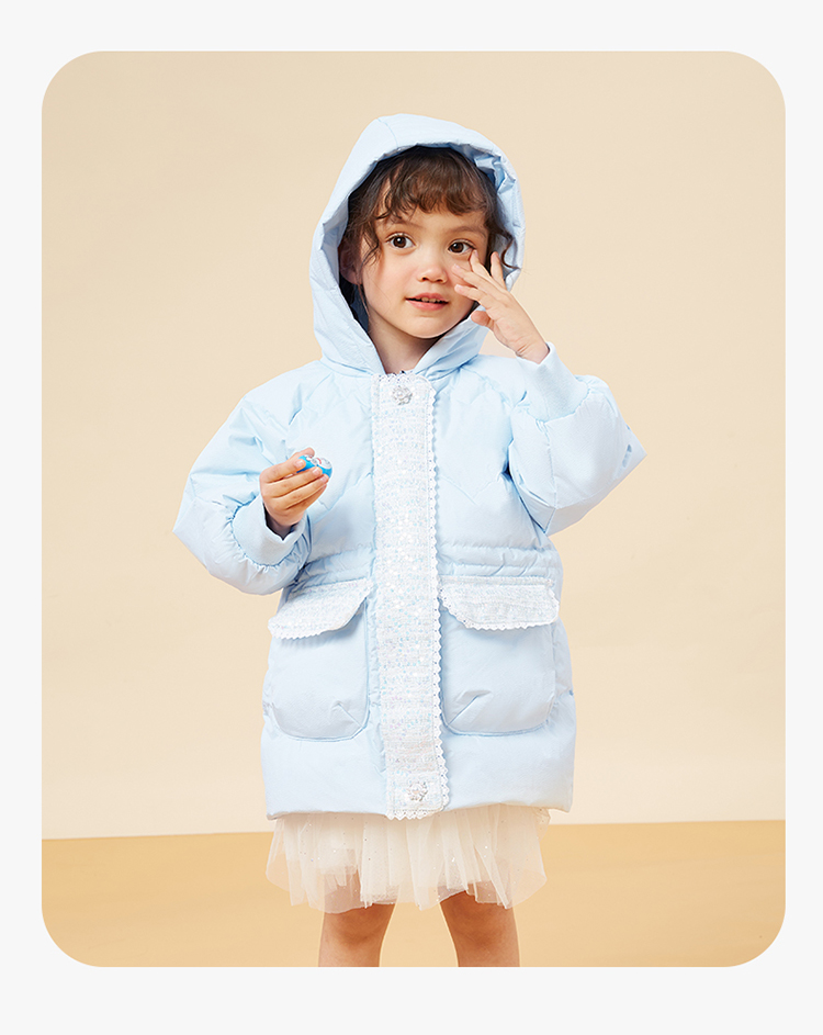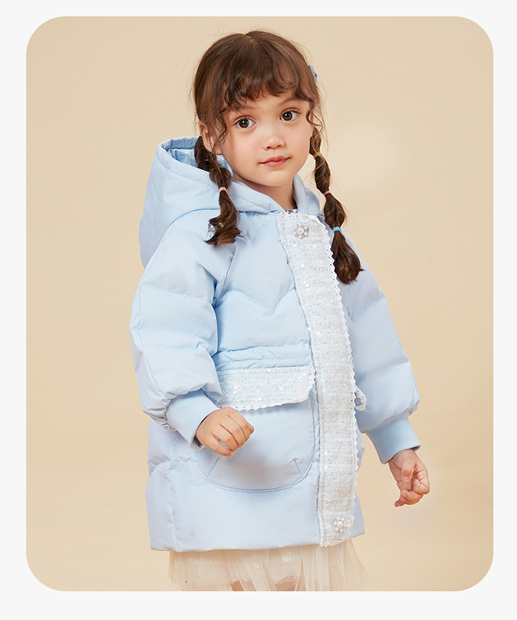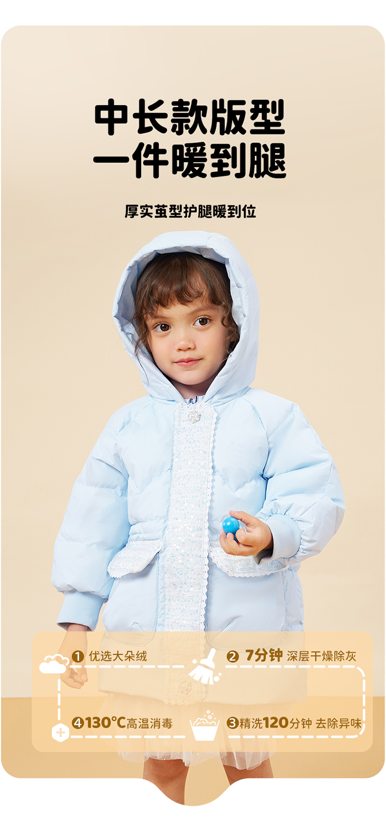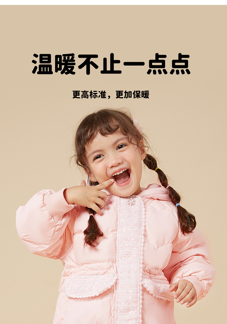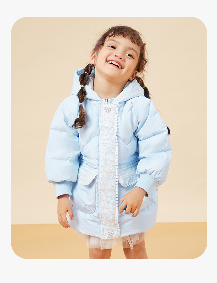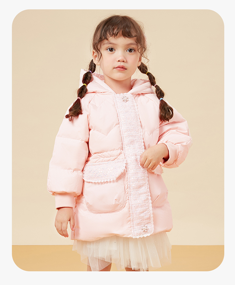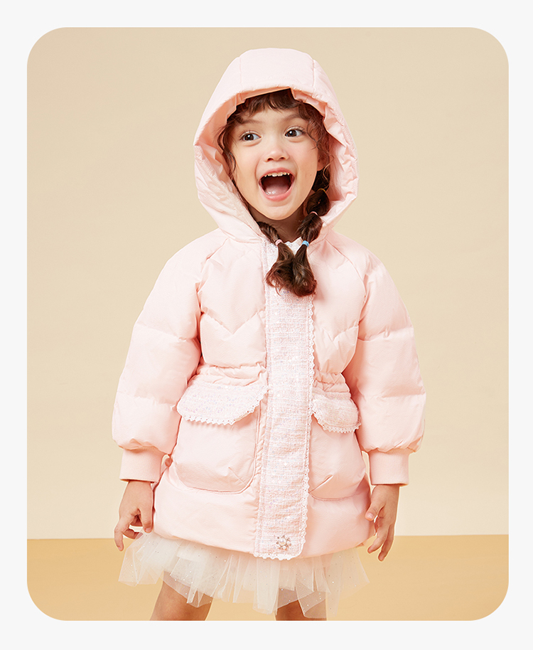 贝贝怡童装女童中长款小香风甜美羽绒女宝宝冬季防风防寒保暖外套234S3218
