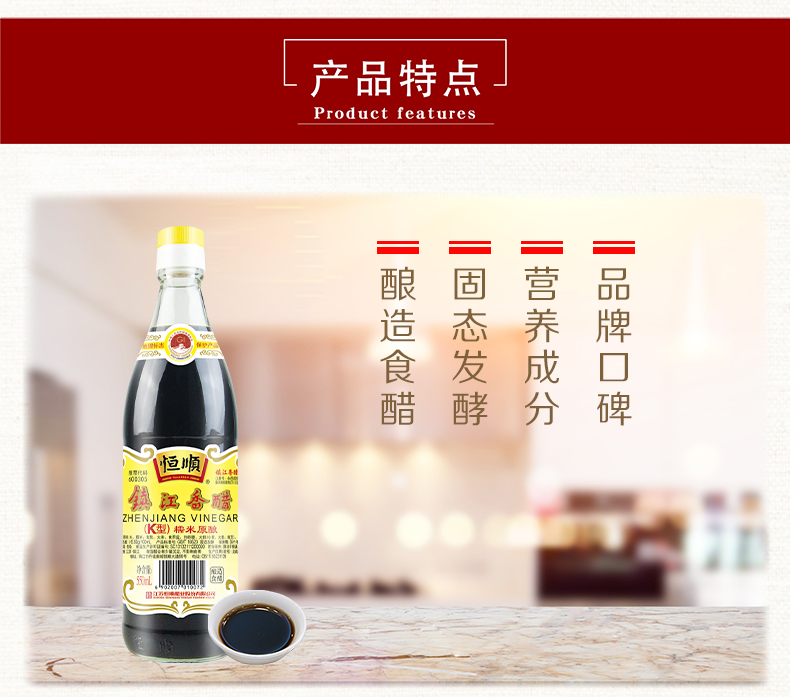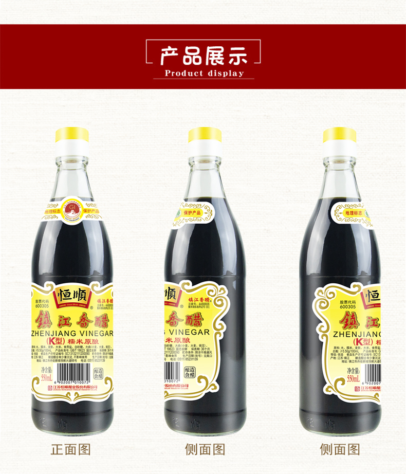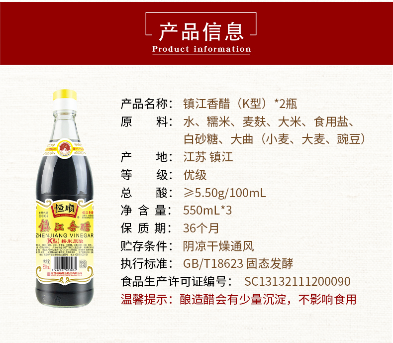 恒顺K型香醋纯粮酿造食醋550ml/瓶炒菜烹饪凉拌蘸料厨房家用