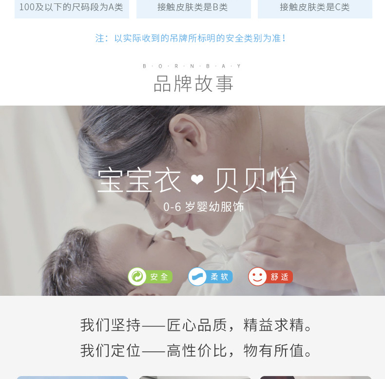 - 贝贝怡专注0-6岁婴幼儿服饰,坚持安全、柔软、舒适的产品理念,为千万中国家庭提供超高品质、安全可靠的婴幼儿服饰产品,妈妈放心,宝宝开心!