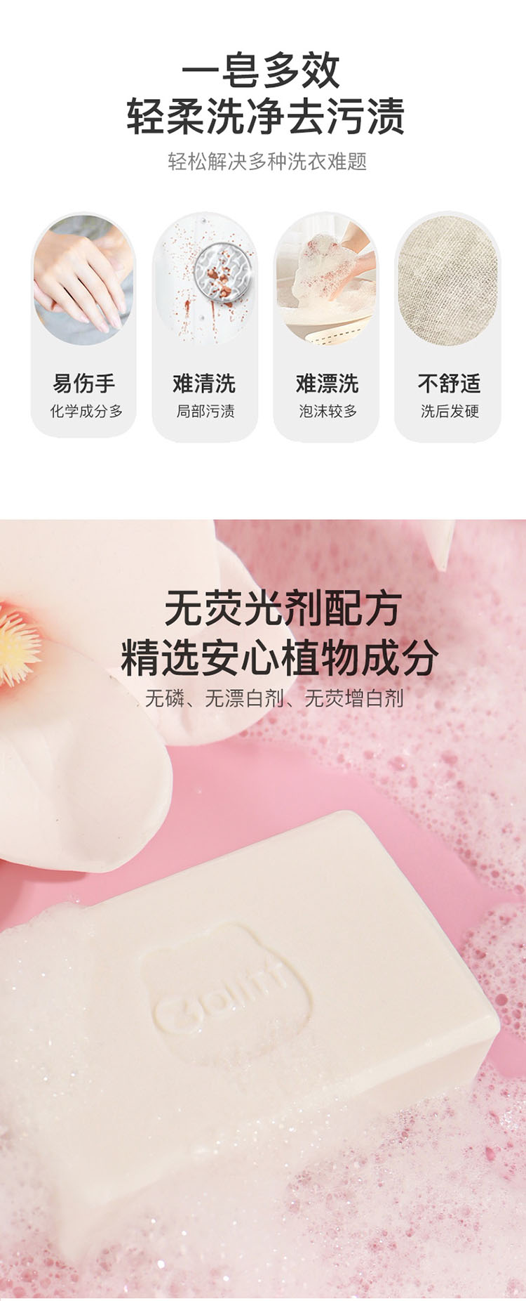 zolitt婴儿洗衣皂宝宝专用新生婴幼儿童肥皂内衣裤皂尿布去污抑菌4块