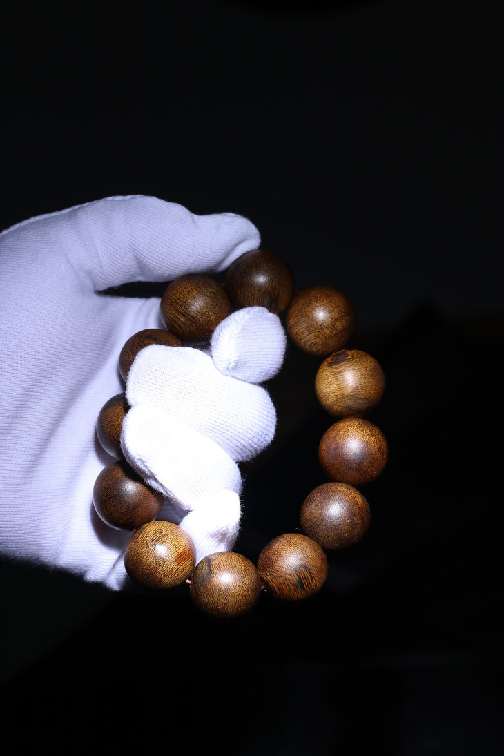 上手气质出众,生闻浓郁蜜香甘甜入鼻,味道甜,蜜香味道足肉质金黄,结香丰满细腻,软糯细腻其香为香王白奇楠的典型香韵,料小味道却是不俗,扑鼻而来的薄荷凉韵中,甘甜花蜜香缕缕,闻之透鼻醒神,过手余香沁入心扉。