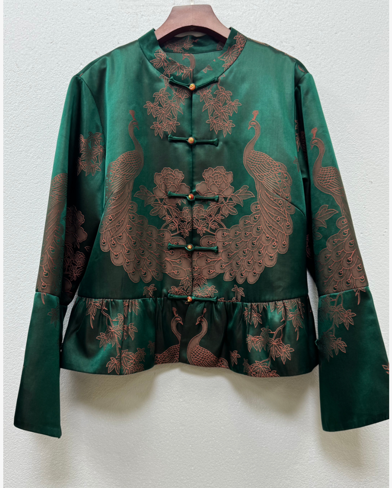 下架|盛唐婧 | 轻奢时尚新中式老缎对花对襟外套-绿色