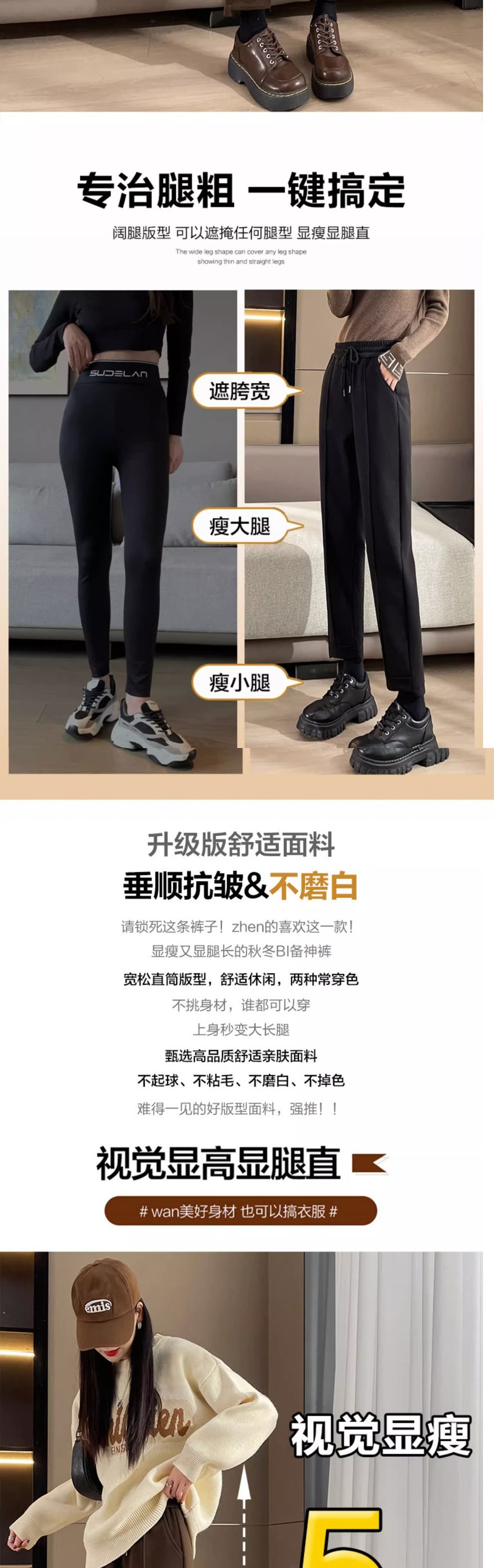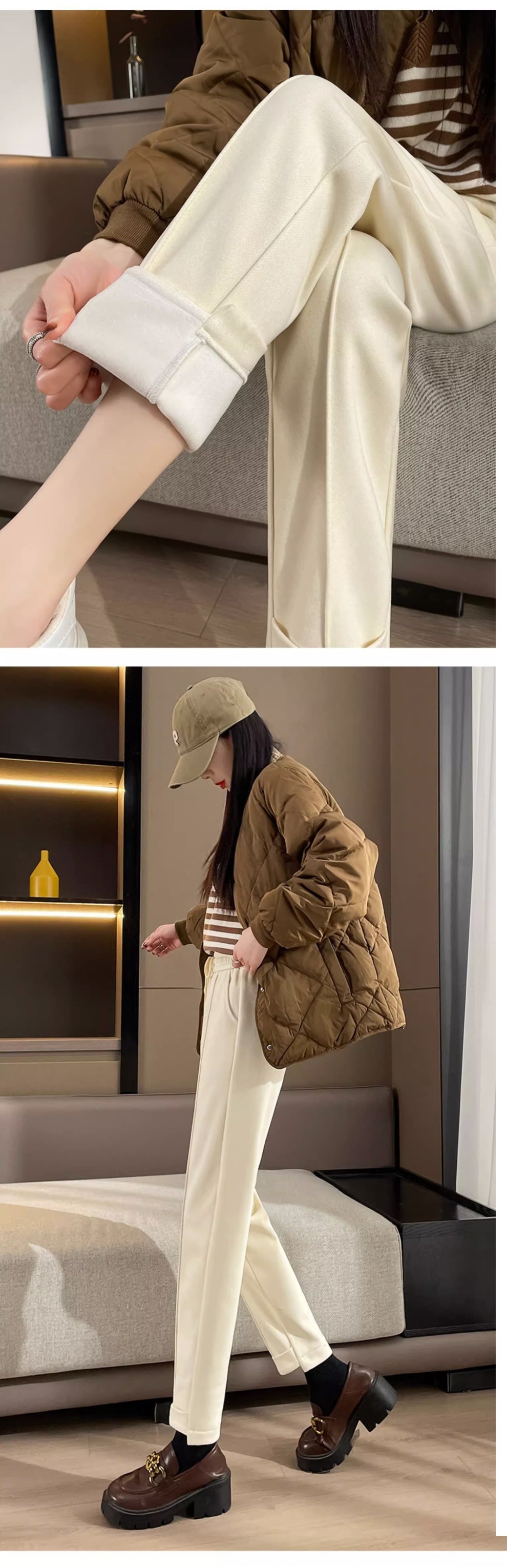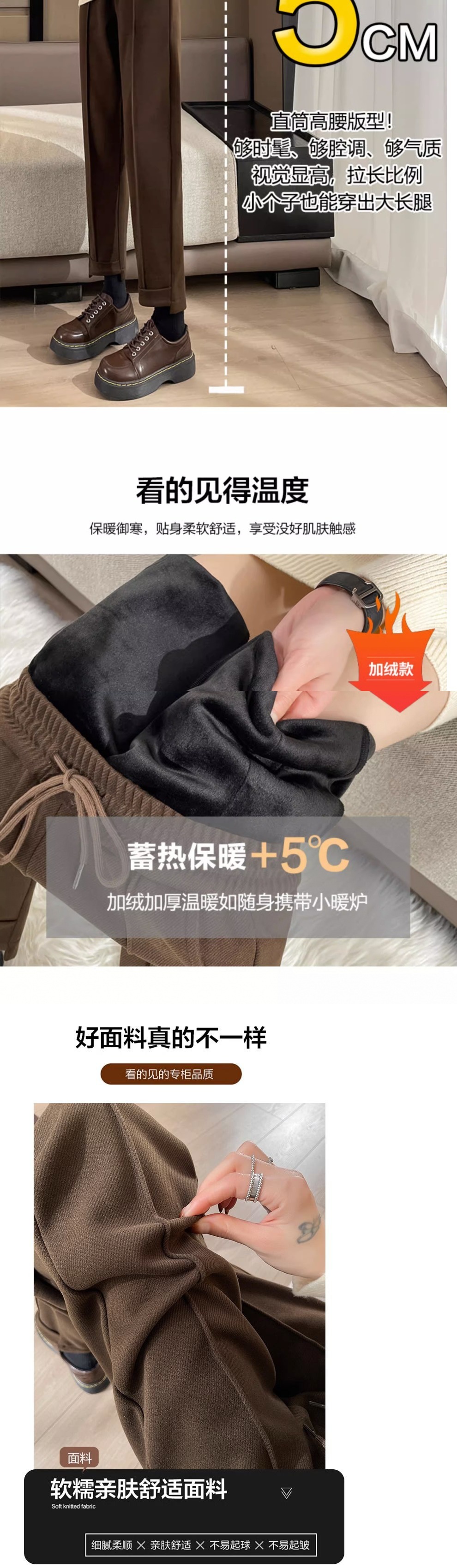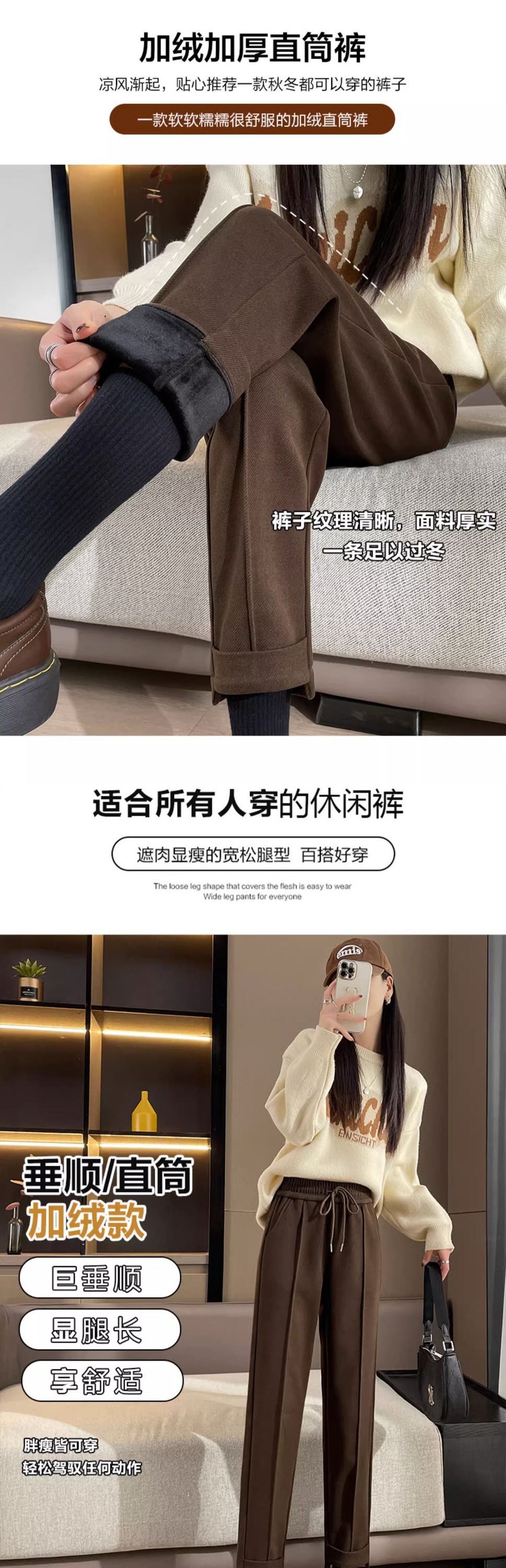 【遮肉显瘦!加绒加厚直筒裤】秋冬季加绒毛呢烟管直筒裤宽松显瘦百搭好穿小个子休闲高腰加厚西装裤