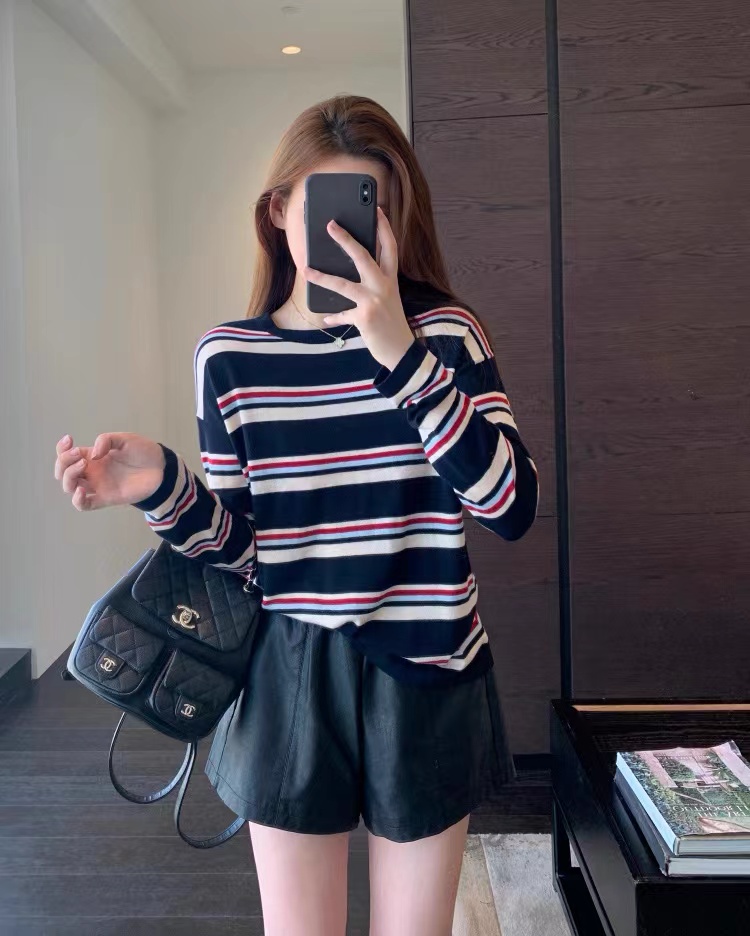 韩系减龄 含醋酸羊毛柔软慵懒条纹针织衫女毛衣秋冬新款,好看哭了!巨减龄韩系的条纹长袖条纹控的醉爱