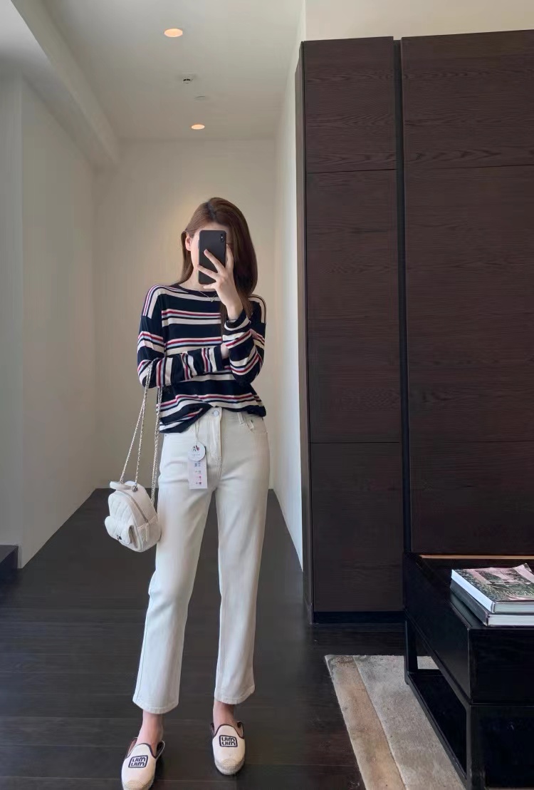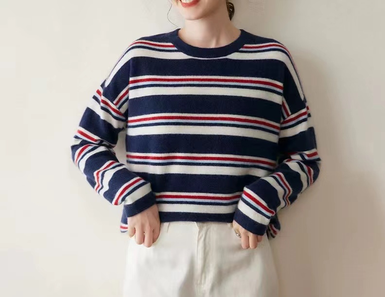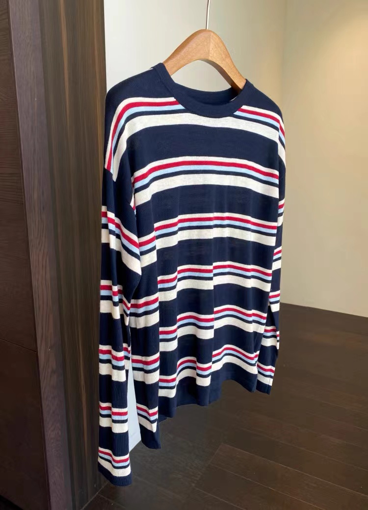 给秋天一点颜色看看~蓝/红/白/藏青条纹衫自带层次感,百搭不挑人可文静舒展,可活泼灵气,天生的主角光环OVERSIZE宽松版型包容所有身材,多余肉肉统统不见上身没有丝毫拘束感!自带慵懒氛围人在衣中晃的Feel侧面看自然显薄,轻松穿出纸片人既视感宽窄不一的横纹实力显瘦,打造纤薄漫画人醋酸,羊毛,羊绒,粘胶等混纺纱线综合优势,层次丰富