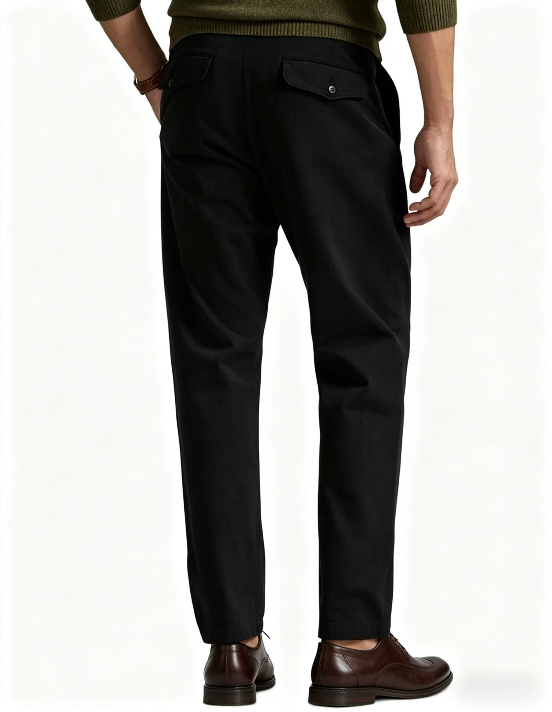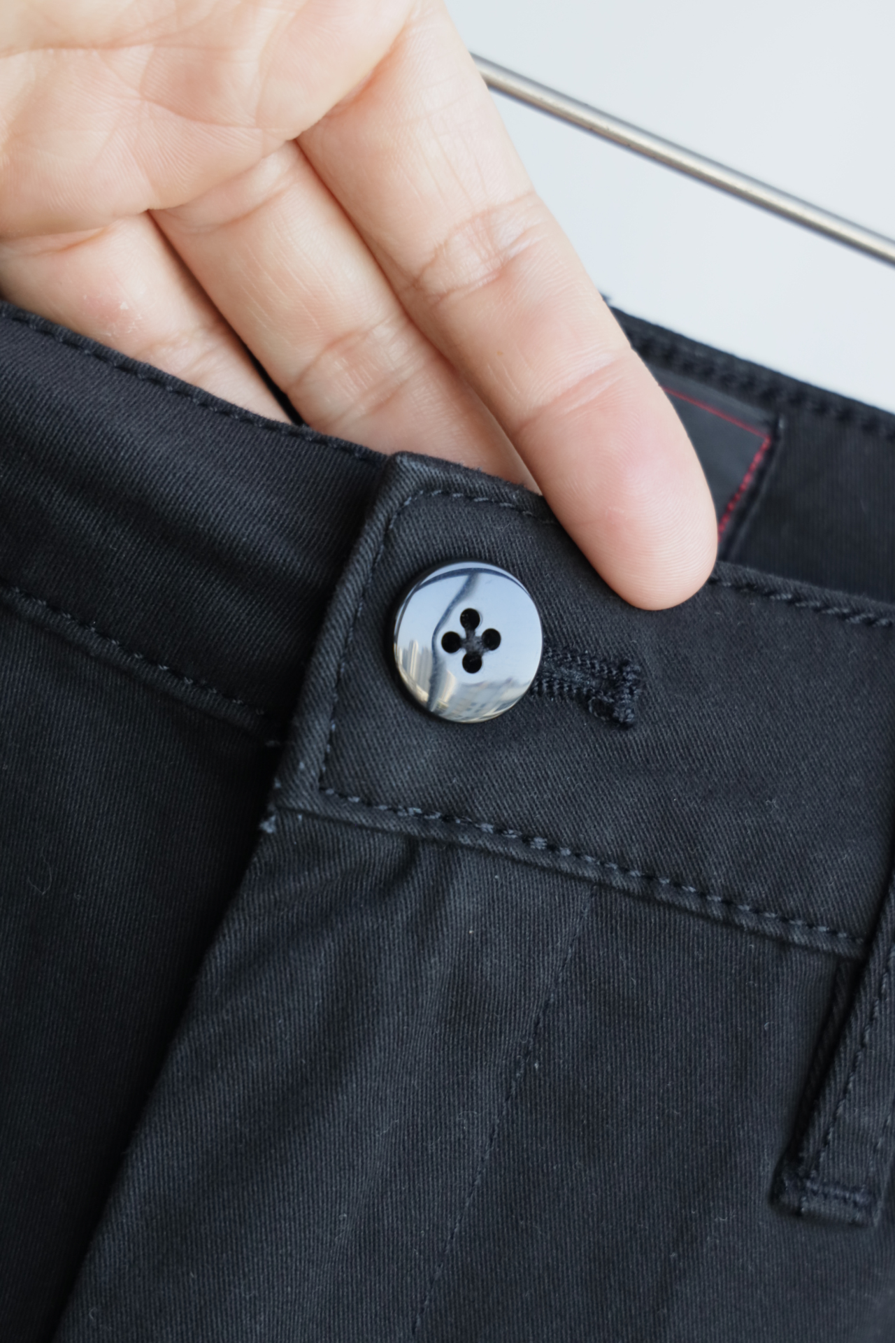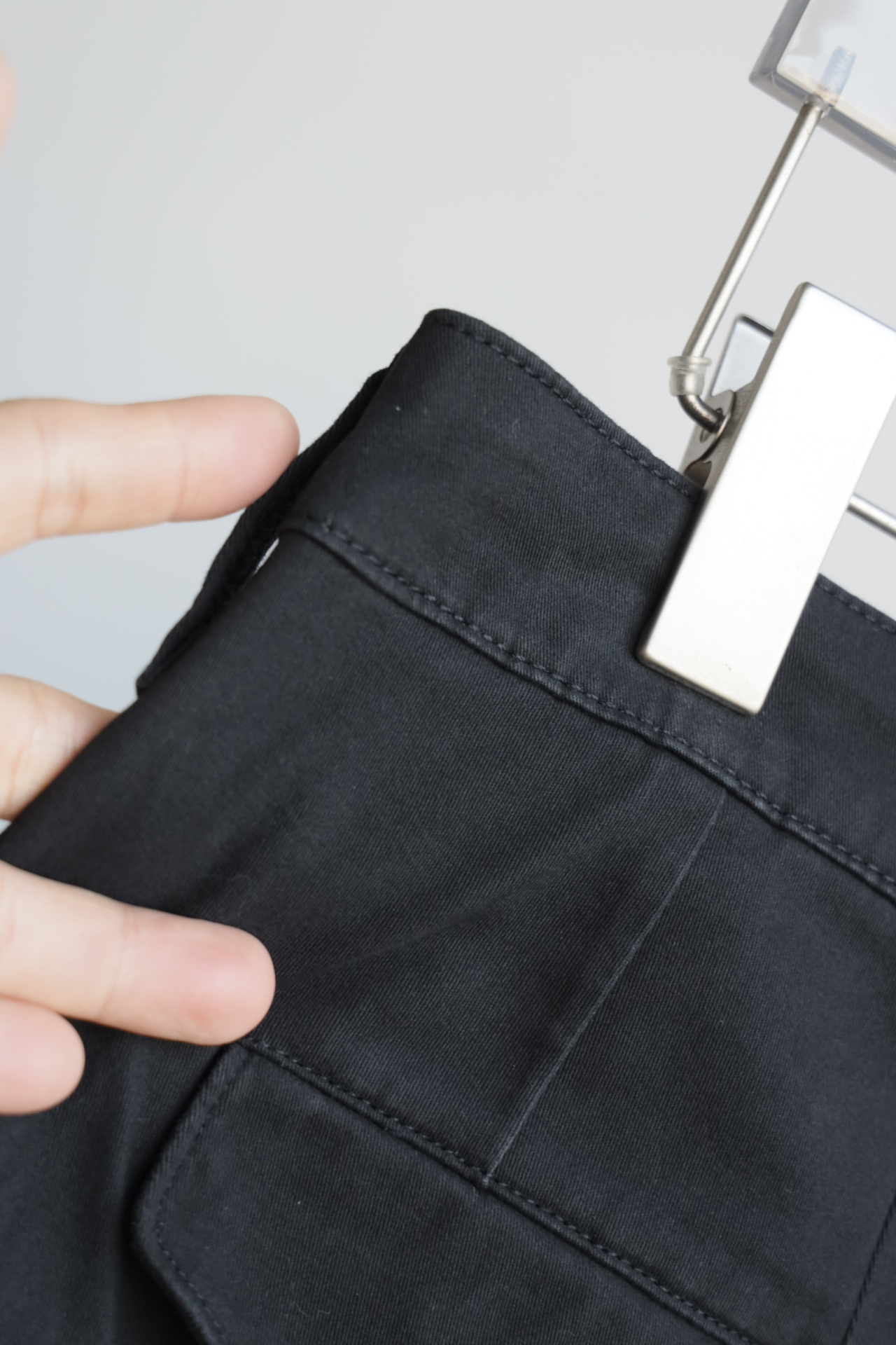 后腰翻盖口袋+简约五金细节,低调彰显匠心
