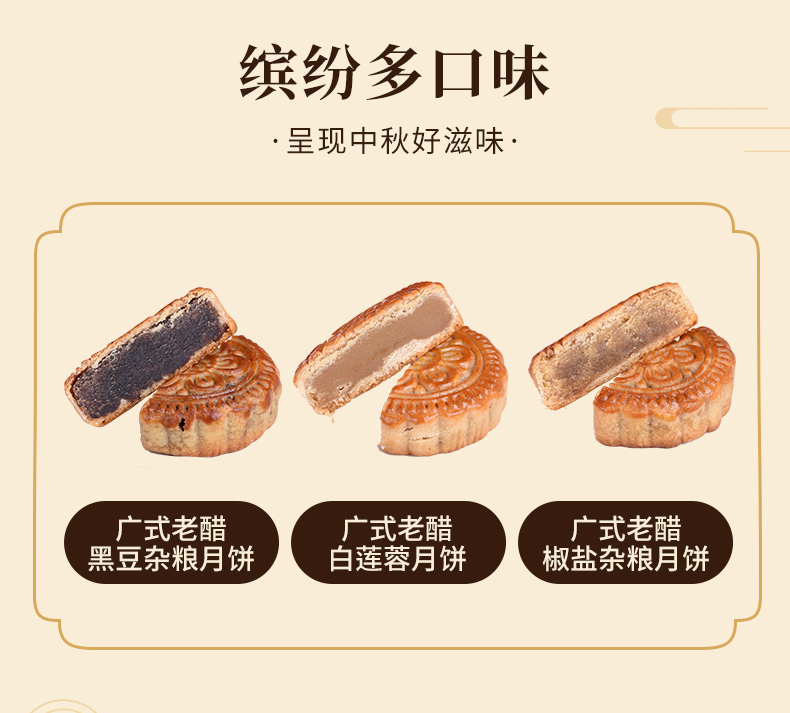 【广式月饼100g】 黑豆杂粮/椒盐杂粮/白莲蓉月饼