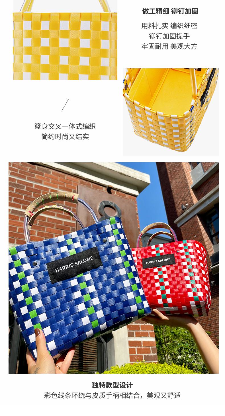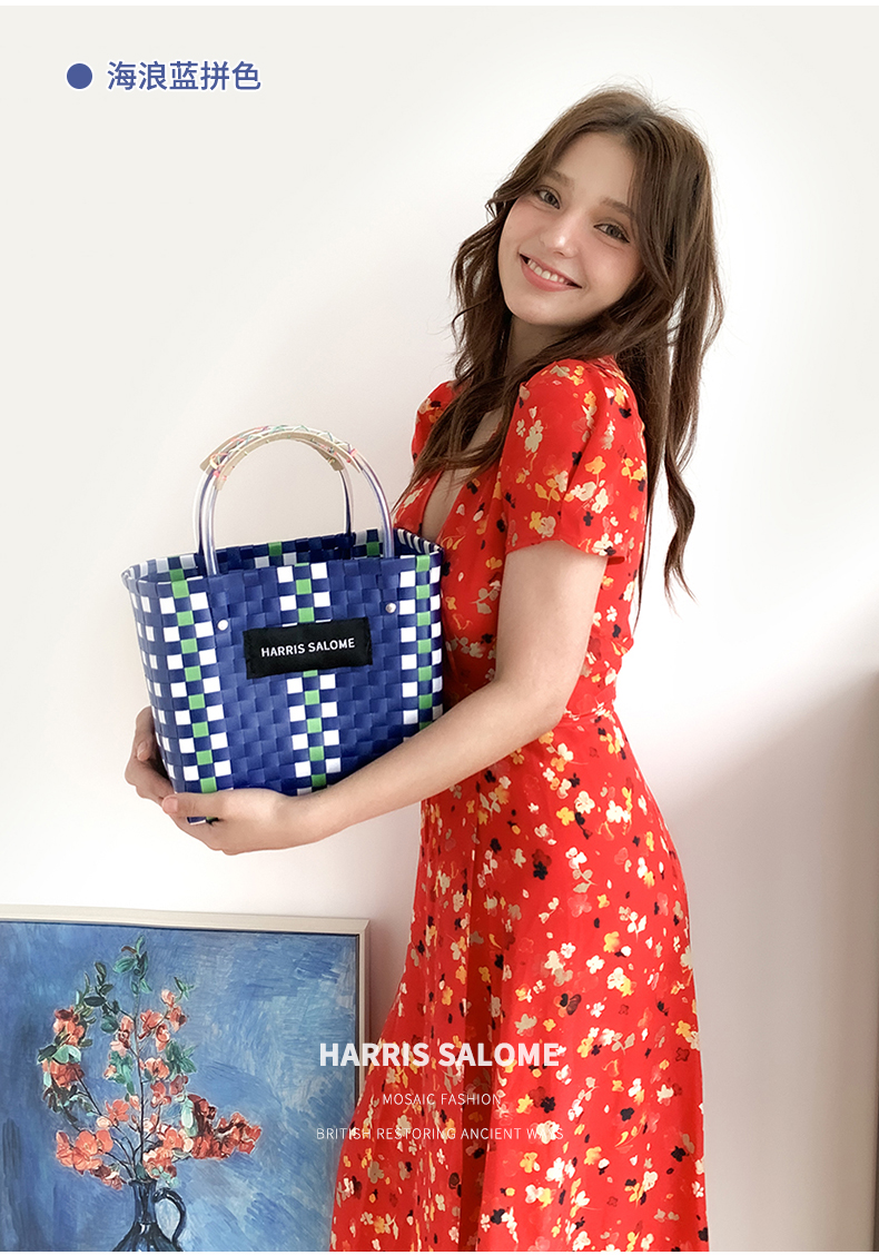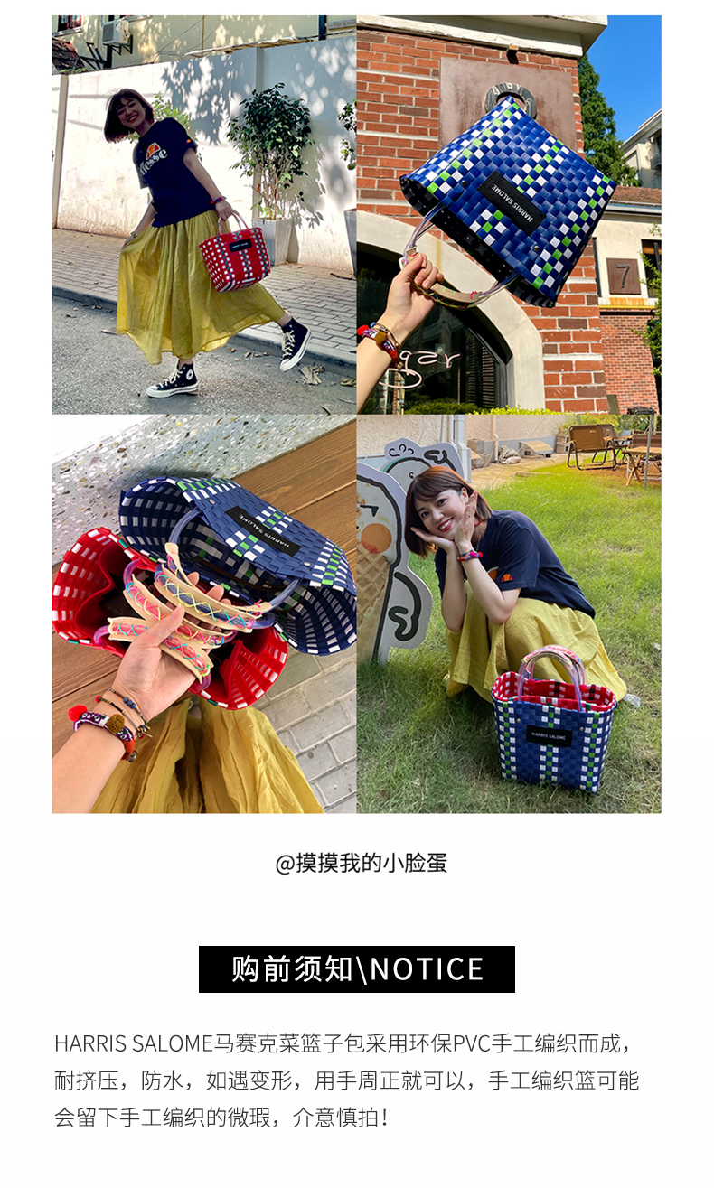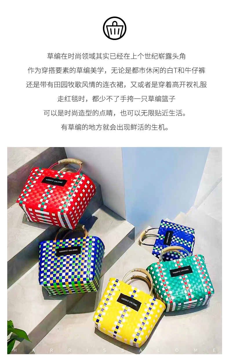Harris Salome手工编织马赛克拼色菜篮子手提包