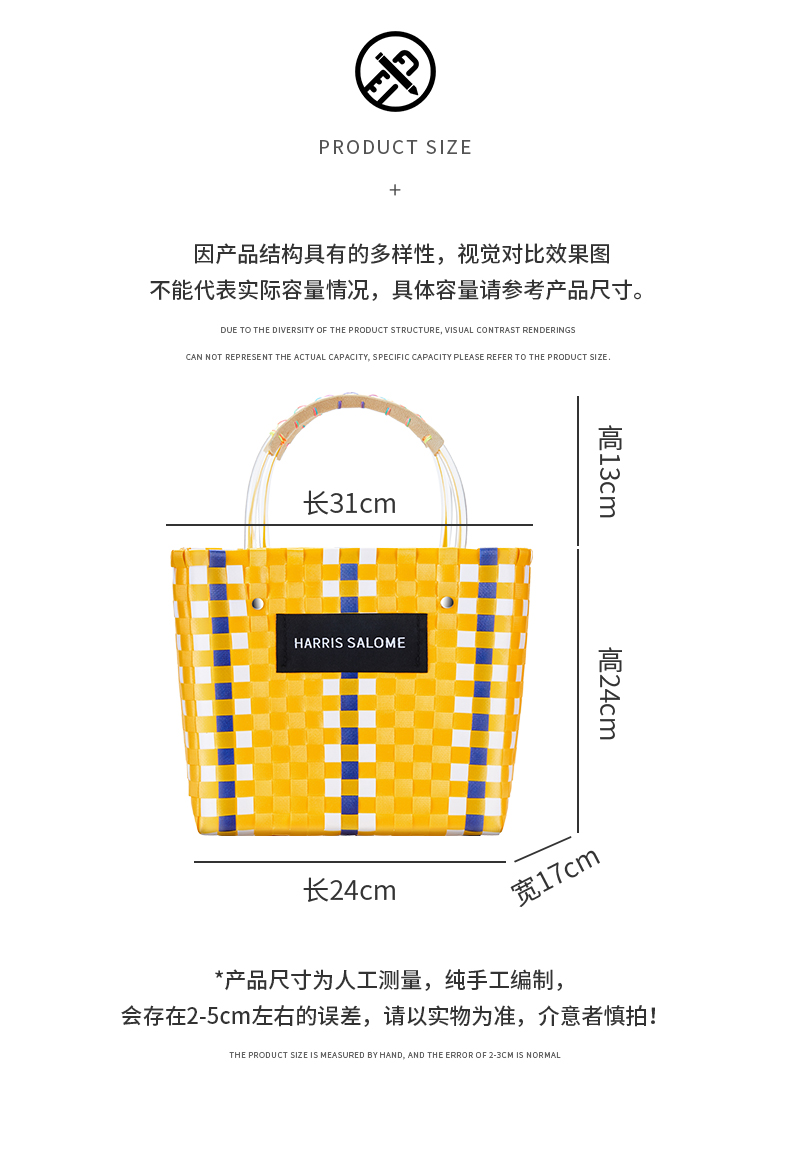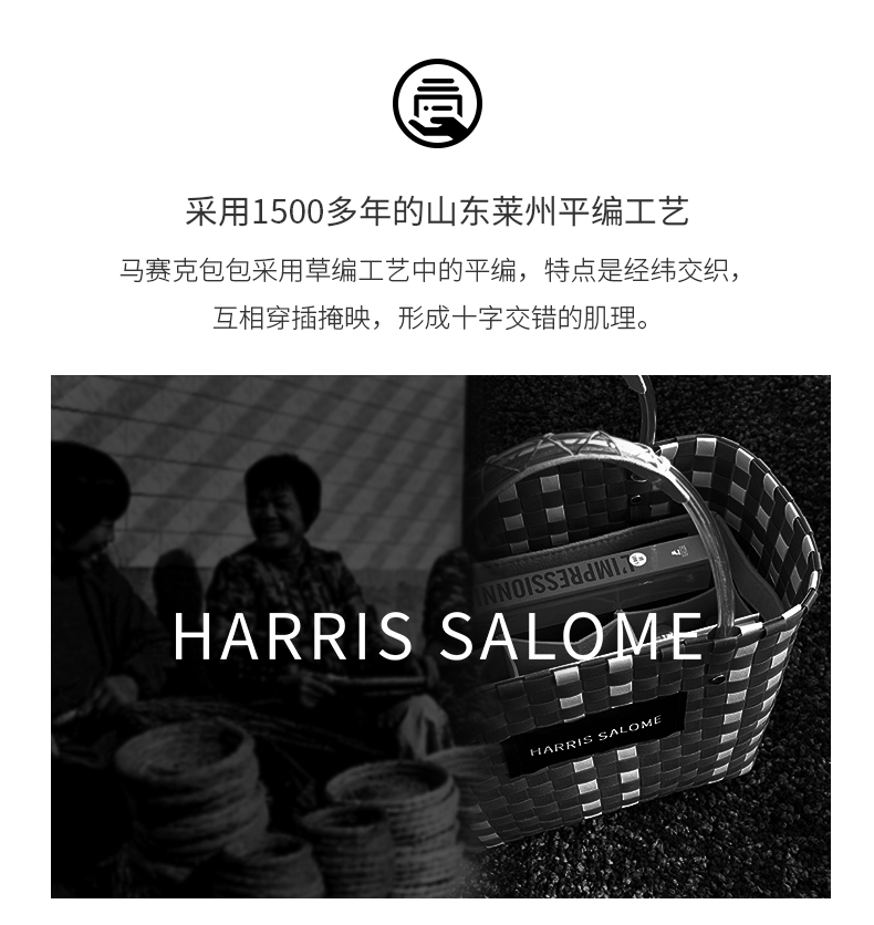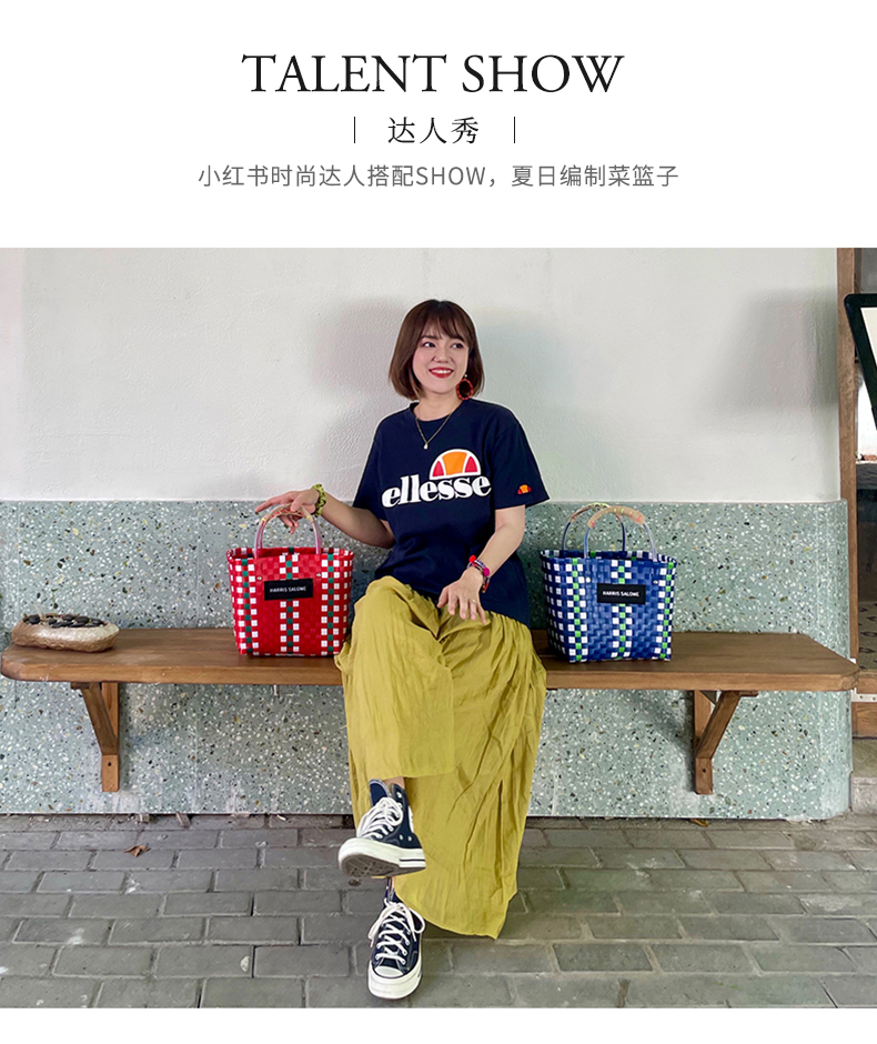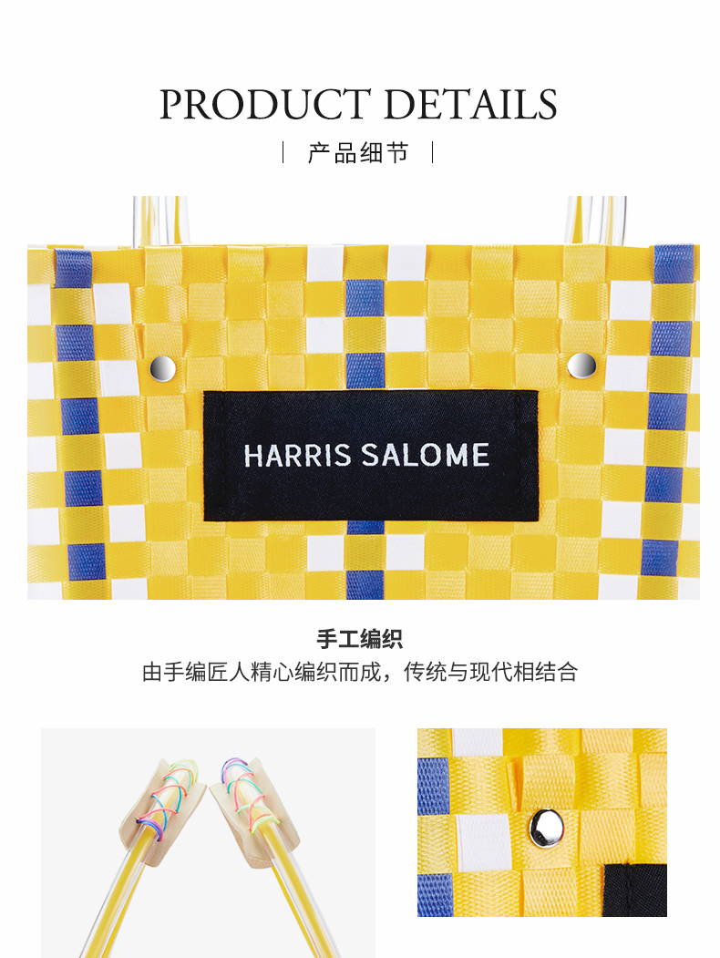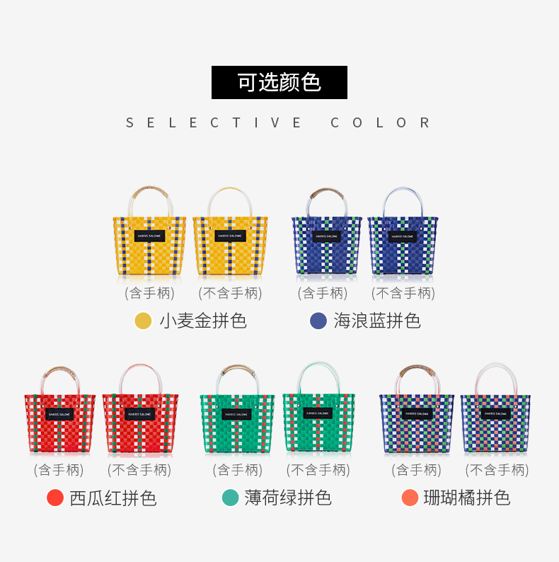 Harris Salome手工编织马赛克拼色菜篮子手提包