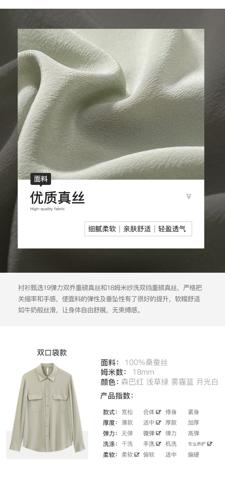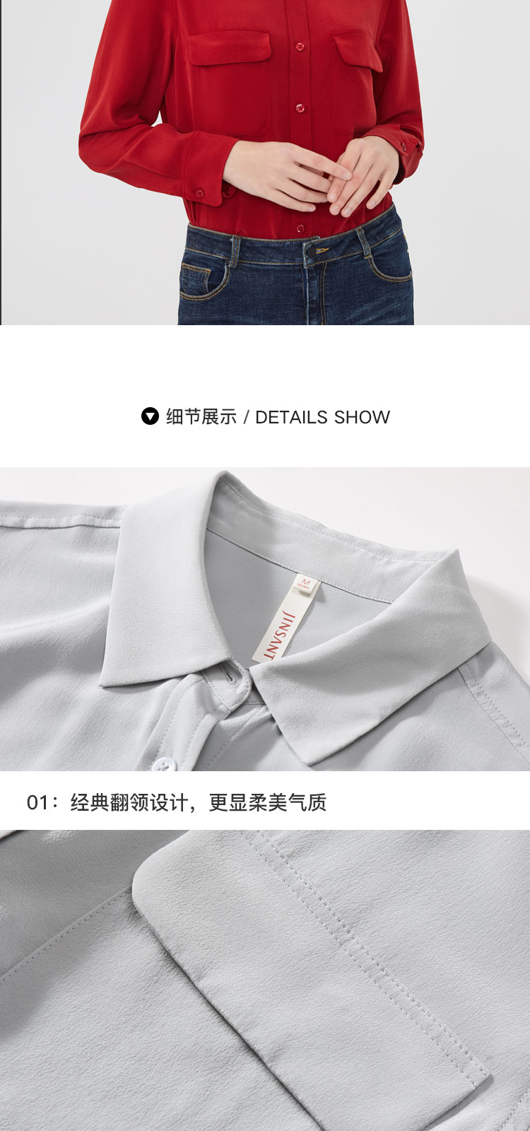 金三塔新品18mm真丝长袖衬衫100%桑蚕丝女士 YSFBA708