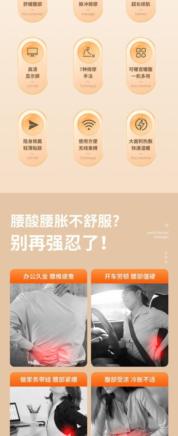 腰部按摩仪腰椎按摩器按摩腰带热敷暖腹多功能充电生日礼物