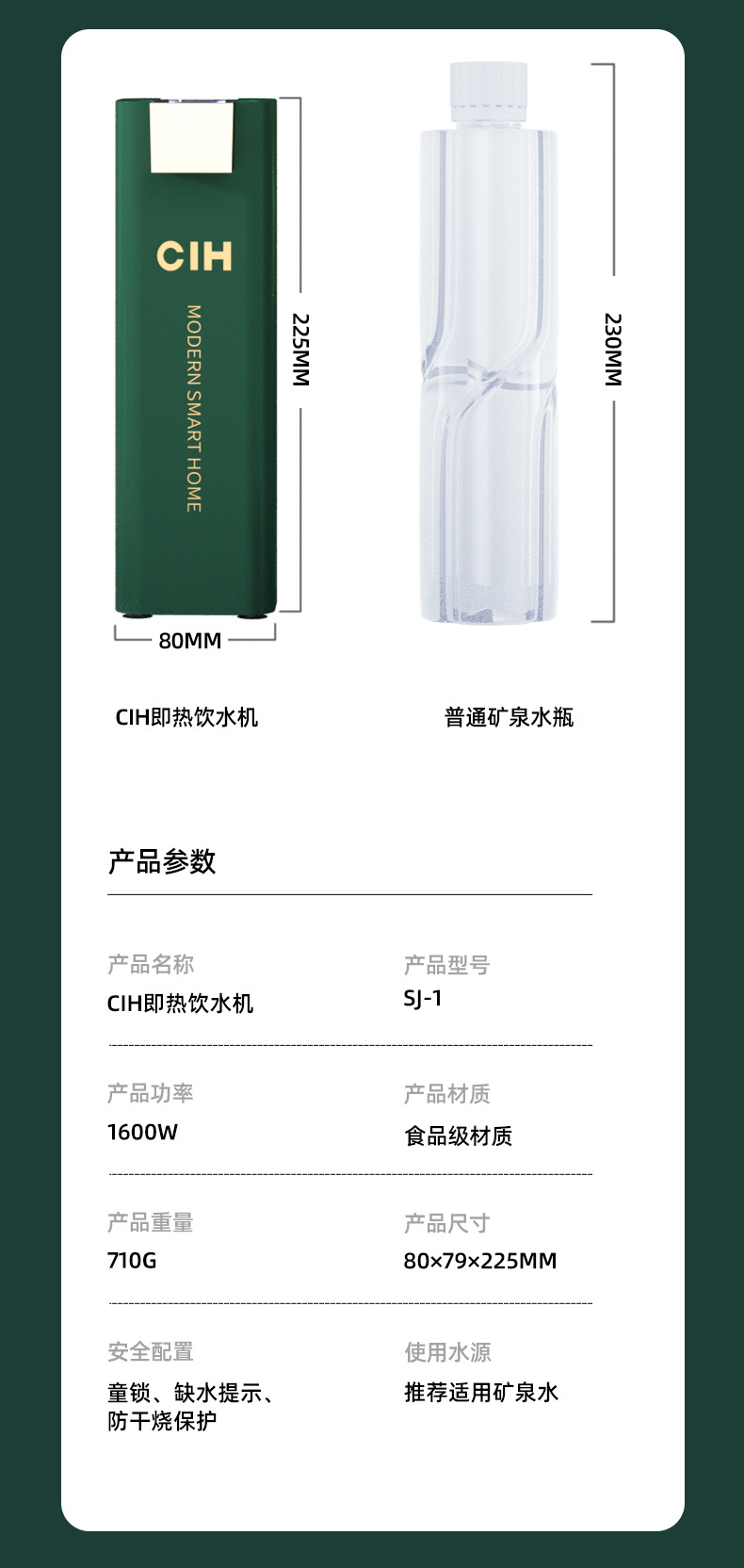 德国CIH SJ-1速热饮水机家用小型台式即热开水机便携式烧水壶旅行