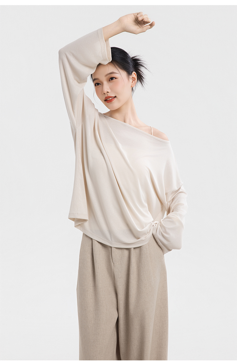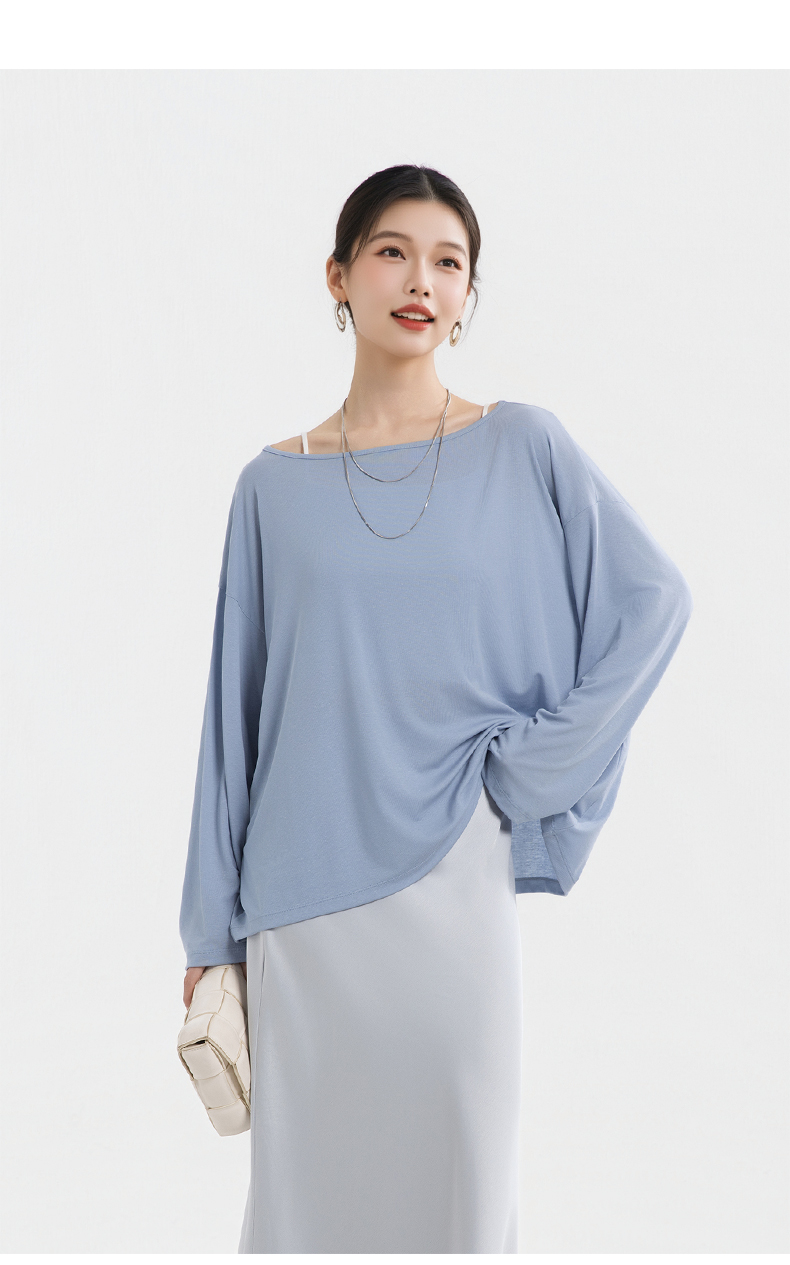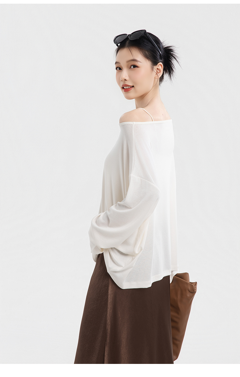 (3-5天发货) 亚麻一字领罩衫-W14C3