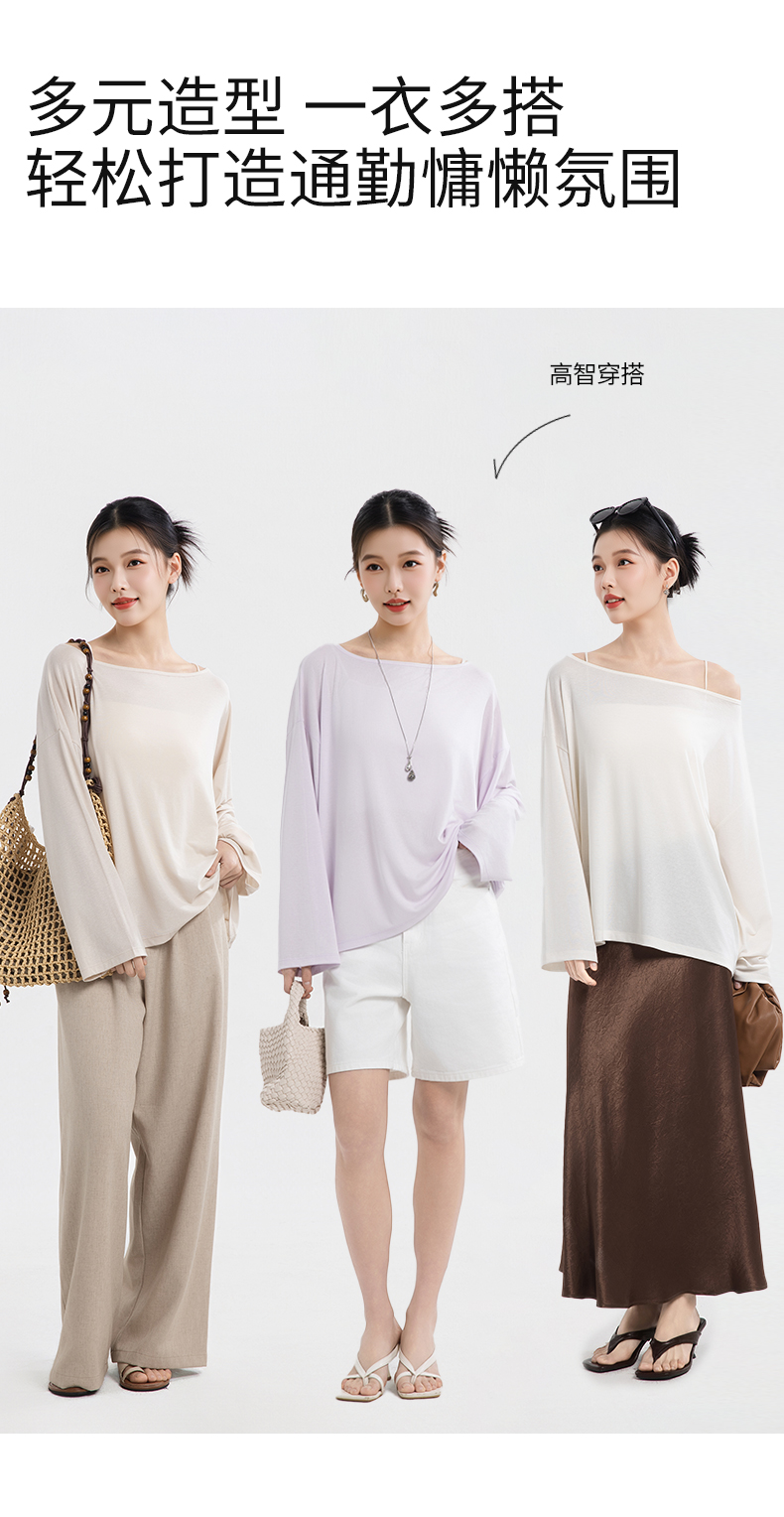 (3-5天发货) 亚麻一字领罩衫-W14C3 商品图1