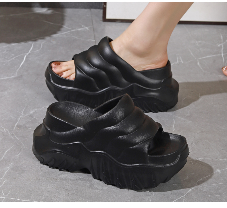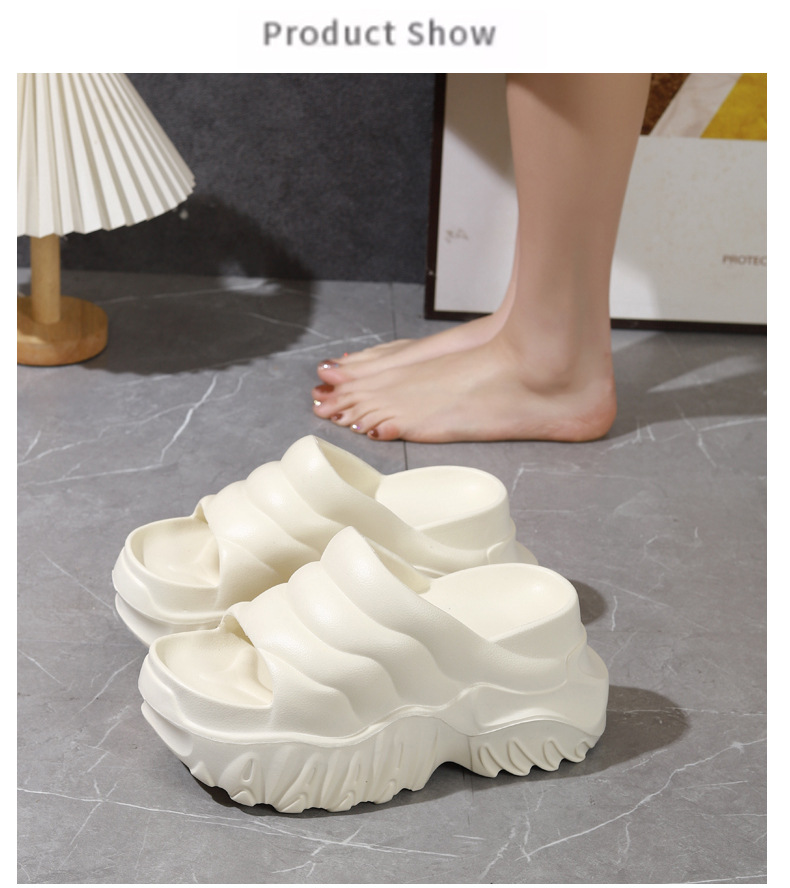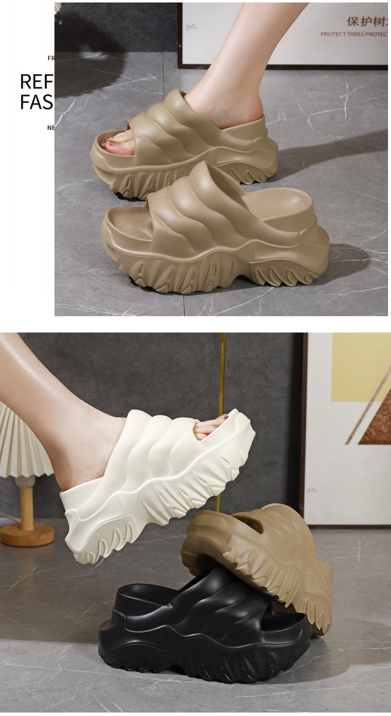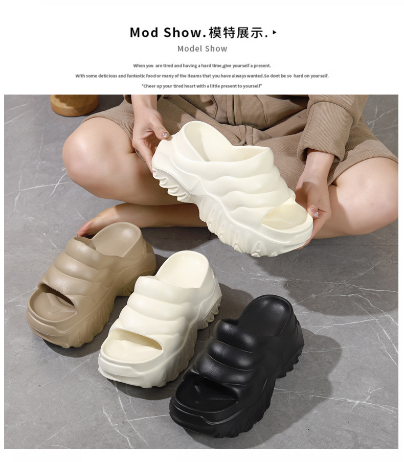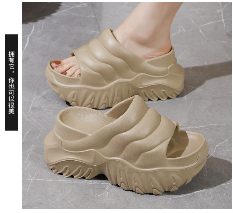 【潮流百搭❗️厚底高跟坡跟拖鞋】9.0CM加厚鞋底,轻软“踩屎感”,底纹升级,阻力科技防滑,外穿松糕底增高显瘦懒人一字拖凉拖QQ