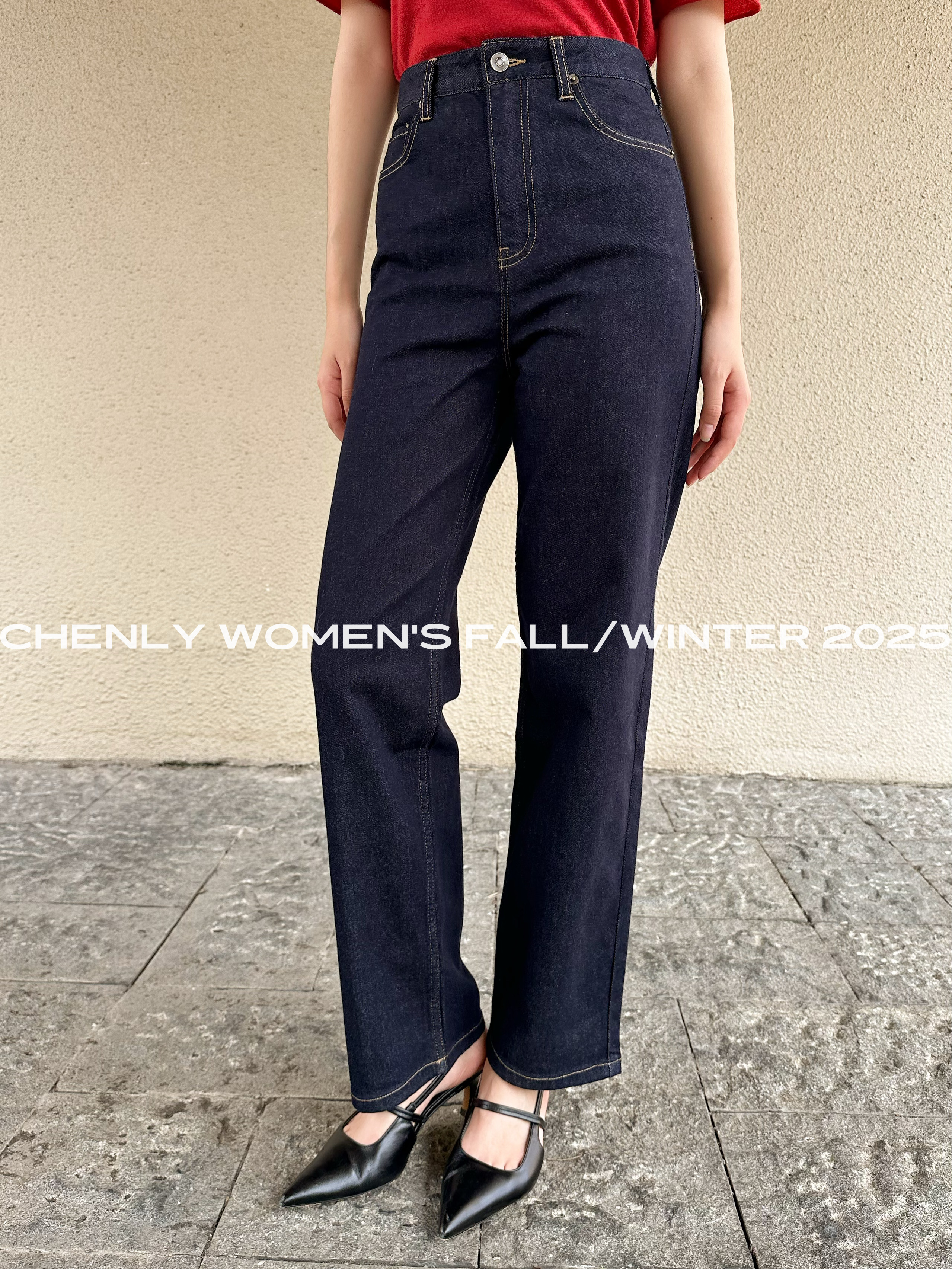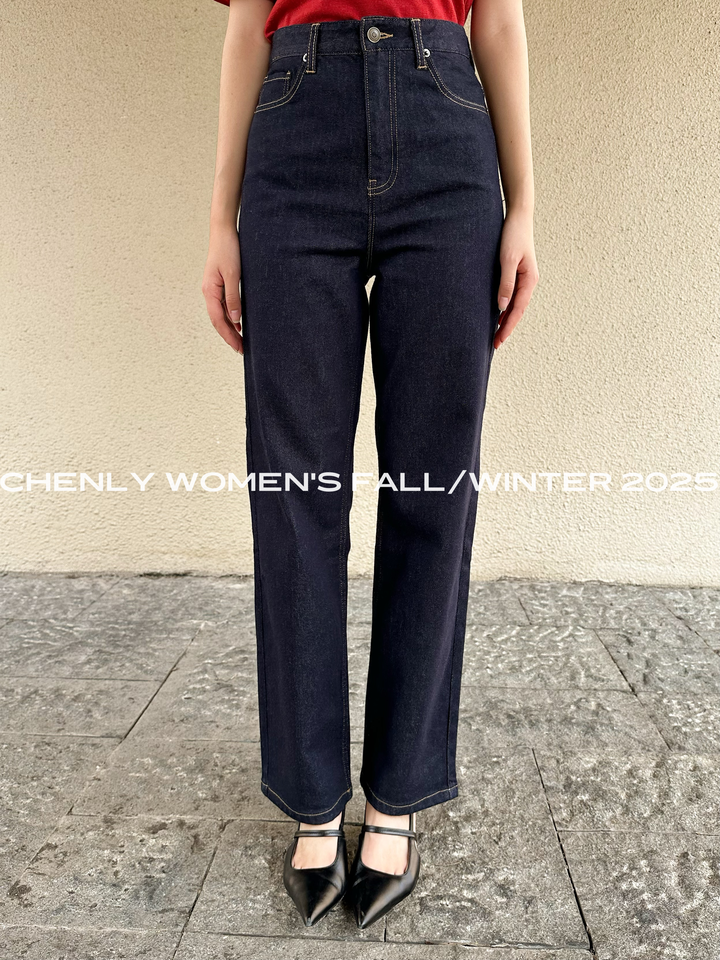 尘衣|25F/W 高腰原牛色直筒牛仔裤