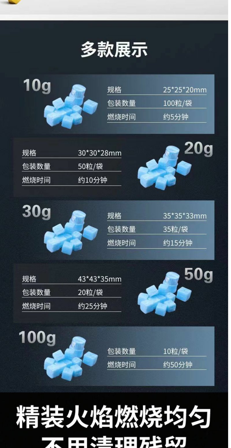 【100粒/袋】固体酒精块火锅炉砂锅酒精炉烧烤户外引燃块固态10克
