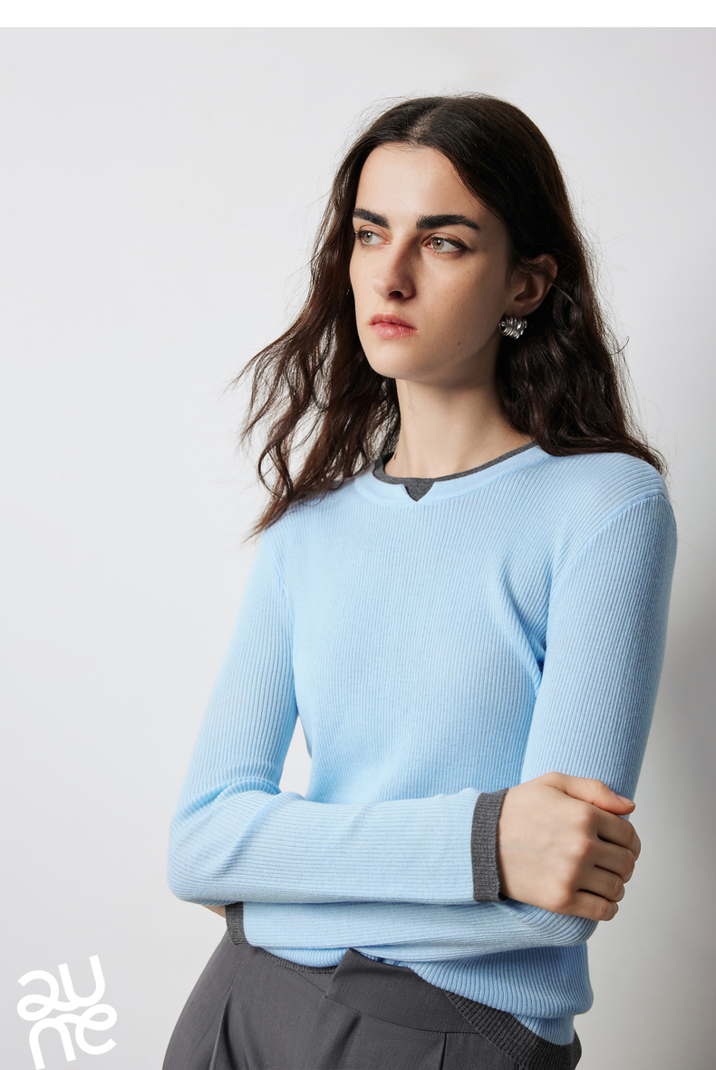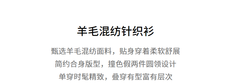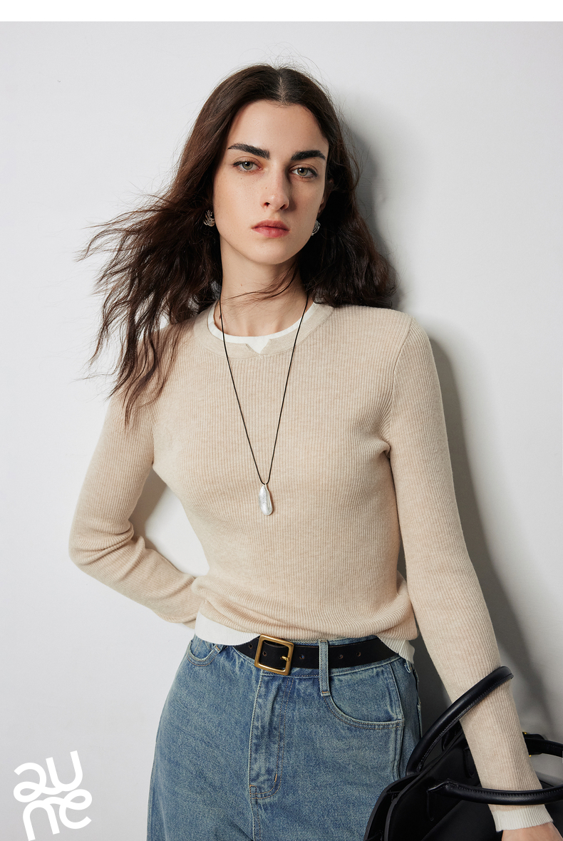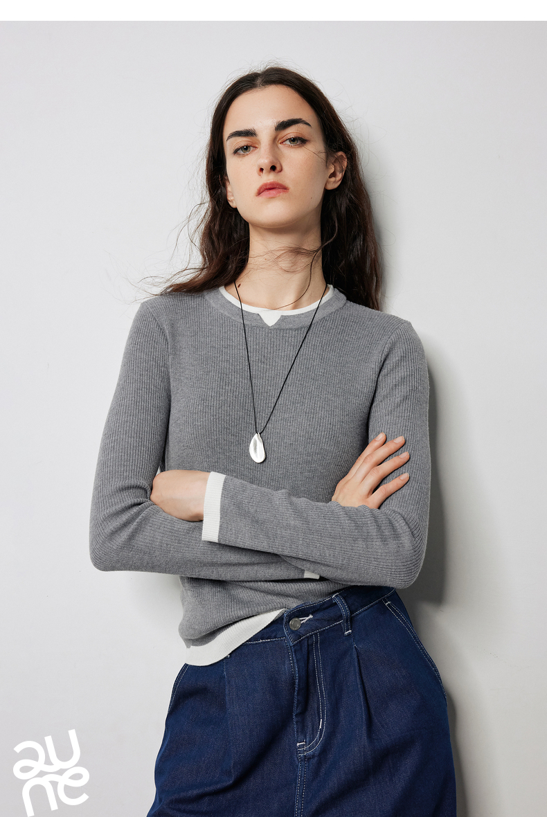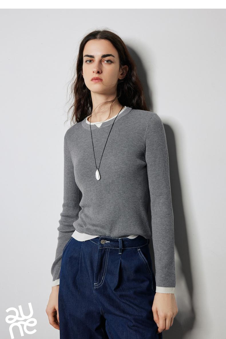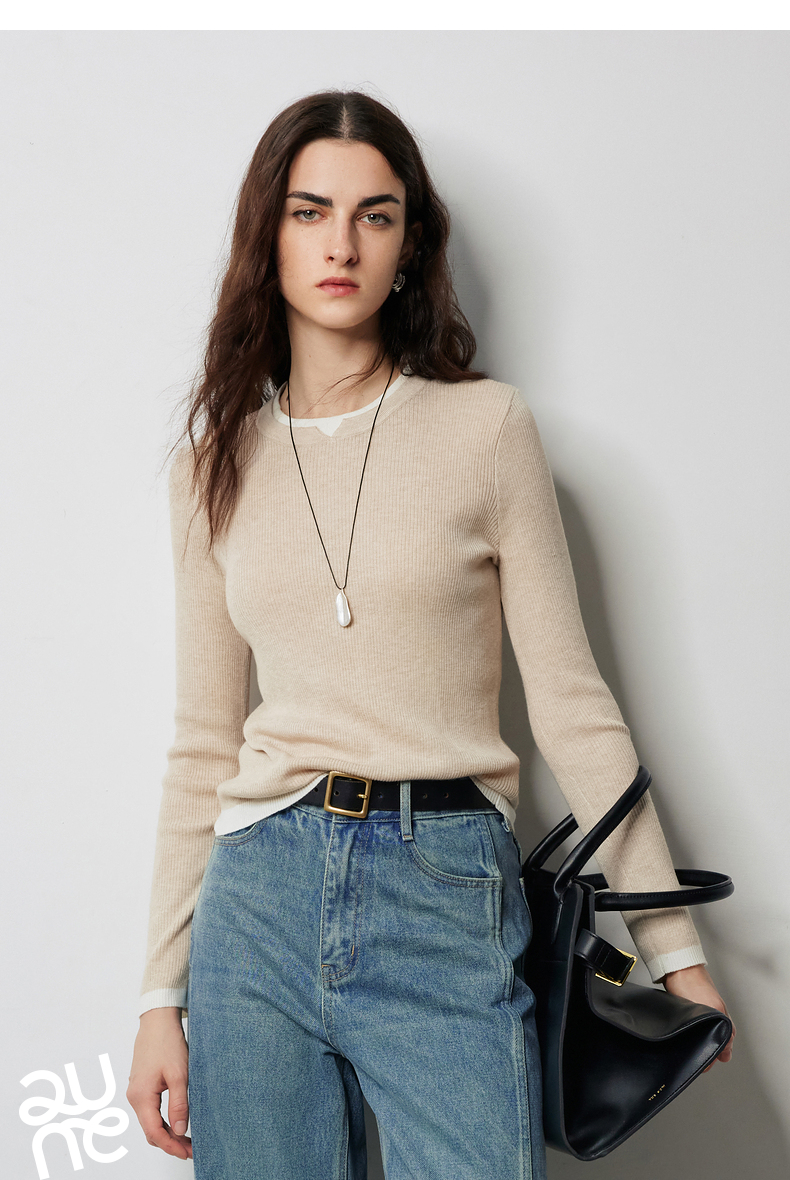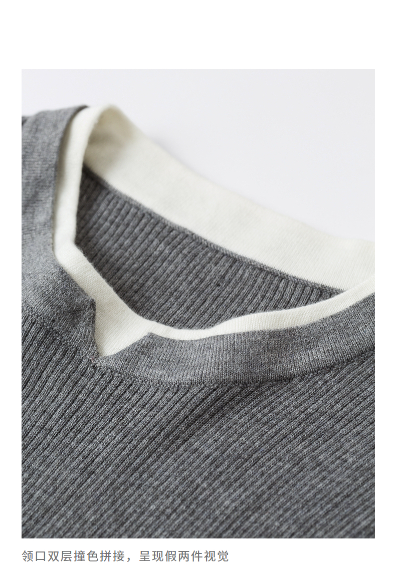 TOYOUTH初语羊毛混纺针织衫女假两件撞色修身打底衫8433013