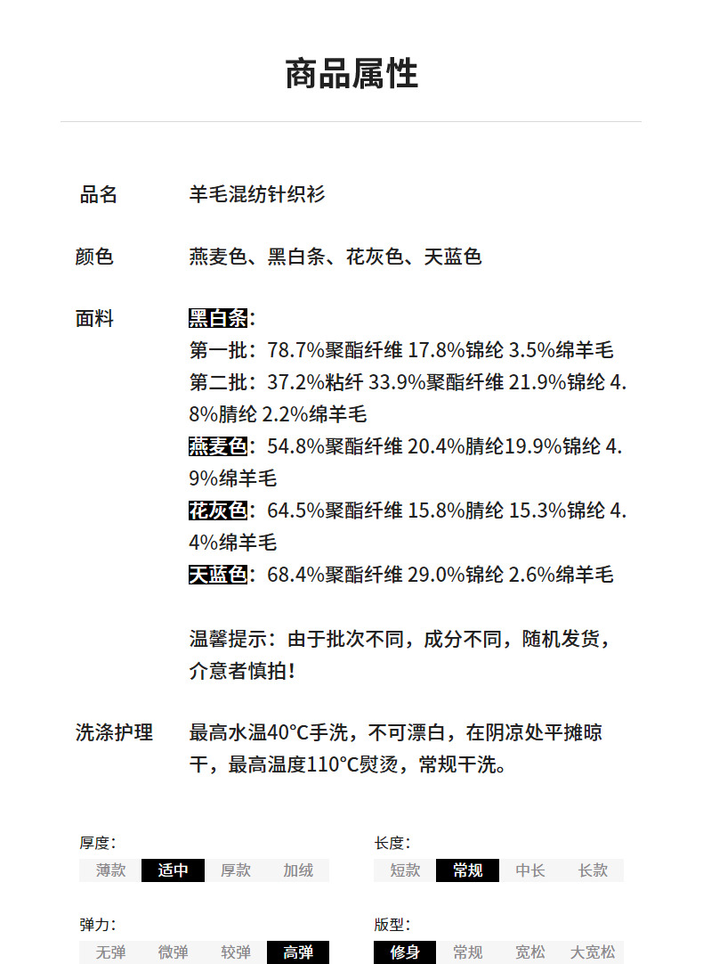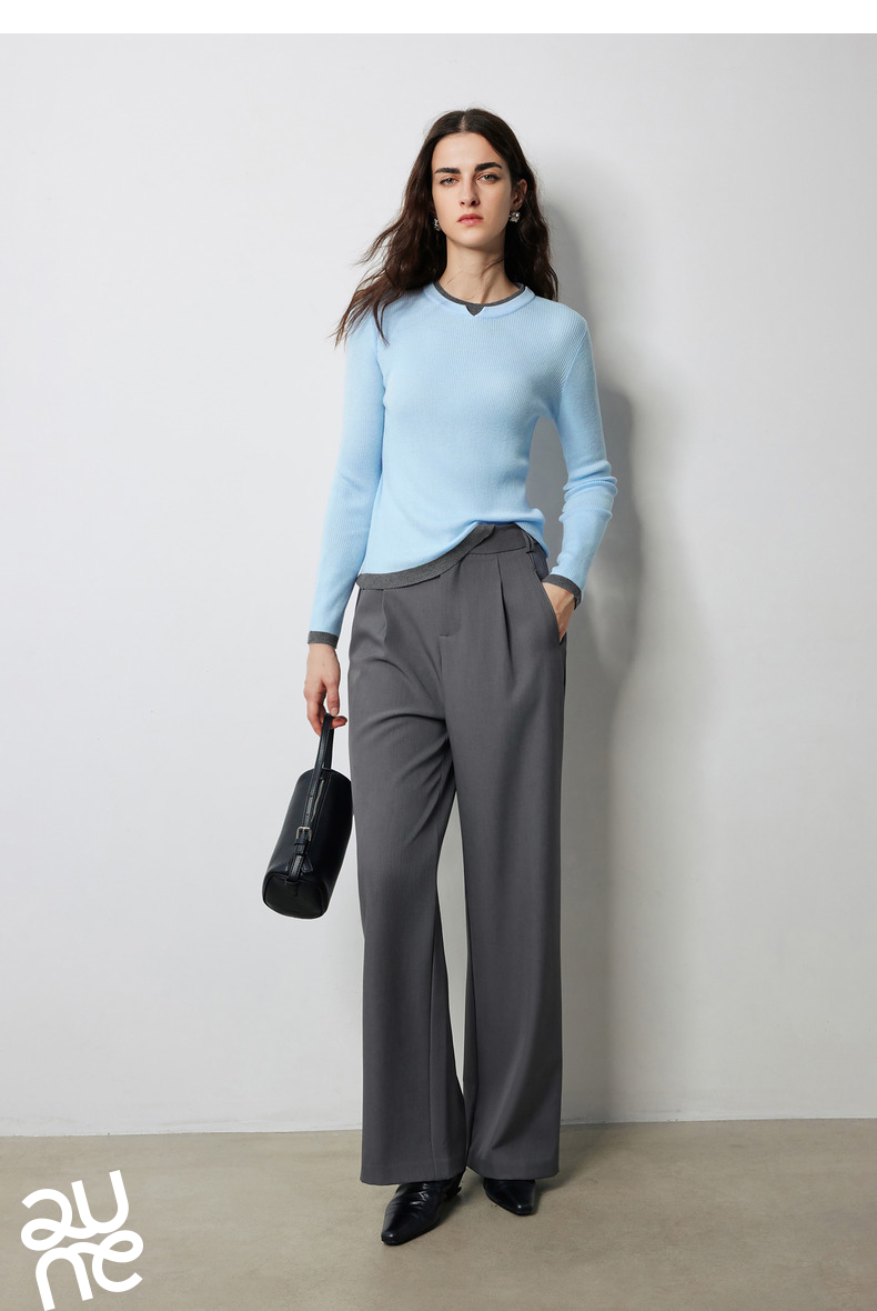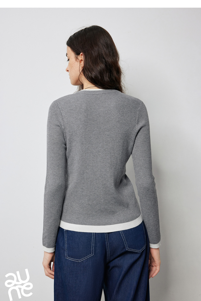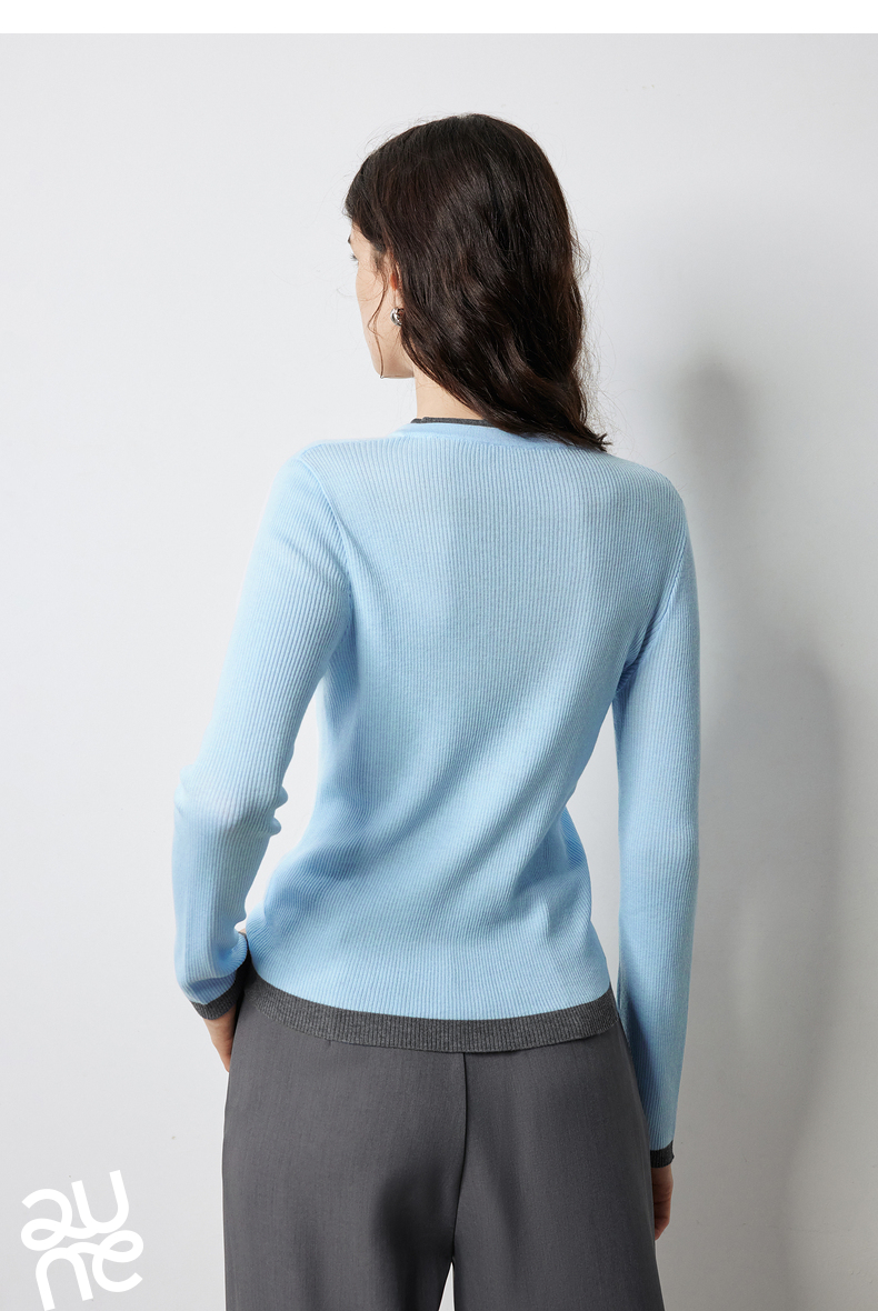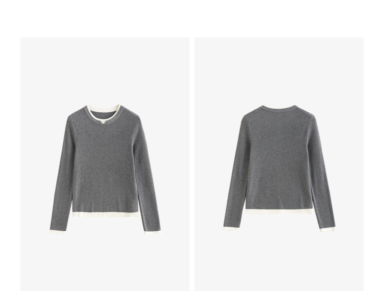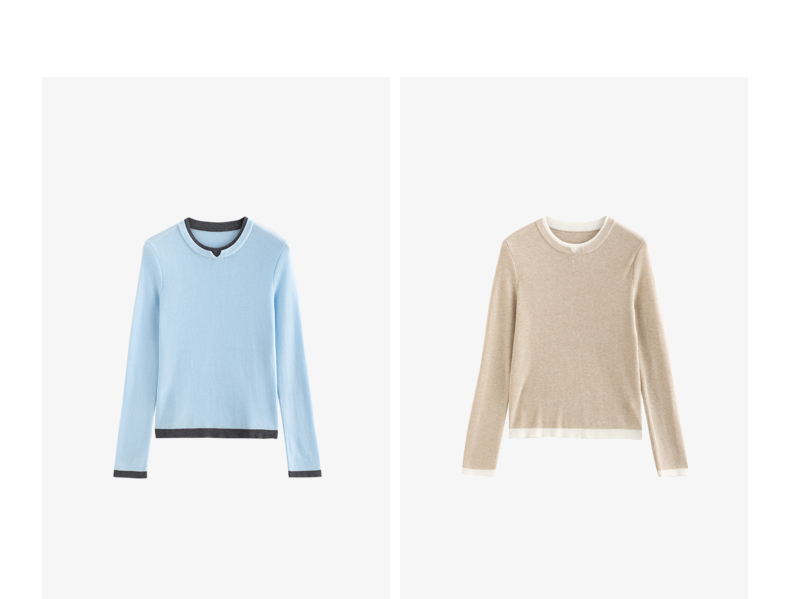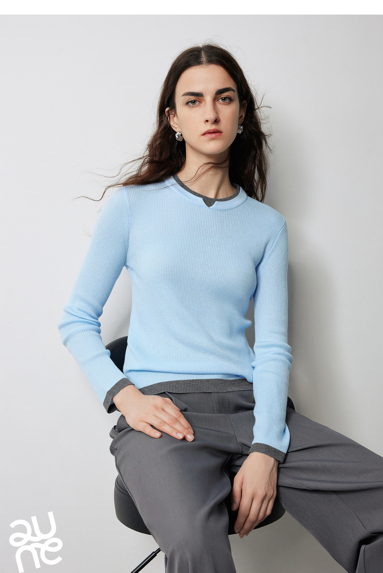 TOYOUTH初语羊毛混纺针织衫女假两件撞色修身打底衫8433013